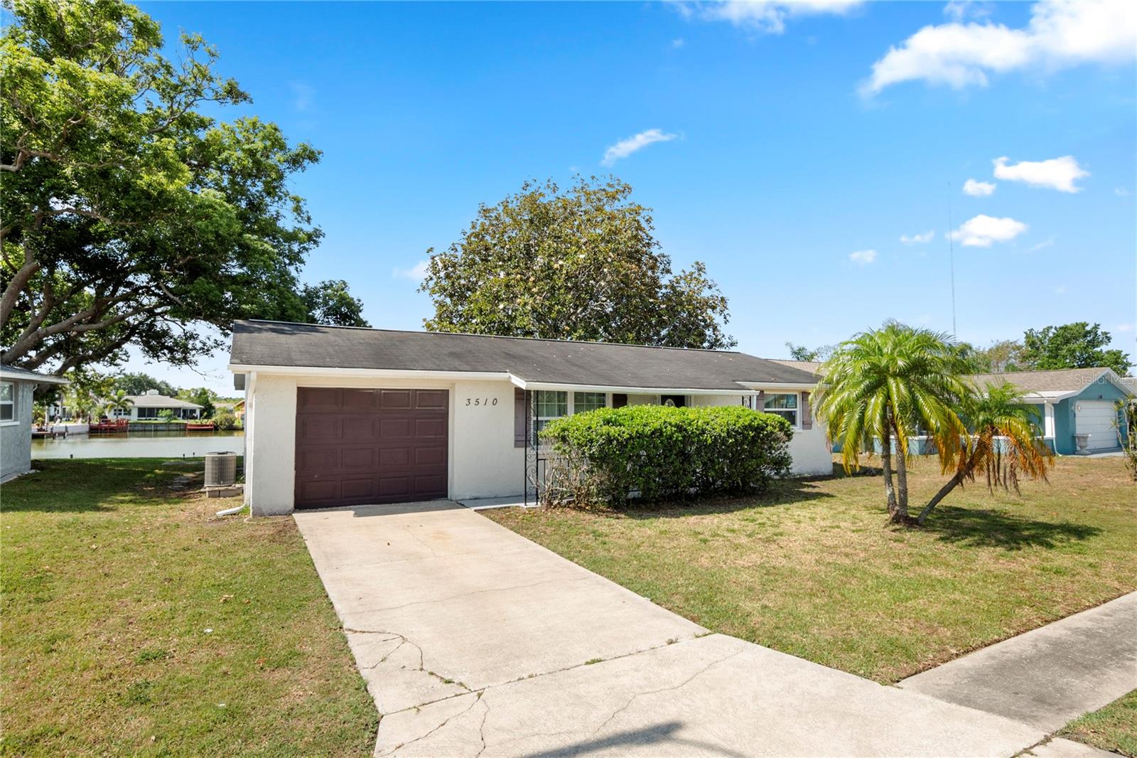 Beautifully SINGLE STORY BLOCK HOME with AMAZING VIEWS AND WATER ACCESS to serene Lake Conley Houses like this don't come on the market very often! Gorgeous lake views out of the Florida room, kitchen and back bedroom. 67 feet of waterfront protected by a concrete seawall. Stunning kitchen with ESPRESSO CABINETS, GRANITE COUNTERTOPS and STAINLESS STEEL APPLIANCES. There is an EAT-IN KITCHEN SPACE with a closet PANTRY. Both the Florida room and the living room are open to the kitchen. The entire house has tons of natural light and plenty of spaces for relaxing and enjoying the Florida lifestyle. The single car garage has built in workbenches. The exterior storage closet near the Florida room is perfect for your fishing supplies. You'll never get tired of looking at the calm water and the multitude of wildlife right outside your windows. This home is close to shopping, beaches and the world famous Tarpon Springs sponge docks. DON'T MISS THIS OPPORTUNITY. Put this on your short list and schedule a showing today!