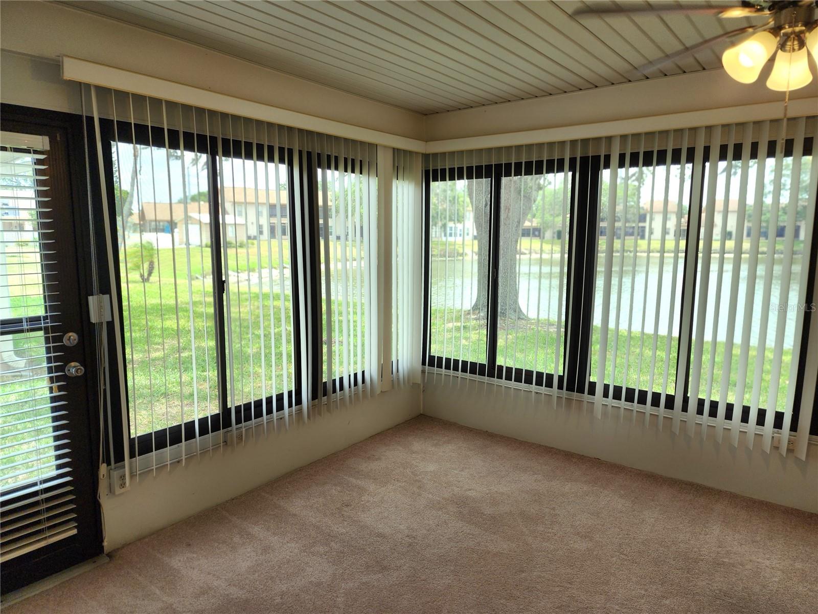 Would like to live like holiday in Holiday? Maintenance free? Here is your opportunity! The lake view villa in 55+ located minutes to beaches and Tarpon Springs downtown will provide you relaxing view on the lagoon fountain and Florida nature fauna from its spacious glass enclosed and airconditioned lanai. The floor plan of total 1,534 SF contains living - dining room combo, updated kitchen, 2 split bedrooms, 2 bathrooms, laundry area, and lanai. Additionally, there is a storage shed outside next to the entrance. To the villa is assigned 1 car carport. The monthly maintenance fee covers the building exterior, roof, water/sewer, trash removal, landscaping maintenance, cable TV, Internet, insurance of structure and common elements as community owned clubhouse (with lot of social activities) and HEATED POOL. Basically, you pay for your electricity, phone, and insurance of the unit inside if you decide to insure. The community rules ALLOW 2 PETS up to 20 lbs., leasing after the purchase for a minimum period of 1 month; don’t allow parking of trucks, boats, and motorcycles. Located in Pasco County (with reasonable property tax), withing an easy drive to world famous beaches and attractions of Tampa and St. Petersburg, and airports. The solid block construction of the building and a brand-new A/C will take lot of worry off. End units on the lake side in this subdivision go on the market rarely, don't miss out on this special holiday buy.