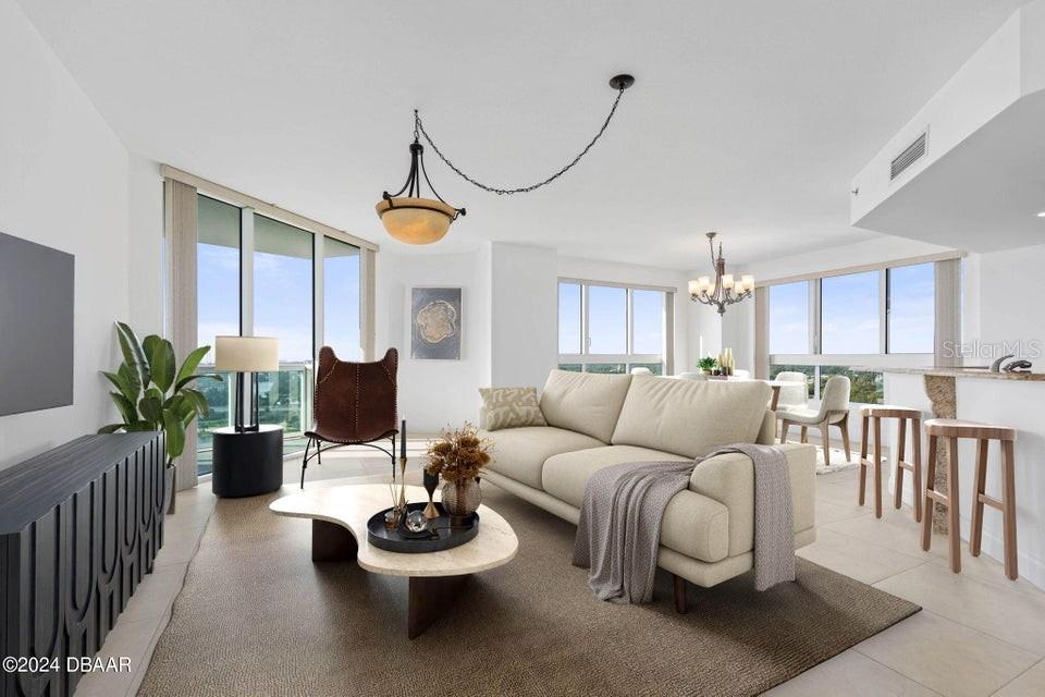 One or more photo(s) has been virtually staged. Discover the epitome of luxurious living in this much sought after Southern Corner Riverfront home/condo that features 3-bedrooms, 3-bathrooms, and multiple balconies access. Enjoy fantastic City Views, Sunsets, and Nasa/SpaceX launches on the balcony or while making dinner in the kitchen, this is what makes this corner a must! The Marina Grande on the Halifax unit offers an ideal blend of comfort and elegance and is situated along the stunning Halifax River and across from the World's Most Famous Beach. Enjoy breathtaking Sunset views from the comfort of your private primary suite balcony while unwinding, or relax in the large jetted tub in your ensuite bathroom. The condo boasts upgrades such as tiled flooring throughout the main areas and primary Guest suite; while natural stone upgrades are featured in the open spaced gourmet kitchen with granite countertops, and upgraded backsplash! The array of top-tier amenities, including 2 riverfront swimming pools, a state-of-the-art fitness center, 2 clubhouses, game rooms, and a private movie theater make this a must have! Effortless living begins here! Call Today!