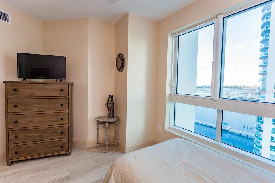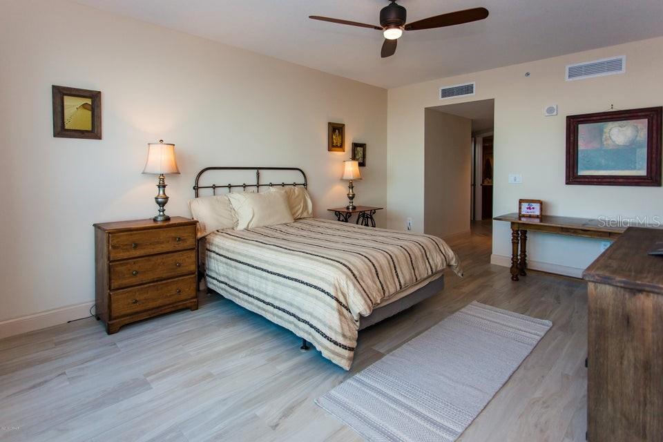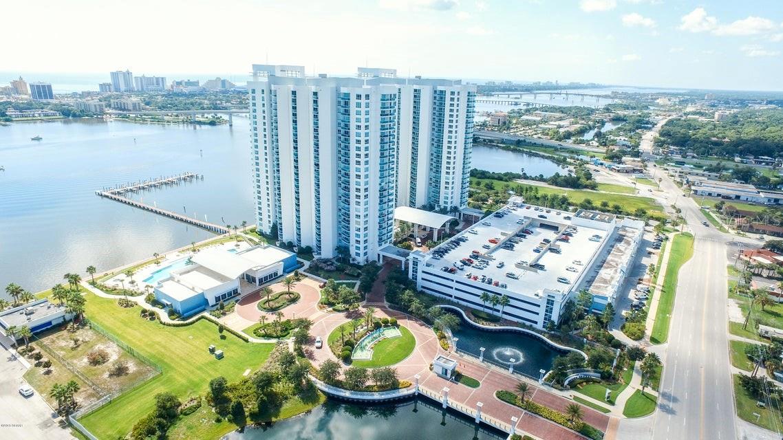 Discover the ultimate urban oasis with city lights and nighttime vibes in this stunning 3-bedroom, 3-bath condo with spectacular waterfront views of the Halifax River. This upgraded unit features updated soapstone countertops, stainless steel appliances, elegant cabinetry, and tile flooring. Enjoy the expansive balcony with dual access points, perfect for soaking in breathtaking sunrises and views of the Halifax River, Atlantic Ocean, and the city. Inside, find a spacious primary bedroom with an oversized window and a generous sized primary bathroom retreat with a jetted soaking tub and separate shower. Situated in a resort-style, 24-hour guard-gated community with luxury amenities, including a private movie theater, banquet room, fitness center, yoga/Pilates/dance studio, billiards and game room, library, 7-day concierge service. This is waterfront living at its finest! Call today to start living your luxury dream!