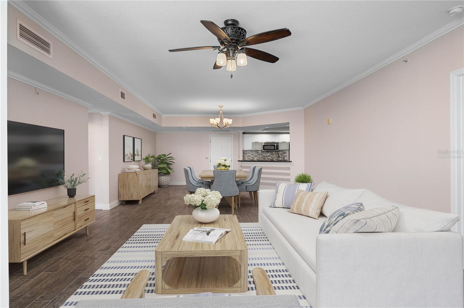 Under contract-accepting backup offers. Enjoy the ultimate in maintenance-free, resort-style living at Marina Grande on the Halifax! This high-end community offers breathtaking water views and top-tier amenities that make every day feel like a vacation. Lounge by two sparkling pools overlooking the river, catch a movie in the private theater, or stay active in the state-of-the-art fitness center—complete with a yoga/dance studio and steam rooms. This stunning two-bedroom, two-bathroom condo boasts 1,851 square feet of thoughtfully designed total space (1,689 living) with a split floor plan for added privacy. Wake up to incredible water views from both bedrooms, including a luxurious owner's suite with a spa-like bathroom featuring a jetted garden tub, separate shower, and two spacious closets. The open-concept living area is perfect for entertaining, featuring high-end cabinetry, granite countertops, and updated tile flooring throughout for a sleek, modern touch. Additional perks include in-unit laundry for convenience, a guarded gate with concierge service, and an unbeatable waterfront lifestyle. This is Daytona Beach luxury at its finest!