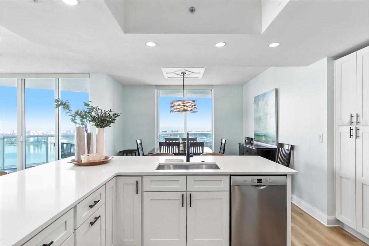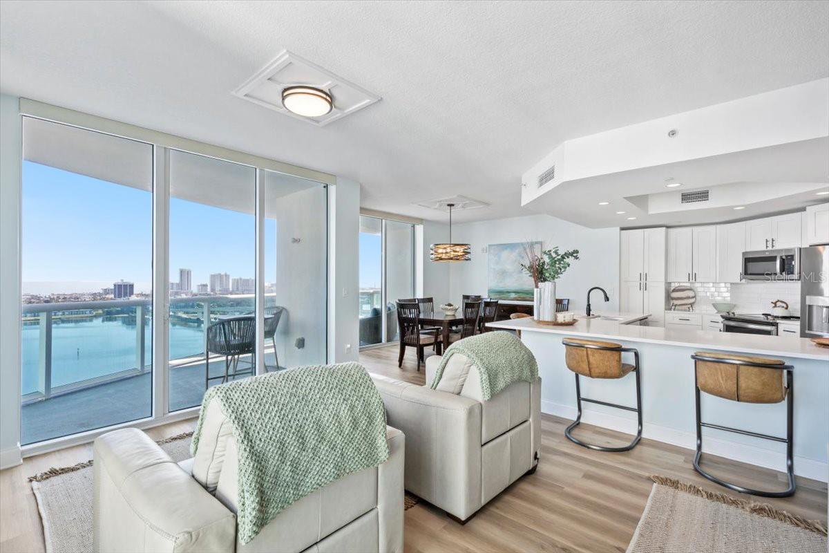 MARINA GRANDE RESIDENCES REDEFINE SOPHISTICATION IN THE HEART OF DAYTONA BEACH. THIS STUNNING UPGRADED 3 BR 3 BA SHOWCASES BESPOKE INTERIORS AND SWEEPING VIEWS OF THE INTRACOASTAL WATERWAY & ATLANTIC OCEAN. DESIGNED FOR MODERN LIVING THE OPEN LAYOUT IS IDEAL FOR ENTERTAINING, THE STYLISH KITCHEN FEATURING CLASSIC WHITE SHAKER DOOR CABINETRY, KNOWN FOR ITS SIMPLICITY AND FUNCTIONALITY, PAIRED WITH WHITE SUBWAY TILE BACKSPLASH AND QUARTZ COUNTERS THAT OFFER A REFRESHING, CLEAN AESTHETIC. DELIVERED FULLY FURNISHED & MOVE-IN READY THE 20TH FLOOR VIEWS TAKE FULL ADVANTAGE OF THE PANORAMIC SKYLINE VIEWS. THE WIDE PLANK LUXURY FLOORING SETS THE TONE FOR THIS COMFORTABLE, CHIC, COASTAL AURA. DESIGNER MOTORIZED SHADES THAT ARE CONCEALED TO LOOK INVISIBLE, CAN ADJUST WITH REMOTE CONTROLS UPGRADE THE CONVENIENCE FACTOR. MAKING A CONDO INTO A HOME CAN TAKE TIME AND RESOURCES. ALL THE WORK IS DONE HERE! THE PRIMARY SUITE IS ULTIMATELY PRIVATE WITH A SPA STYLE BATH FOR 2. THE GUEST WING OFFERS 2 BEDROOMS, EACH WITH THEIR OWN BATH. TREAT YOURSELF TO A LIFE OF LUXURY WRAPPED IN WATER VIEWS IN A GATED 18 ACRE COMMUNITY WITH AWARD WINNING, INDULGENT AMENITIES.