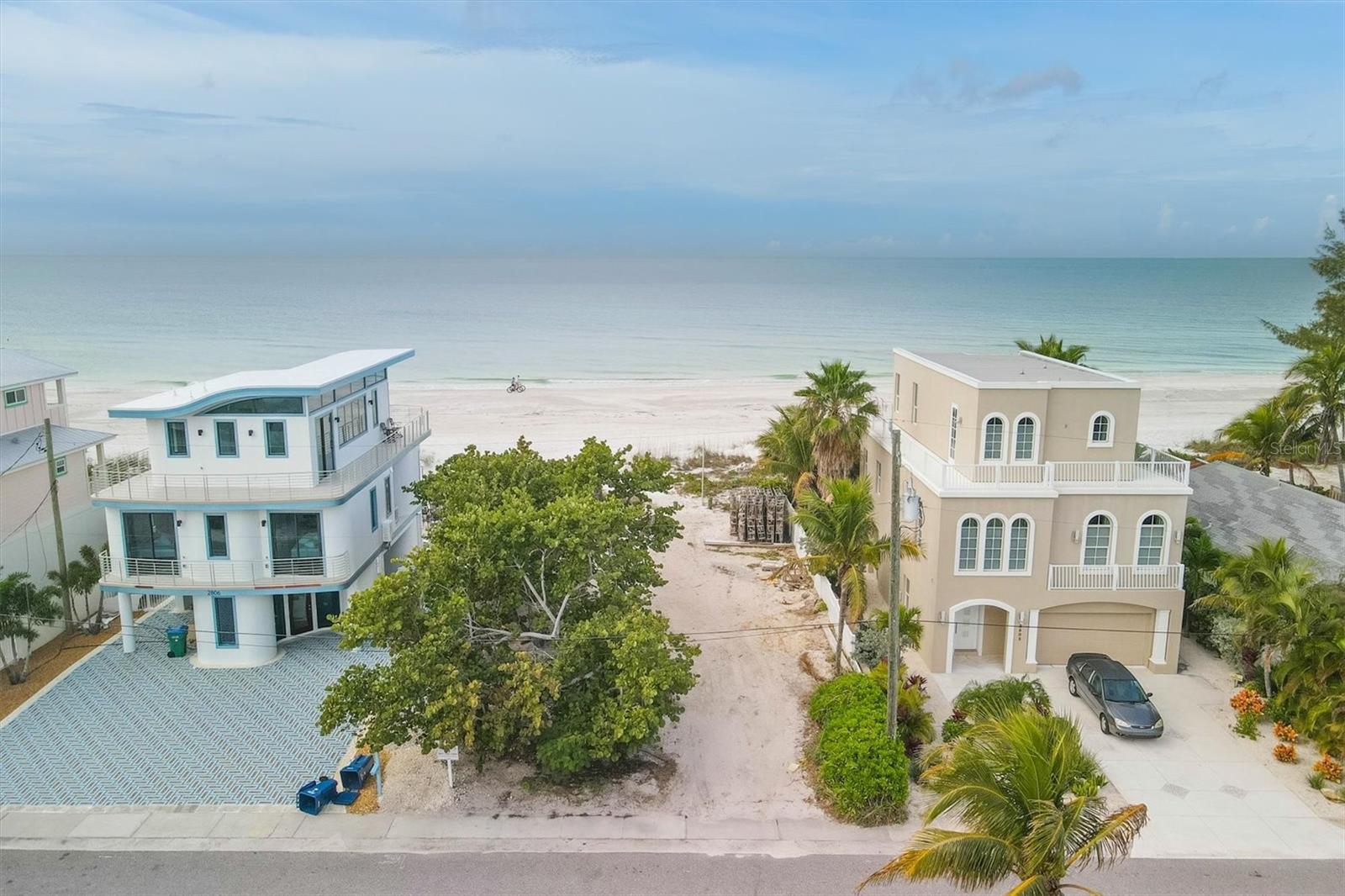 Seize the opportunity to claim your slice of island paradise with this Gulf-front lot perfectly cleared and primed for your dream beach house. Nestled amid the pristine white sandy beaches of Holmes Beach, this property comes with 50 feet of direct beachfront. Imagine waking up to the serenity of unparalleled Gulf vistas from your future beach home, where every day concludes with stunning sunsets over the horizon. Strategically located at the heart of the island, offering swift access to the quintessential island lifestyle, including Anna Maria Island, Coquina Beach and Bradenton Beach. Do not miss the chance to live the island life and treasure the best of Gulf-front living. The new home to the south was built on a similar-sized lot, so it is a good reference point for new construction.