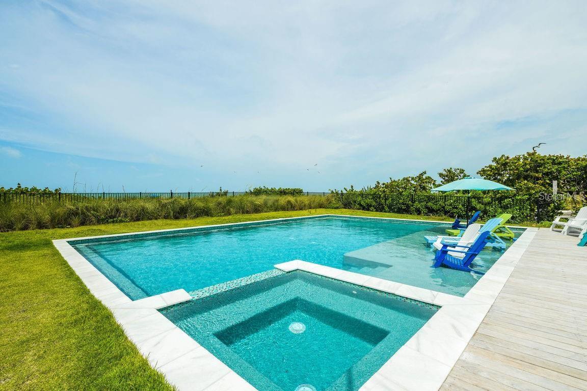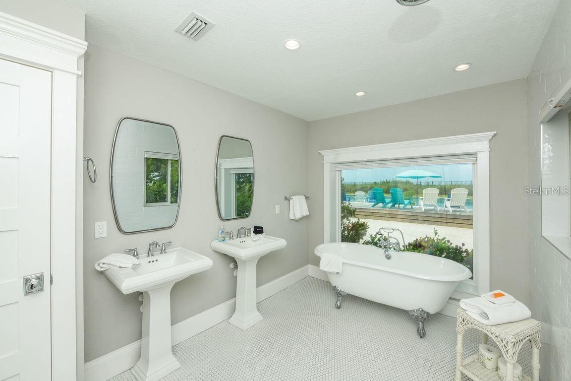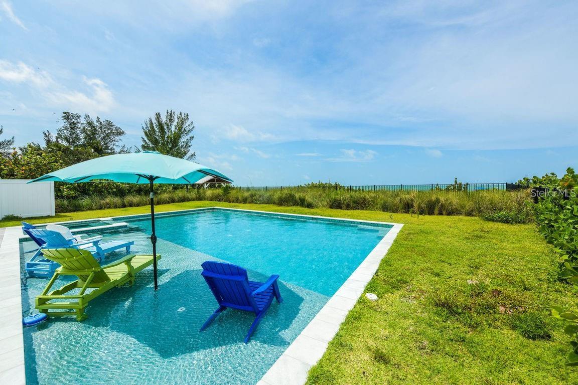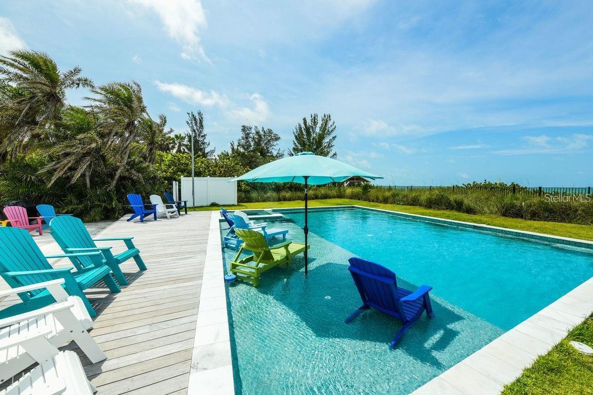 Welcome to 102 77th aka "Beachfront Bungalow!" This 4 charming bedroom, 3.5 bathroom coastal cottage sits on one of the most pristine stretches of white sand beaches that Anna Maria Island has to offer. The only thing standing between you and the white sands of the Gulf of Mexico is one of the largest private pools on Anna Maria Island. You'll enjoy the sun shelf and spa while relaxing pool side and take in the panoramic views. The home has a Burt Harris that transfers so there is room to sleep up to 14 guests and allows for a 7 bedroom house. The main living area boasts gorgeous wood beams, a stone fireplace, and has been professionally designed with coastal decor throughout. The fully equipped kitchen has quartz countertops and stainless-steel appliances. The master bedroom has a king-size bed and a private bathroom ensuite with dual sinks, shower, and clawfoot tub that overlooks the Gulf. The outdoor living space is surrounded by mature tropical landscaping and you'll enjoy unwinding to the sound of crashing waves on the beachfront patio and awe-inspiring views of gulf frontage. Located in the heart of Anna Maria Island, there are numerous shopping and dining options. This self-contained resort is ideal for families and small groups looking to get away from it all! Schedule your private viewing today!