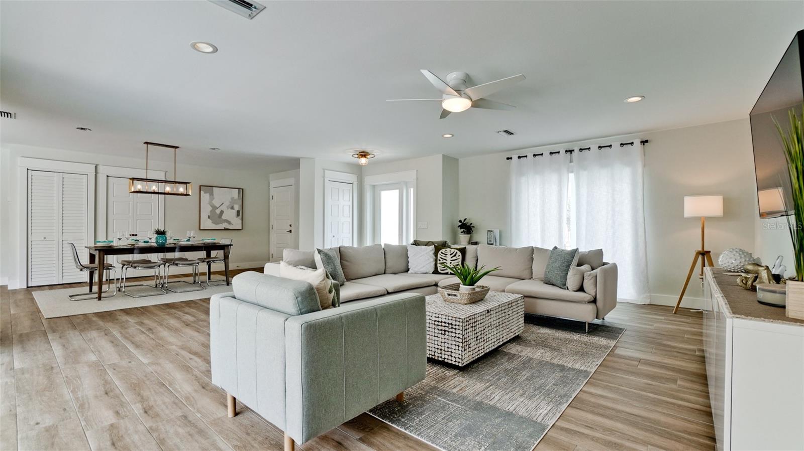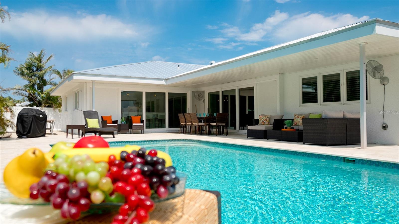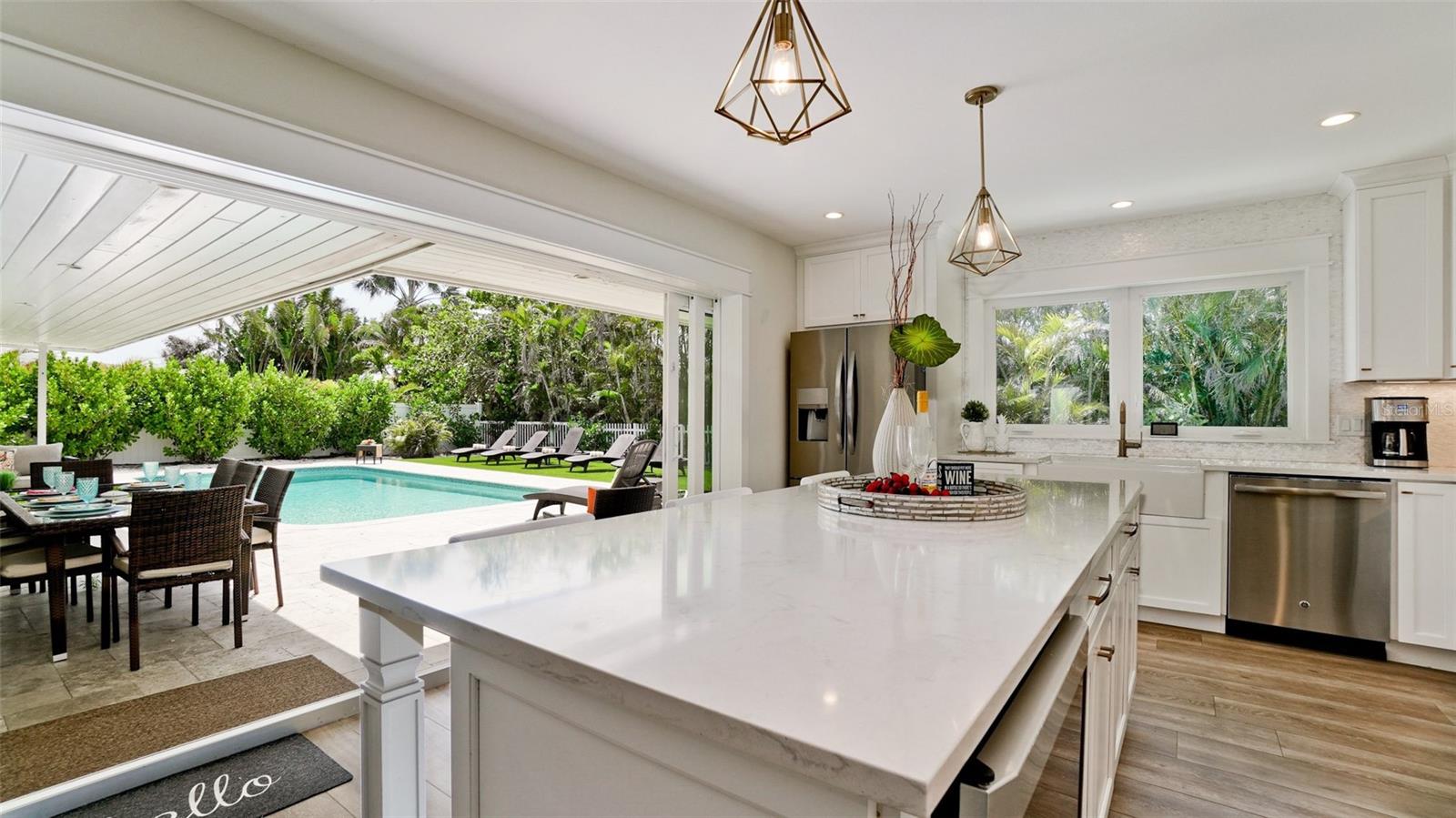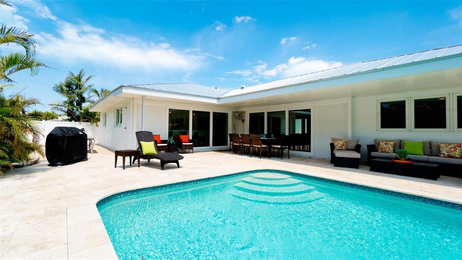 This home has been totally remodeled. It features 3 bedrooms and 2 bathrooms and is situated in the secluded private neighborhood of Key Royale. Completely gutted and redone in 2018 including new AC, plumbing, electrical, pool, impact windows/slider doors and metal roof. You will love the convenience of just one floor, the open floor plan and fresh coastal modern feel. The all white kitchen features stainless steel appliances and a huge island. Easy for chefs and easy to entertain guests. The master bedroom ensuite has a walk in shower, double sink and a large walk in closet. On the other side of the house are the other two bedrooms that share a bathroom with double sink and a tub shower. Two large sliders allow an ample amount of natural light to shine through and offer gorgeous views of your tropical landscaped backyard oasis. The large pool is surrounded by travertine pavers, easy maintenance turf and shells. Large two car garage with washer/dryer and an extra fridge. More parking space is available on the driveway. The private golfclub Key Royale Club is just a few steps away. Don't miss this gem! Sold AS/IS with right to inspect, fully furnished and equipped.