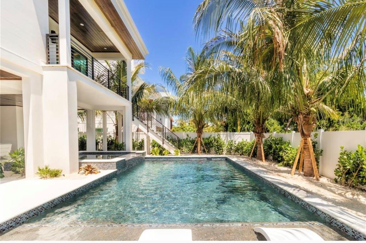 Pre-Construction. To be built. Introducing an exquisite opportunity to own a STUNNING BRAND NEW CONSTRUCTION BEACH HOUSE, ideally situated mere steps from the captivating Gulf of Mexico and sold completely furnished! This remarkable property embodies the pinnacle of luxury and sophistication, offering a turnkey experience with an array of unique designer finishes. Upon entering this coastal oasis, you'll be greeted by meticulous attention to detail, showcased in custom cabinetry, a top-tier appliance package, and the added security of hurricane-impact doors and windows. This beach house boasts a thoughtfully designed floor plan, encompassing over 3,150 square feet of living space, meticulously crafted to enhance your lifestyle. Featuring 4 BEDROOMS PLUS A DEN, 4.5 BATHROOMS, and a 2.5-car garage complete with a convenient ELEVATOR, this residence has been designed with comfort and functionality in mind. The main level invites you into a spacious living room seamlessly connected to the custom kitchen and dining area, creating the perfect backdrop for entertaining. Two elegantly appointed bedrooms on this level offer ensuite bathrooms, with an additional powder room thoughtfully provided for guests. Ascend to the upper level and discover a spacious master retreat, offering a tranquil sanctuary. The fourth bedroom, also with an ensuite bath, provides privacy and comfort, while a generously sized den serves as a versatile multi-use space to suit your needs. This beach house is designed to celebrate outdoor living, featuring two expansive covered patios and a rooftop deck that will leave you awestruck. From this vantage point, you'll enjoy breathtaking views in every direction, including the Gulf of Mexico, providing an idyllic setting to savor spectacular sunsets. The backyard is a tropical haven, featuring a saltwater pool and spa surrounded by lush landscaping that ensures the utmost privacy. Whether you envision it as your ideal vacation home or a savvy investment property, this residence embodies the epitome of coastal living. With the convenience of being mere steps from the pristine beaches and close proximity to exceptional dining and shopping, this is truly an unparalleled opportunity. Don't miss your chance to experience the epitome of coastal luxury living - it doesn't get any better than this!