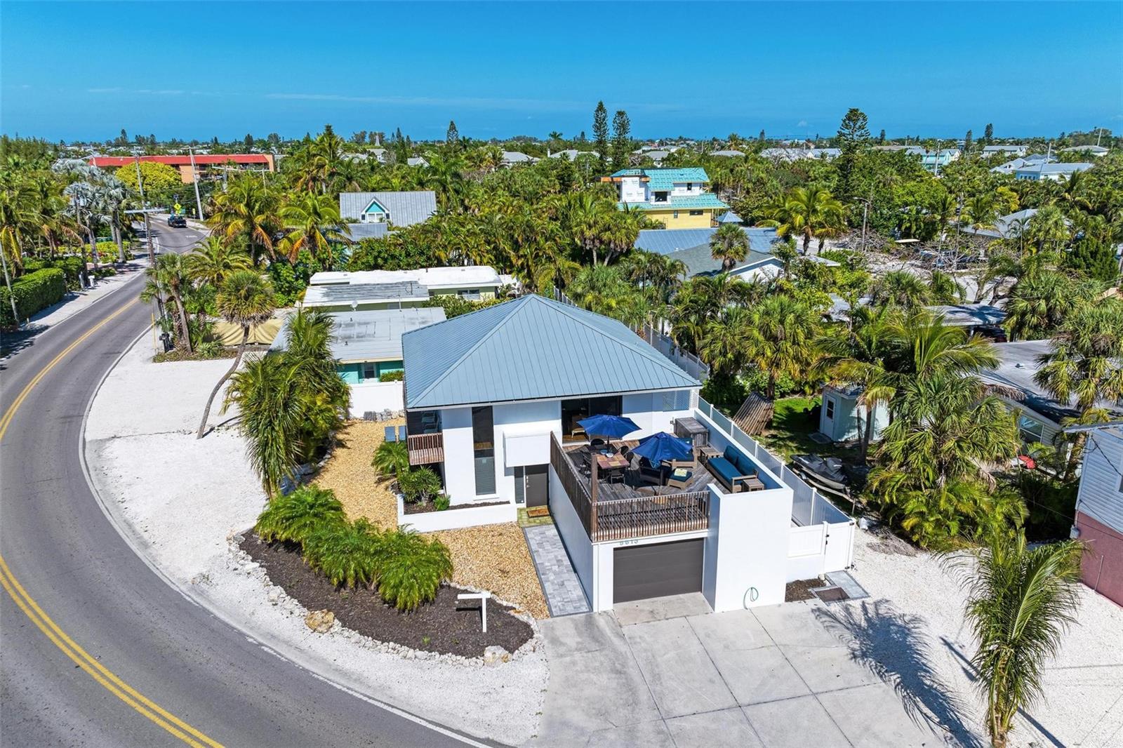 This one of a kind home was designed by Frank Lloyd Wright Fellow and renowned architect, H. Patterson Fletcher, and offers a brand new private heated pool and Gulf of Mexico views from the rooftop deck! Beautifully located within a short stroll to the sandy beach of the Gulf of Mexico. This three bedroom two bath home has it all! Tons of indoor and outdoor entertaining space with a large living room that opens up to a second floor "roof top" deck with views of the gulf of Mexico. The backyard is fabulous with a separate lounging and dining area with barbeque grill and view of the modern upscale pool. Backyard is almost maintenance free with high grade artificial turf. Brand new outdoor lighting to help keep the entertaining easy at night. Off the master bedroom opens up to a smaller deck with views of the Gulf. Perfect hideaway to have a morning coffee or evening drink. Kitchen has been beautifully updated with new granite countertops and a new stainless-steel sink. Attached is a garage with plenty of room for all your beach toys and possibly a golf cart for exploring the island. This home is a must see! Pool, artificial turf and privacy fence with 2 gates install in 2021/22. Seller has an assignable VA loan with an interest rate around 3% Selling unfurnished *price reduction** Amazing opportunity at a fantastic location**