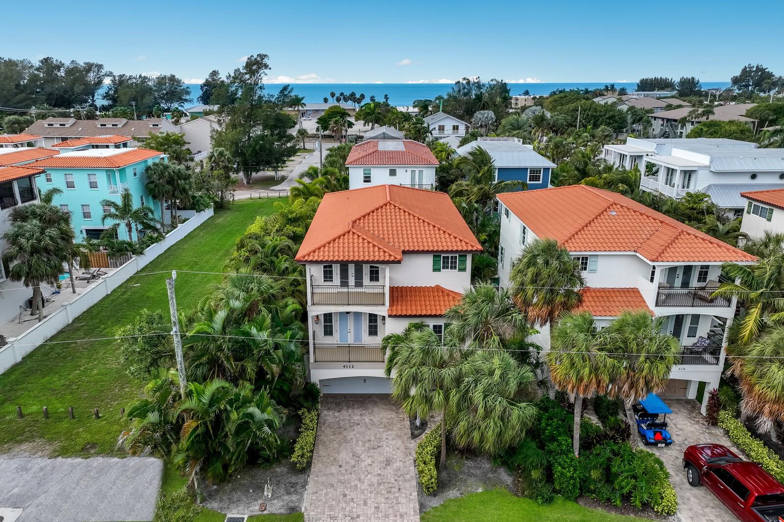 Your island paradise awaits in Holmes Beach on Anna Maria Island. Welcome to Villa Portofino. Perfectly positioned just steps from the public beach, this remarkable retreat invites you to experience Florida living at its finest. This five-bedroom, four-bath single-family condominium and villa is a building with nearly 4,466 total square feet and 2,842 square feet under air. At top of the stairs, you will find a light and bright floor plan with an effortless flow for entertaining. The kitchen boasts copious amounts of cabinetry, an island and a dining area, all of which open seamlessly to the living room. Abundant natural light shines through the doors and windows, leading to an outdoor deck that welcomes rest and relaxation and access to the private pool. The en-suite primary bedroom is a secluded escape, set apart on the second floor from the other four bedrooms which are on the third floor. Make your way to the tropical oasis in the back, encompassing a pool and lush greenery that envelopes the space. With proximity to restaurants, shopping, trolley and beautiful Anna Maria Island beaches. This little gem presents a unique opportunity. Weekly rentals allowed. Used as a vacation rental. Please ask your agent for the 3D virtual walk-through and drone link. Set up your appointment today.