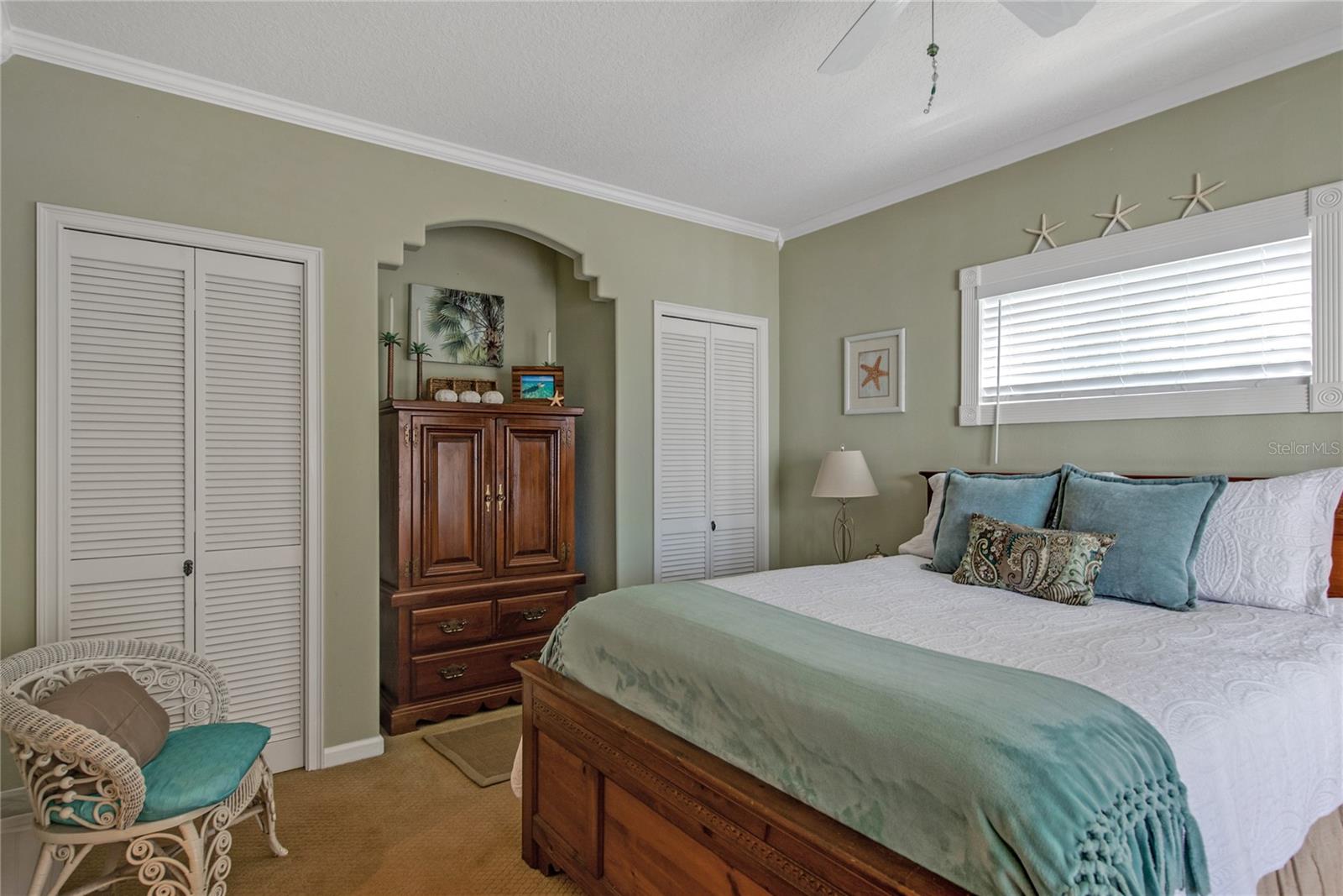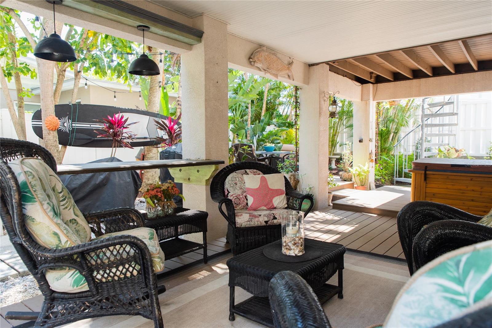 Coastal living at its finest, wake up to the Caribbean blue view from the exclusive Master Suite. Located just steps from the famous resort beaches of Anna Maria Island. Enjoy a island lifestyle from your new beach home with a cozy open floorplan, guest room with ensuite, office/den and more. Relax in style this turnkey (personal items excluded) island gem offers the best of both worlds, a perfect vacation getaway for you and the family, with ideal rental potential to help cover ownership expenses. (FYI: because of this home's elevation, 2023 Flood insurance was a very affordable $586.00). The 900 sq ft master suite showcases vaulted ceilings, sitting area, gulf views, walk in closet, master ensuite bathroom that includes a relaxing soaking tub, marble shower, and plenty of vanity cabinet space. Entertain your guests in a tropical outdoor setting with an original wood burning pizza oven, and party lighting. When it comes to island living, storage is always a key issue. Put your mind to rest with the oversize garage and bonus storage area. Not only is the beach a stone's throw away, but a short stroll will also put you in the heart of the village's gift shops, entertainment, and casual dining. And if you want to explore more of Anna Maria Island jump onto trolley at the near by stop. You'll want to put 5392 Gulf Dr. Gulfview Villas on your short list to see.