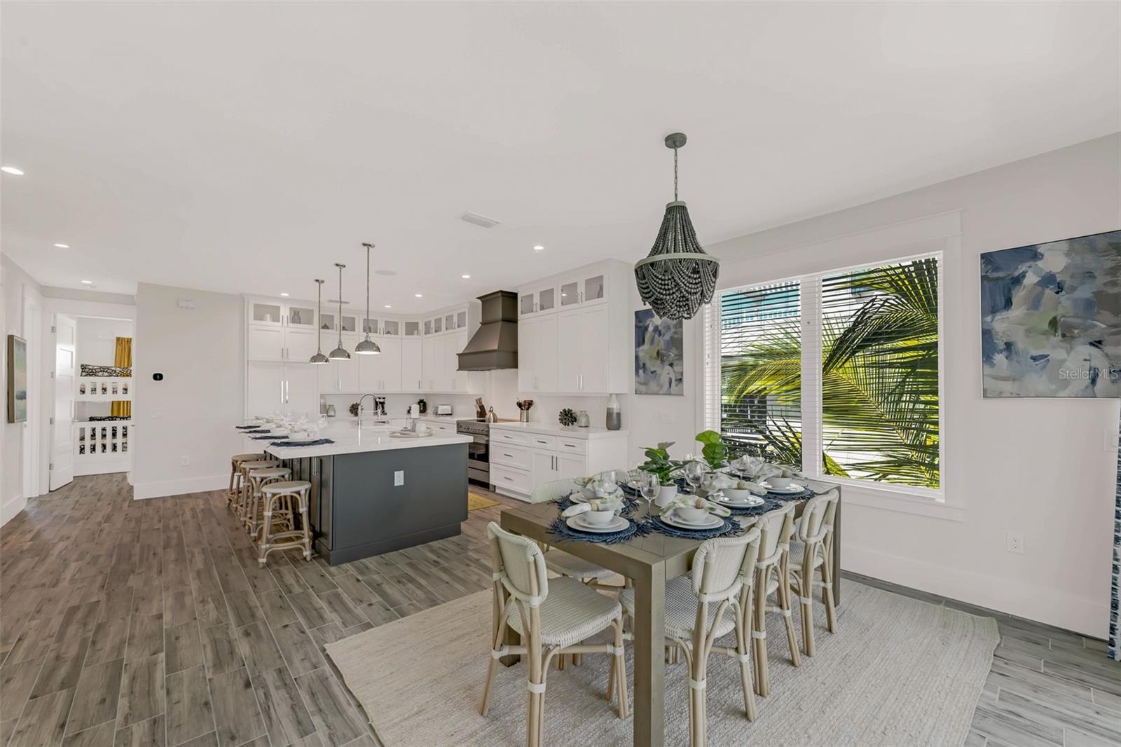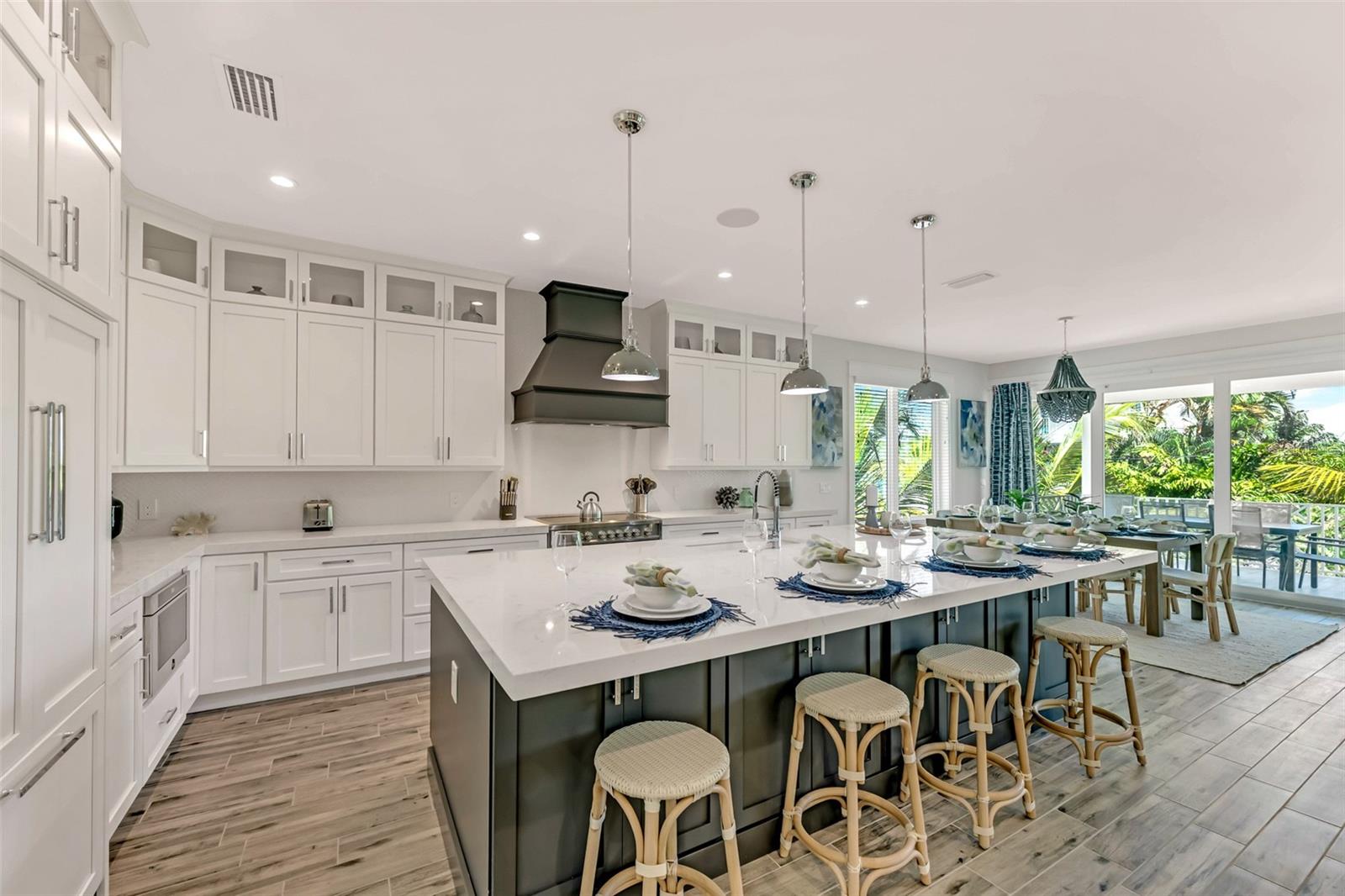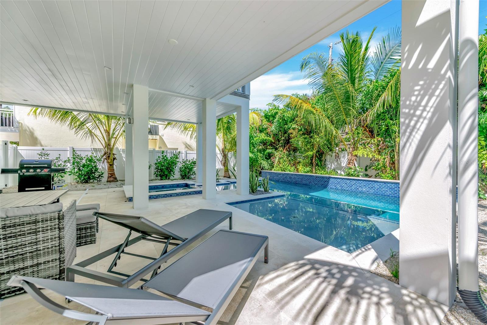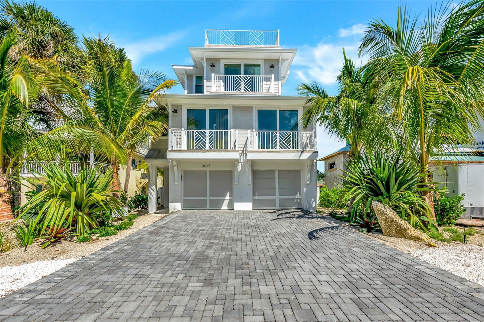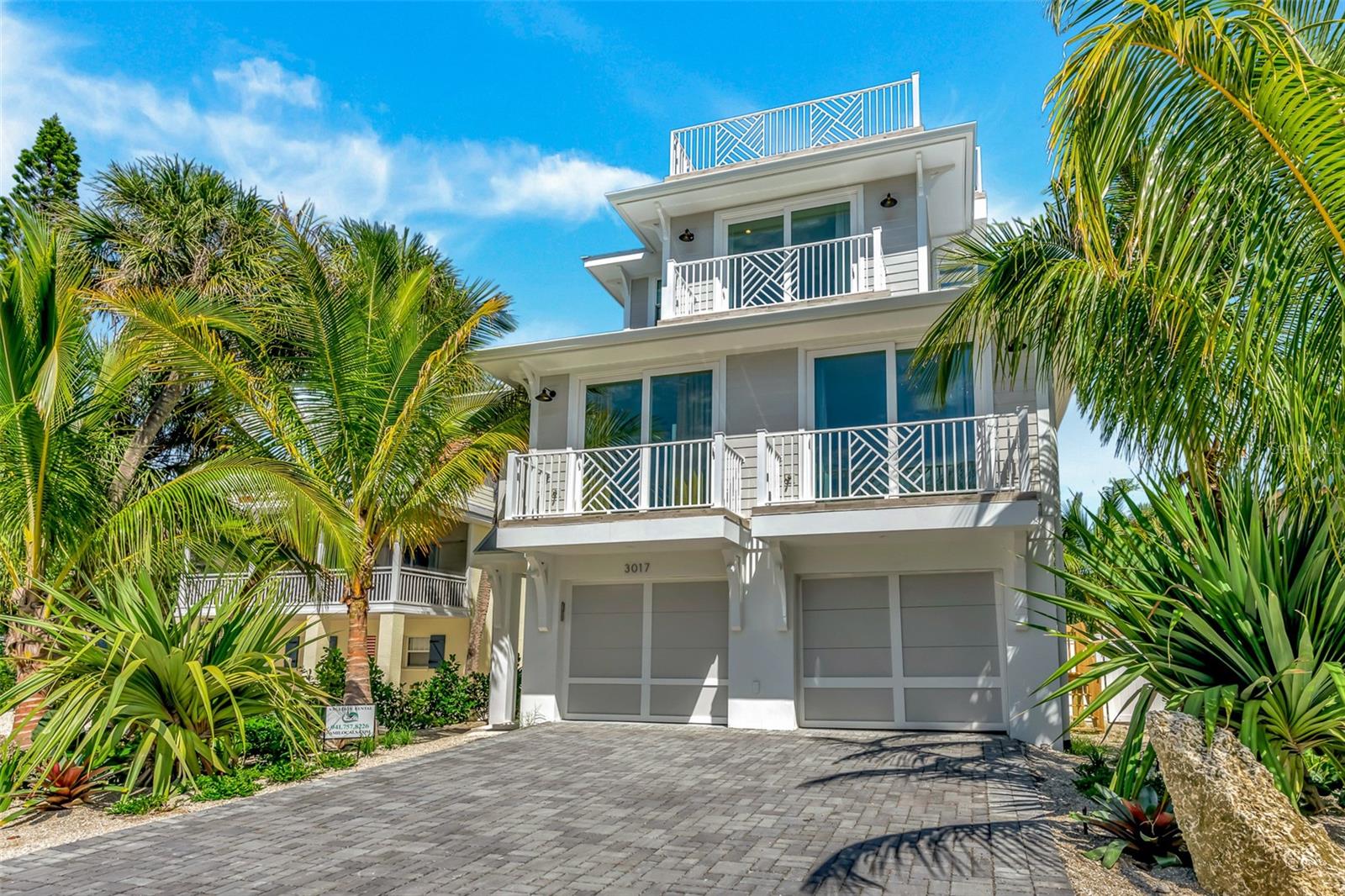 Welcome to luxury coastal living on Anna Maria Island! This gorgeous island retreat is only one short block away from pristine powder sand and stunning turquoise Gulf water beaches. Beautifully custom constructed with multi-levels and built in 2022, the panoramic rooftop views from this 4 bedroom and 4 & a 1/2 bath home are spectacular! The main living level boasts an open concept chef's kitchen, indoor and outdoor dining spaces and a cozy living area. The light and bright upscale kitchen features solid wood cabinets, quartz countertops, stainless steel appliances, and an oversized center island that is perfect for entertaining. Views of the gorgeous Gulf of Mexico can be seen throughout the home. There are two bedrooms and two and a half beautifully appointed tiled baths each with clean design elements on this level. Upstairs features the spacious primary bedroom with its own ensuite bath, a walk-in closet and a private Gulf facing terrace. The washer & dryer closet are also on this level. Along with the fourth bedroom with another beautifully tiled ensuite bath. Head up again and capture endless majestic views and famous sunsets from the comforts of your own rooftop deck area. There is plenty of parking and storage in the two-car garage. Enjoy outdoor living on multiple decks or from the tropical oasis backyard setting. Here you will find the modern and tranquil pool and spa. This space is ideal for relaxing after a sun filled day at the beach. This fantastic beach house is conveniently located mid island in the heart of Holmes Beach on Avenue E, which is a lovely quiet street. Only a short walk to local restaurants and shops. You can also grab some bikes and explore all that Anna Maria's seven-mile barrier island has to offer. Enjoy kayaking, a dolphin boat tour, walking trails or hop on the free AMI trolley to Pine Avenue and Bridge Street's piers with dining, shopping and live entertainment. This turnkey furnished home has designer décor finishes and is currently a very successful vacation rental.