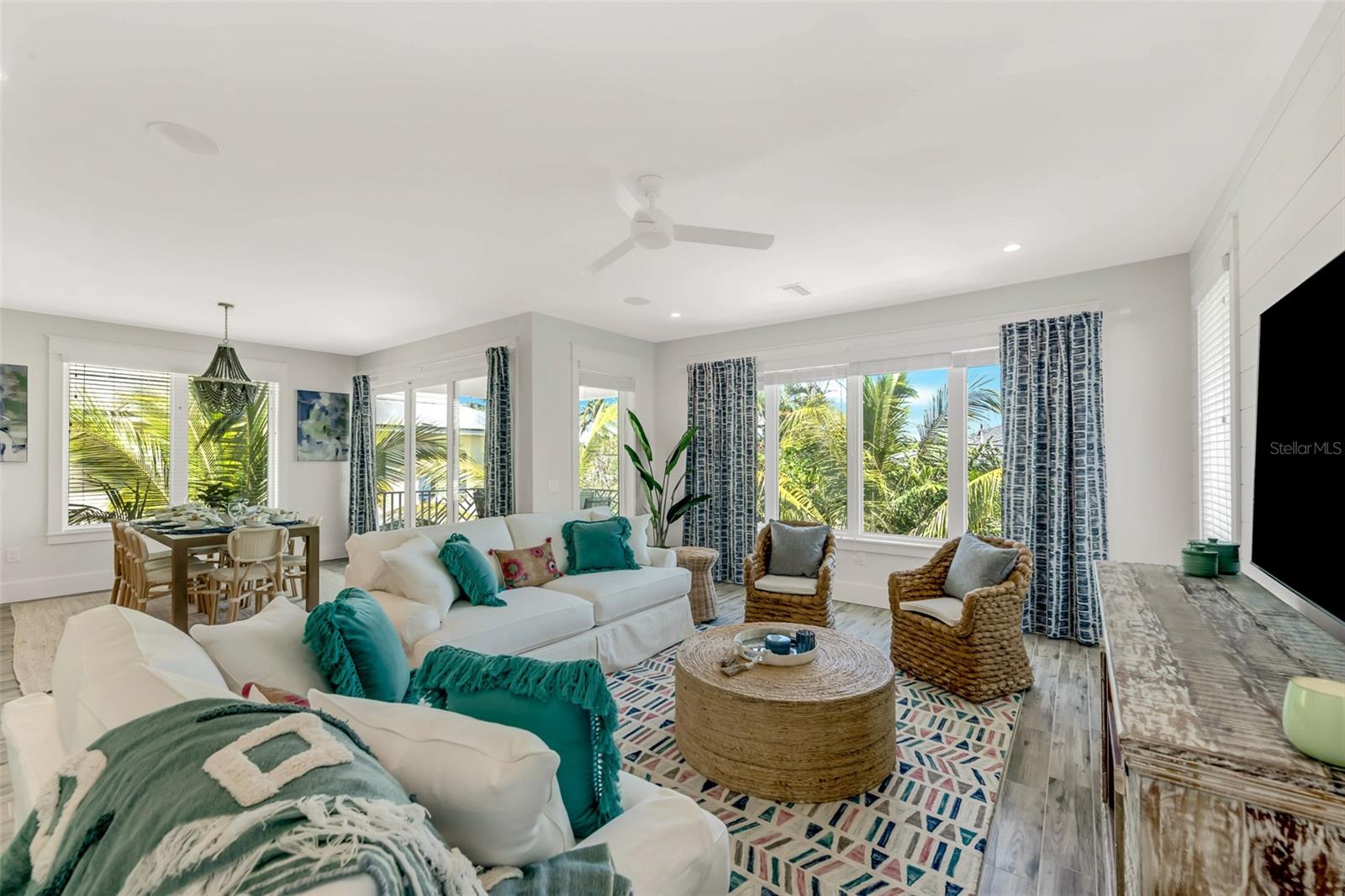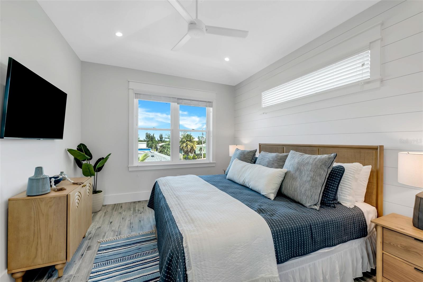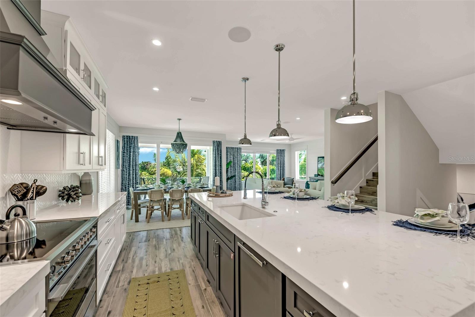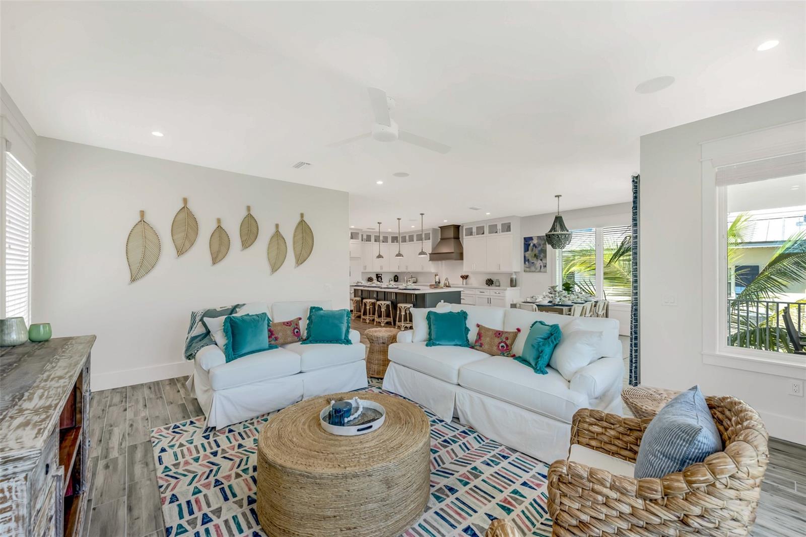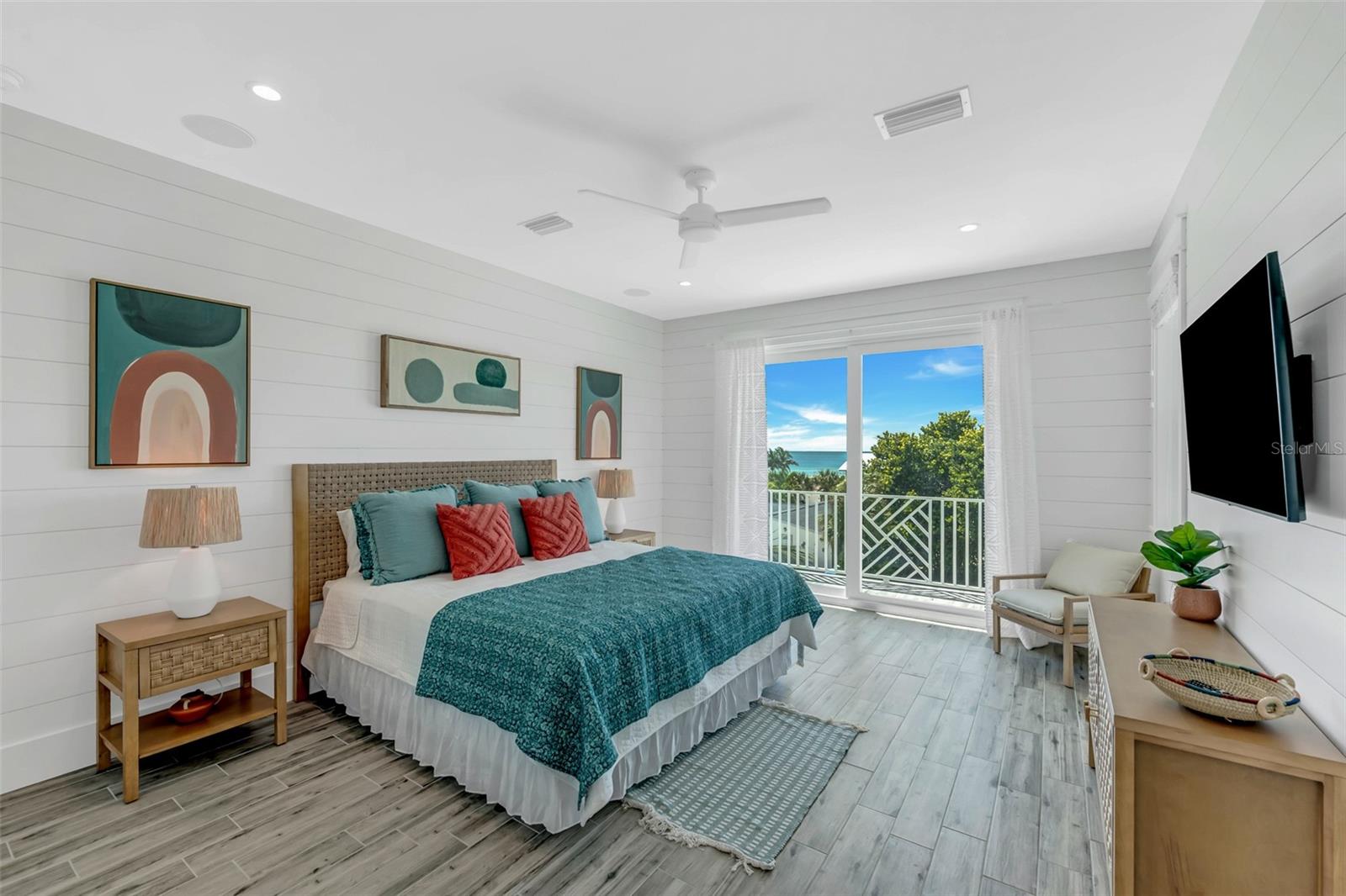 Welcome to luxury coastal living on Anna Maria Island! This gorgeous island retreat is only one short block away from pristine powder sand and stunning turquoise Gulf water beaches. Beautifully custom constructed with multi-levels and built in 2022, the panoramic rooftop views from this 4 bedroom and 4 & a 1/2 bath home are spectacular! The main living level boasts an open concept chef's kitchen, indoor and outdoor dining spaces and a cozy living area. The light and bright upscale kitchen features solid wood cabinets, quartz countertops, stainless steel appliances, and an oversized center island that is perfect for entertaining. Views of the gorgeous Gulf of Mexico can be seen throughout the home. There are two bedrooms and two and a half beautifully appointed tiled baths each with clean design elements on this level. Upstairs features the spacious primary bedroom with its own ensuite bath, a walk-in closet and a private Gulf facing terrace. The washer & dryer closet are also on this level. Along with the fourth bedroom with another beautifully tiled ensuite bath. Head up again and capture endless majestic views and famous sunsets from the comforts of your own rooftop deck area. There is plenty of parking and storage in the two-car garage. Enjoy outdoor living on multiple decks or from the tropical oasis backyard setting. Here you will find the modern and tranquil pool and spa. This space is ideal for relaxing after a sun filled day at the beach. This fantastic beach house is conveniently located mid island in the heart of Holmes Beach on Avenue E, which is a lovely quiet street. Only a short walk to local restaurants and shops. You can also grab some bikes and explore all that Anna Maria's seven-mile barrier island has to offer. Enjoy kayaking, a dolphin boat tour, walking trails or hop on the free AMI trolley to Pine Avenue and Bridge Street's piers with dining, shopping and live entertainment. This turnkey furnished home has designer décor finishes and is currently a very successful vacation rental.