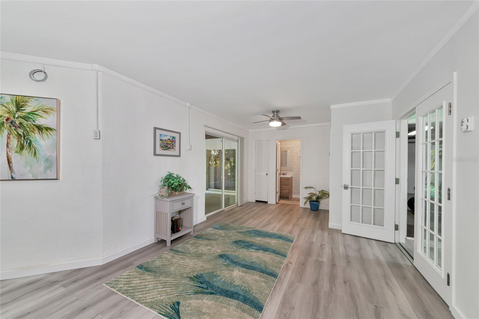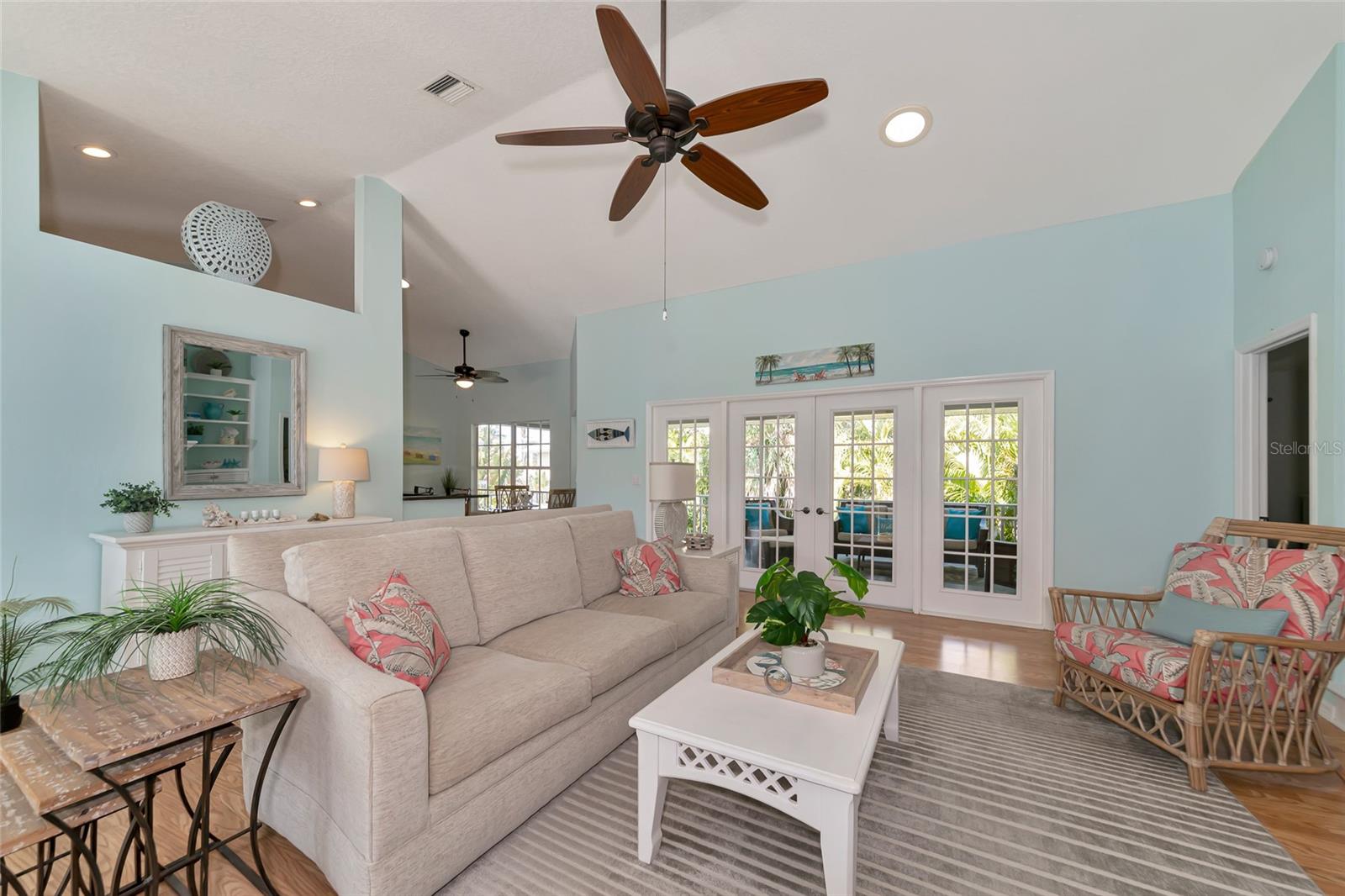 Welcome Home! This Beautifully Designed Coastal Home With 2550 SqFt Under Air Is Waiting Just For You! This Elevated 2 Bedroom/2Bathroom, Plus Lower-Level Open Floor Plan With Vaulted Ceilings Can Be Found Tucked Back In A Quiet Island Neighborhood And Is Just 3 Blocks To The Beach. You Can’t Miss The Beautiful Custom Shelving In The Living Room, French Doors Out To The Expansive Screened Porch, Luxurious Soaking Tub, Separate Glassed In Shower, Wood Kitchen Cabinets, Granite Counters And Stainless Appliances. The Large Primary Living Space Can Be Found All On One Level. The Lower Level Provides The Perfect Space For An Office And Additional Gathering Place For Friends & Family With Walk-Out Access To The Lower Patio, Outside Shower And Saltwater Pool & Spa (2021). Other Amenities Include Oversized Insulated Garage With Workspace Or Extra Storage For Fishing Gear, Beach Toys, Golf Cart Or Bicycles. This Home Is Complete With Extra Storage Space For Your RV Or Boat, An Irrigation System And It's Close To The Local Marina For Your Boat. Call Today To Make It Yours! You Won’t Want To Miss This One!! Bedroom Closet Type: Walk-in Closet (Primary Bedroom).
