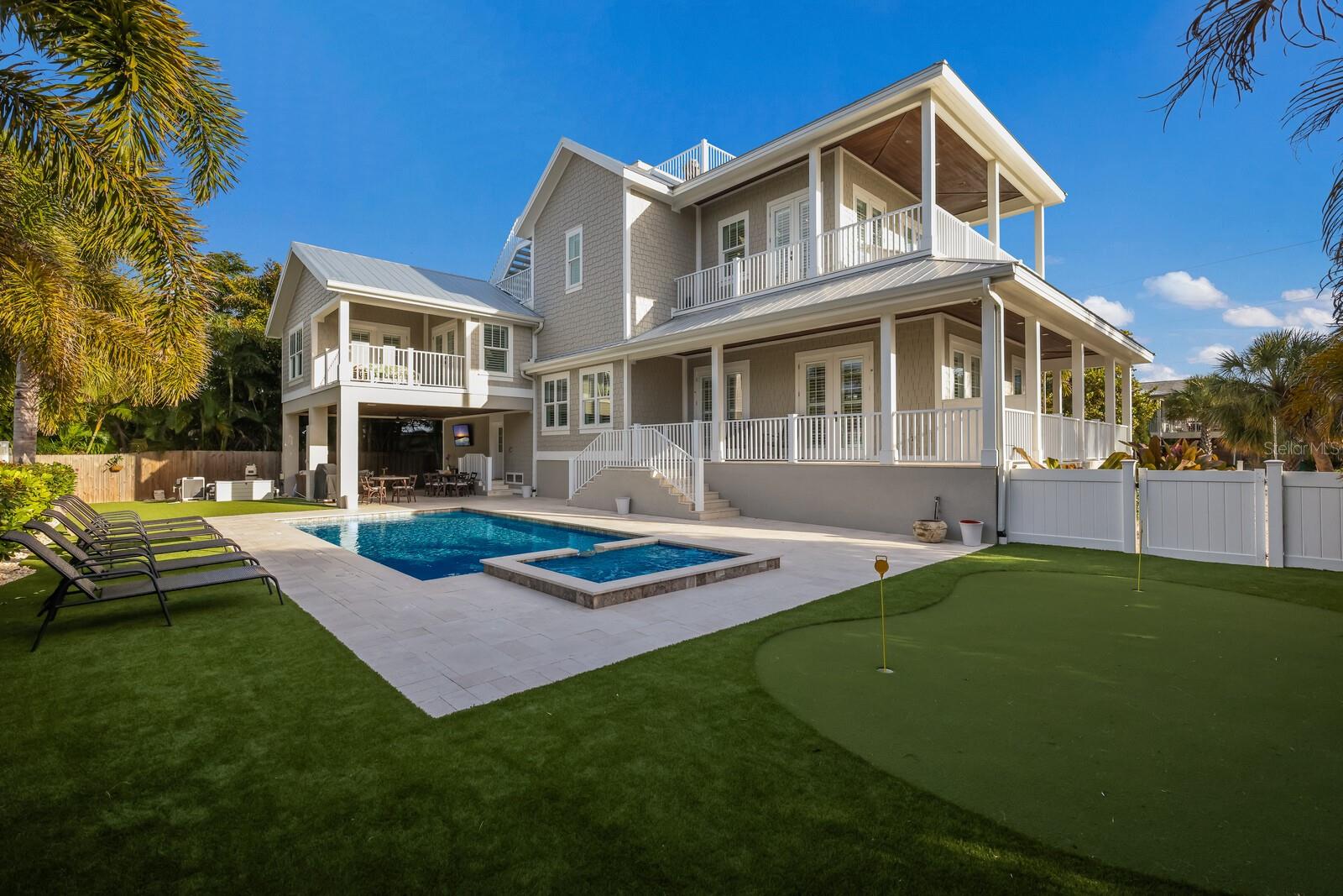 LUXURY at its finest on Anna Maria Island! This custom built, stunning home encompasses the true word “custom” – from the wrap around porches, to the gorgeous wood work, to the impressive light fixtures – even the elevator takes you from level 1 all the way up to the roof top deck (level 6)! GULF VIEWS for days – need I say more! This stellar home offers 4BD/4BA along with an additional bonus room w/ en suite bathroom to make an office, game room, additional guest suite and/or exercise room – whatever you decide there is plenty of space! PLUS a family room on the third level with the 3 additional bedrooms – a cozy place to watch a movie after a great day at the beach! Sitting on a large corner lot and on a quiet street, this dazzling home is just 25 steps to the beach - YES 25 steps to the gulf beach! Not in the mood to get your toes sandy, no problem! You can take it the beautiful gulf views and sunsets from multiple rooms inside the home, covered porches off each bedroom, the wrap around front porch, OR the fabulous roof top deck! There is nothing like ending the day with your favorite beverage while watching those splendid AMI sunsets. The primary suite is something to talk about all on a floor of its own! The custom wood work is a site to see, private covered porch to enjoy your morning coffee and lovely water views, extra-large walk-in closet and a ton of room – enough to have a sitting area to watch your favorite show in private! The exceptional en-suite primary bathroom offers dual vanities, stone counters, fabulous walk in shower, water closet, and a soaking tub where you can relax and see those gulf beach views too! After a fun day at the beach, embrace the Florida lifestyle in your own backyard oasis! The grand, salt water pool and spa are heated by natural gas, a covered patio to enjoy your fresh catch of the day, putt putt golf area for entertainment, and all surrounded with the low maintenance turf. What more could you want? Additional offers on this one of a kind home includes 2 car garage w/ golf cart parking, huge storage for your beach toys, top of the line stainless steel appliances/wine fridge, natural gas fireplace, open concept on second level with living room, dining room and kitchen – great place to entertain, mud room, and an outstanding roof top deck with large stairs or elevator access! This piece of paradise is sold turnkey furnished and is zoned for weekly rentals too. There is nothing more you could ask for – just pack your bags! Schedule your private showing today and make this your island dream home!