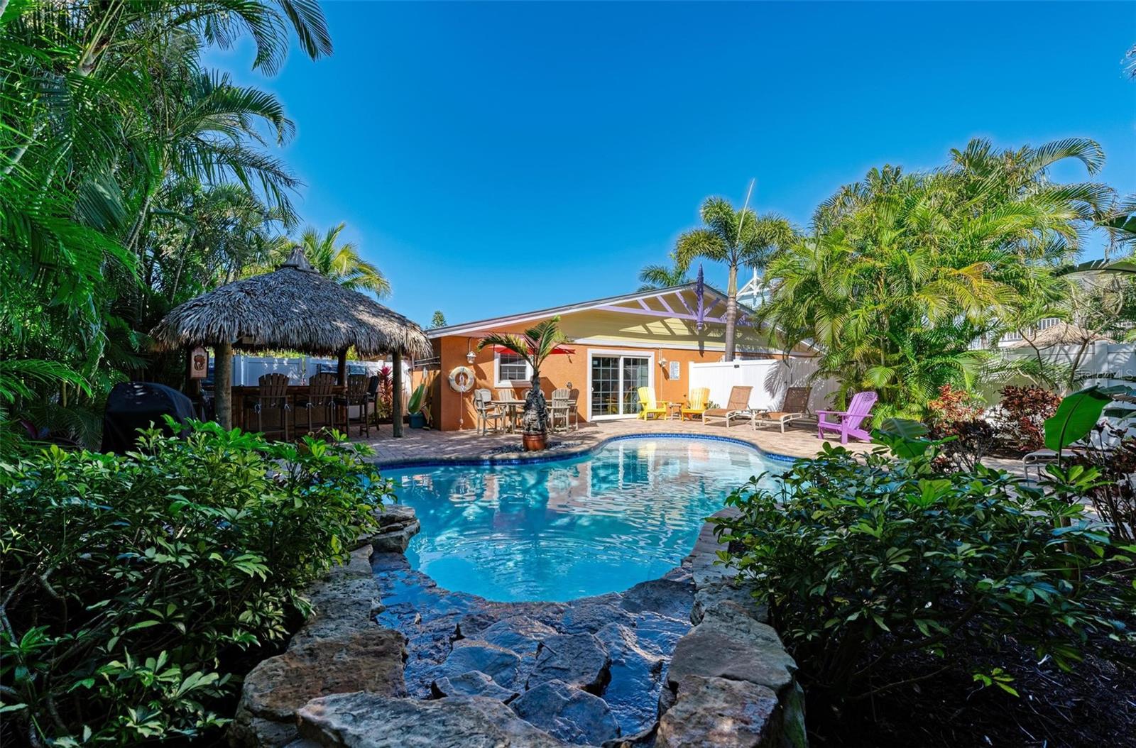 Welcome to Chiki Tiki West! This is a delightful 3 bedroom, 2 bathroom unit with charm of the island everywhere. You will melt into the back yard. Its tropical and tranquil setting will keep you there all day! Only 2.5 short blocks to the incredible beaches you see on some the "best of" lists in top travel magazines. Chiki Tiki is in a great location to the beach, to shops, to great restaurants and the stops to pick up the FREE Island Trolly! Hob nob around town or at the beach and when you are done, come back home to enjoy the solitude of an island home with a private pool and super fun Tiki Bar in the back. Chiki Tiki is ready for fun no matter what. You can't help but feel like you are on vacation! Chiki Tiki is a very busy vacation rental and ready for you to grab ahold of your first investment property. A great home, in a great spot with great history. Come see your new home!