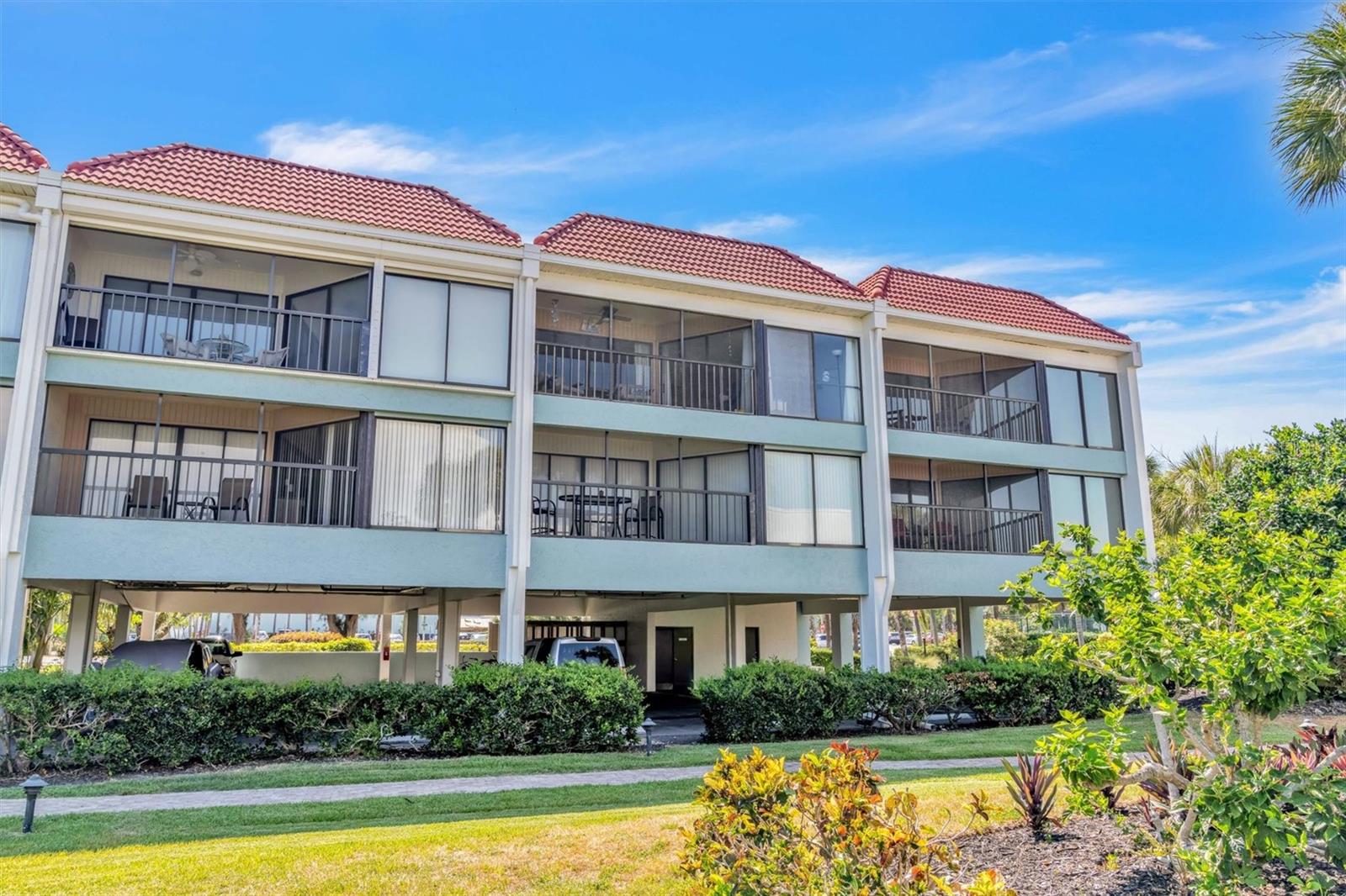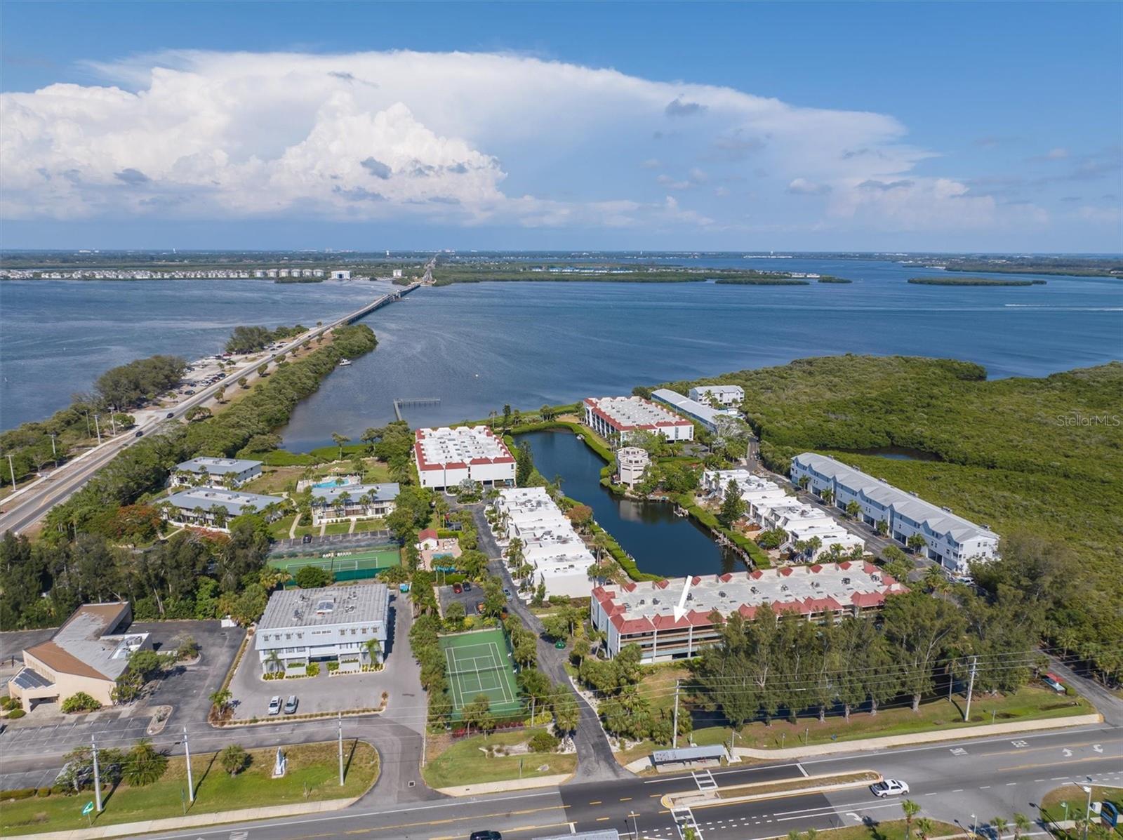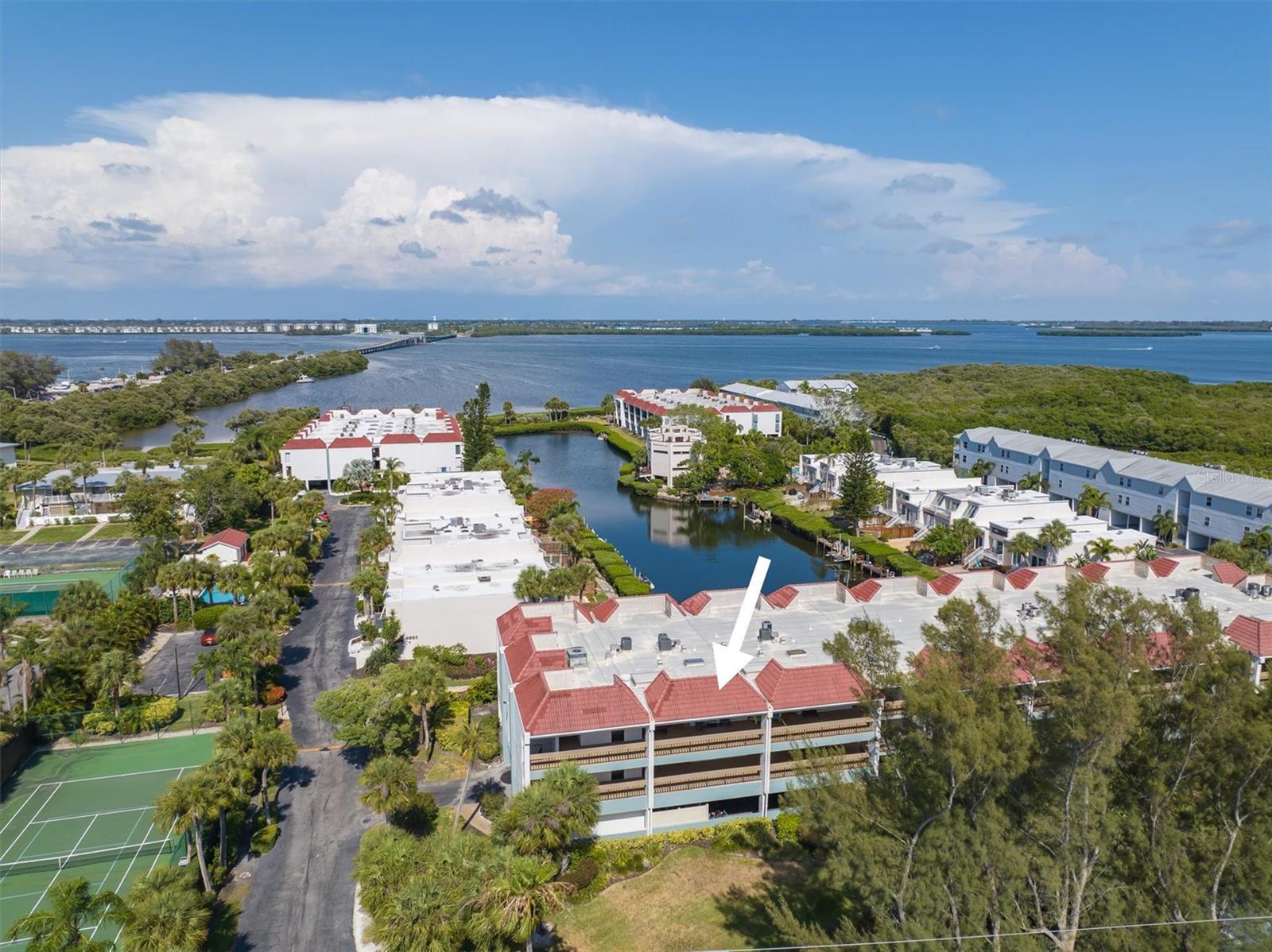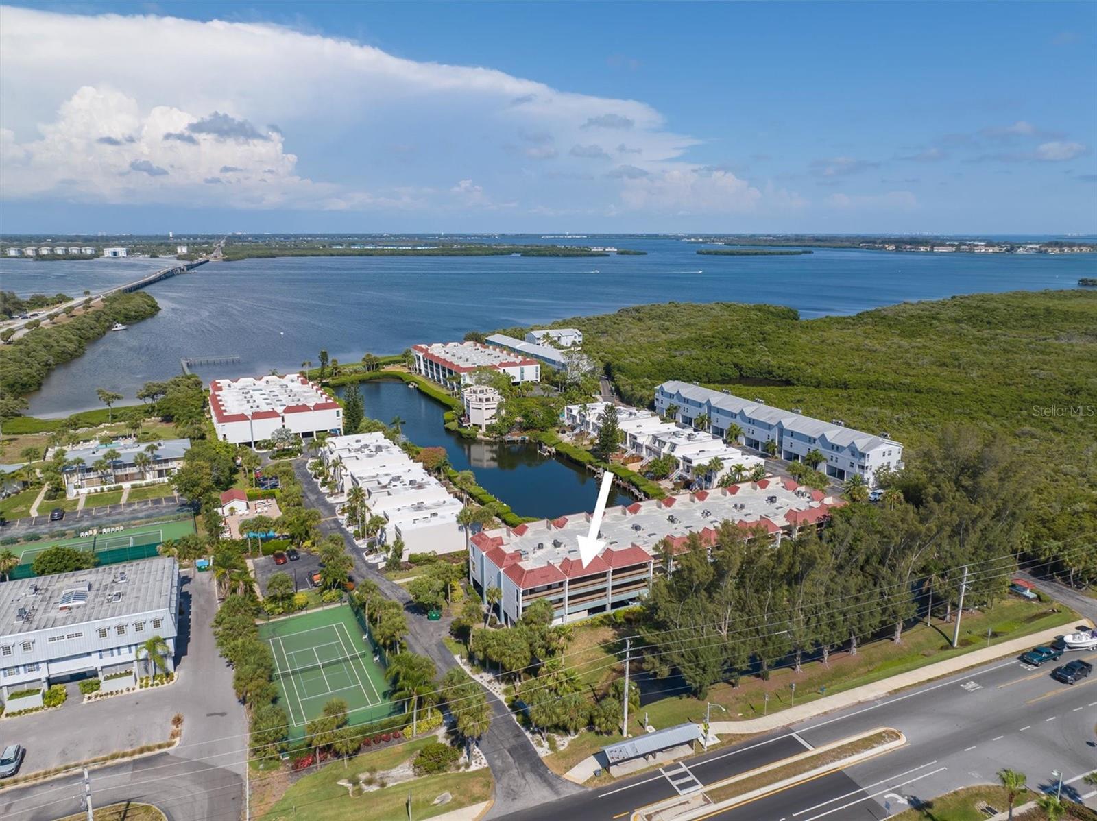 HUGE PRICE REDUCTION!!!! Welcome to Bay Bliss in Sunbow Bay. When you walk into the unit and into the living room you are greeted by one of the best water views in the building. The wall-to-wall patio doors open from the living room and open to your lanai. They overlook the secluded lagoon where you can launch paddle boards or kayaks from the community dock. This lagoon is home to manatees and dolphins throughout the year. Beyond that you look across the mangroves out to the intercoastal waterway. You will also be greeted with gorgeous sunrises most of the year. The condo is a two-bedroom, two-bathroom condo on the top floor. Bay Bliss has been completely updated from the original. The kitchen has new Shaker cabinets and new quartz countertops. All the appliances are less than three years old, including a new full-sized washer and dryer that have replaced the old compact stackable. The original enclosed galley kitchen has been opened to the living room with a breakfast bar. The entire condo has gorgeous tile floors for easy maintenance. The primary bedroom with a king-sized bed also has wall to wall patio doors leading out to Lanai with the same gorgeous view. The second bedroom at the front of the unit has two double beds. It is bright and airy due to the ceiling skylight. This skylight has a custom shade to darken the room should you need to. Both the primary and hallway bathrooms have been updated with newer vanities, toilets and tile work. The large front balcony has room for furniture. All the units have seats out front to enjoy the sunsets to the west. The unit has an assigned parking space, a lockable storage room and outside storage for kayaks and bicycles. The lagoon behind the home provides access for kayaks and paddleboards out to the Inter-coastal. The building has elevator access from the center of the ground floor parking area to each floor. There are also stairs at each end of the building, The community is right at the intersection of SR64 and E Bay Dr allowing easy access on and off the island. The present owners and family use it regularly. However, they do rent it seasonally: 2023-$37,101, 2024-$26,817 (so far) and 2025-$21,720 (so far). Do not let this gem get away!!!! Note: The units will have a new roof and skylight installed by 12/31/2024. There is a one-time assessment fee of $36K, due 09/01/2024.