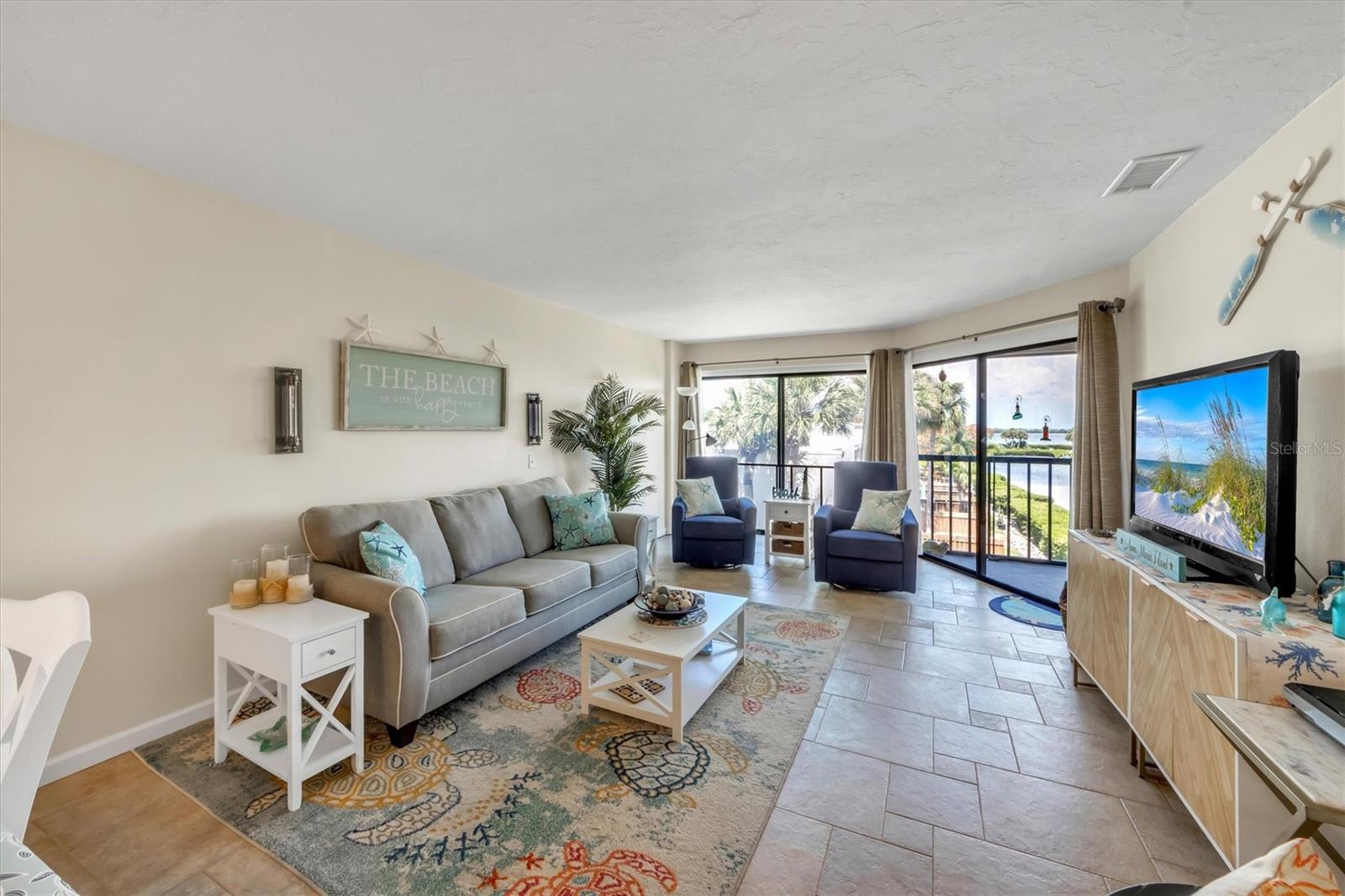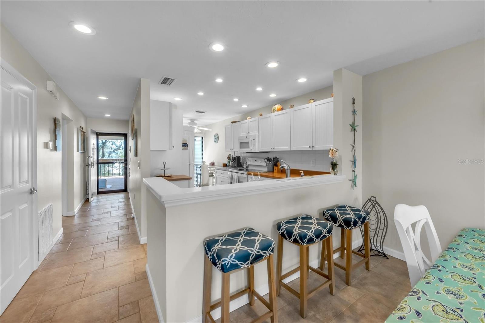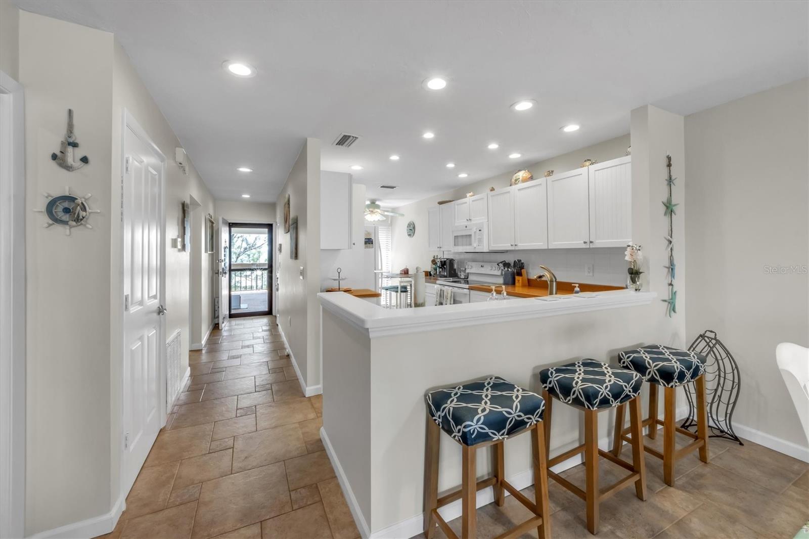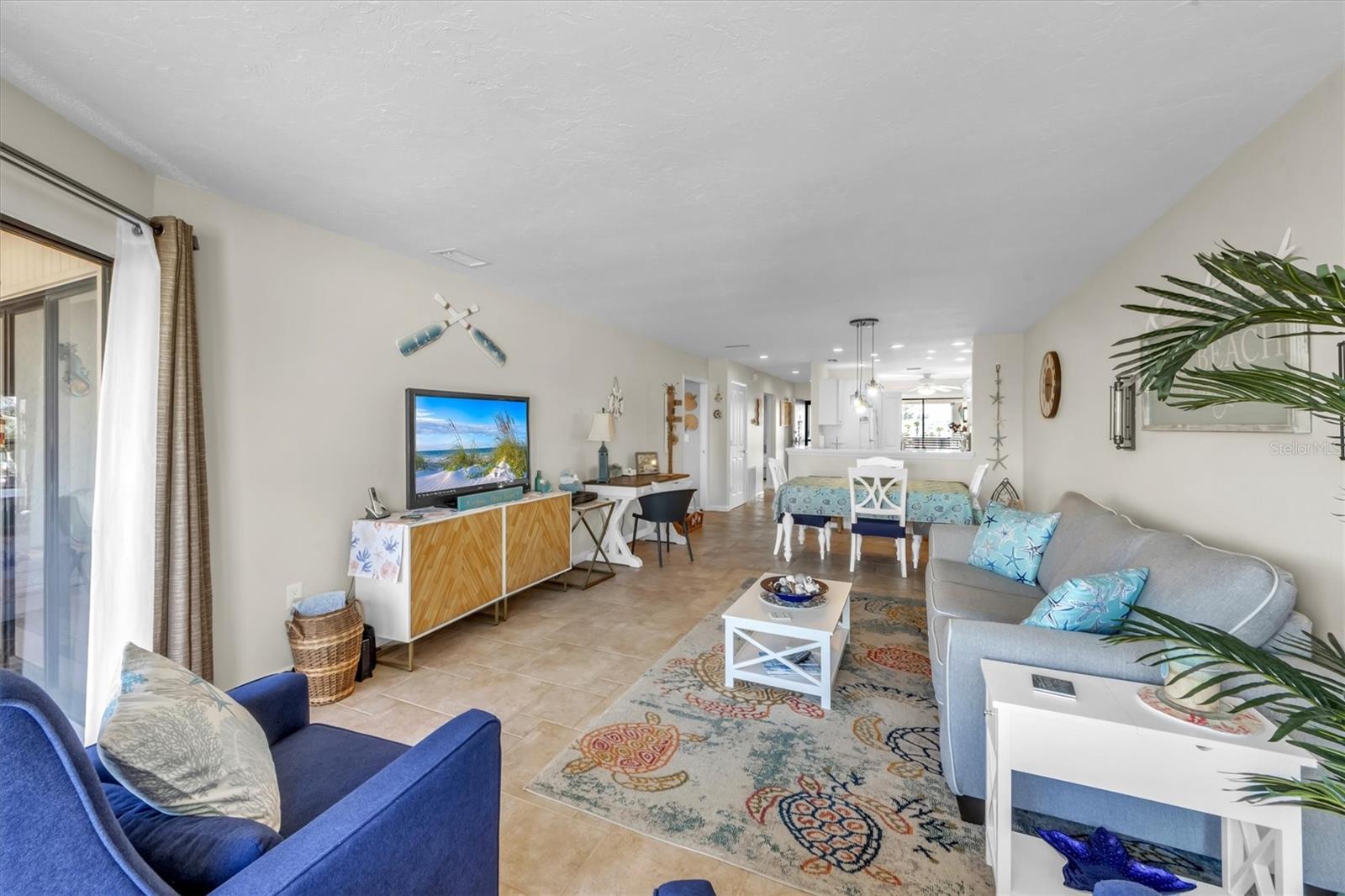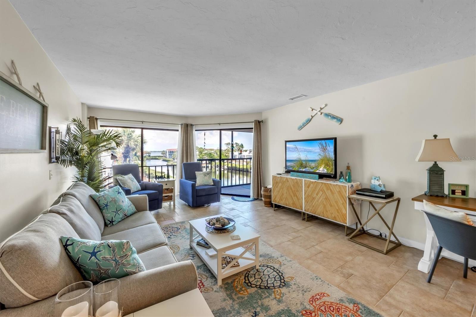 HUGE PRICE REDUCTION!!!! Welcome to Bay Bliss in Sunbow Bay. When you walk into the unit and into the living room you are greeted by one of the best water views in the building. The wall-to-wall patio doors open from the living room and open to your lanai. They overlook the secluded lagoon where you can launch paddle boards or kayaks from the community dock. This lagoon is home to manatees and dolphins throughout the year. Beyond that you look across the mangroves out to the intercoastal waterway. You will also be greeted with gorgeous sunrises most of the year. The condo is a two-bedroom, two-bathroom condo on the top floor. Bay Bliss has been completely updated from the original. The kitchen has new Shaker cabinets and new quartz countertops. All the appliances are less than three years old, including a new full-sized washer and dryer that have replaced the old compact stackable. The original enclosed galley kitchen has been opened to the living room with a breakfast bar. The entire condo has gorgeous tile floors for easy maintenance. The primary bedroom with a king-sized bed also has wall to wall patio doors leading out to Lanai with the same gorgeous view. The second bedroom at the front of the unit has two double beds. It is bright and airy due to the ceiling skylight. This skylight has a custom shade to darken the room should you need to. Both the primary and hallway bathrooms have been updated with newer vanities, toilets and tile work. The large front balcony has room for furniture. All the units have seats out front to enjoy the sunsets to the west. The unit has an assigned parking space, a lockable storage room and outside storage for kayaks and bicycles. The lagoon behind the home provides access for kayaks and paddleboards out to the Inter-coastal. The building has elevator access from the center of the ground floor parking area to each floor. There are also stairs at each end of the building, The community is right at the intersection of SR64 and E Bay Dr allowing easy access on and off the island. The present owners and family use it regularly. However, they do rent it seasonally: 2023-$37,101, 2024-$26,817 (so far) and 2025-$21,720 (so far). Do not let this gem get away!!!! Note: The units will have a new roof and skylight installed by 12/31/2024. There is a one-time assessment fee of $36K, due 09/01/2024.