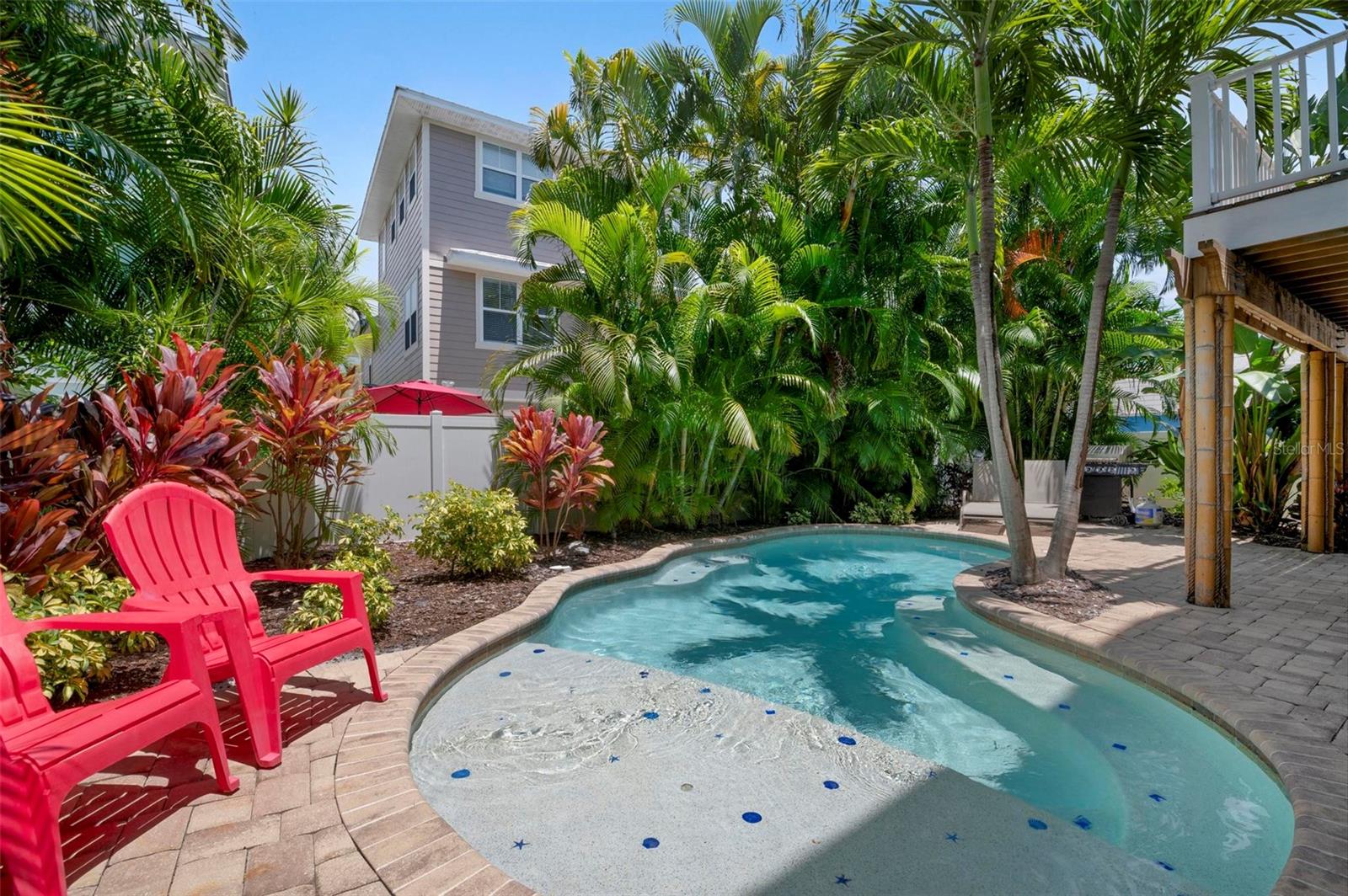 Welcome to Island Retreat! Located in a weekly short-term rental zone that allows strong rental potential to grow your investment. Rental history available upon request. Just two blocks to the world class beaches of Anna Maria Island, this well-appointed income producing property is a short stroll to azure waters of the Gulf of Mexico! This elevated and turnkey furnished 4 bedroom, 3.5 bath home offers indoor-outdoor living. Enjoy your own private fenced sanctuary with a heated pool and tikki bar. Inside, you’ll find style and comfort, including turnkey décor, tile floors, high ceilings, granite counters, solid wood cabinets, large tile showers and a jacuzzi tub, 2 large walk-in closets and plenty of storage. The kitchen offers a large island/breakfast bar, abundant lighting and stainless-steel appliances. Other notable highlights include, an elevator shaft, central vacuum, metal roof, and a two-car garage. A balcony off the living room and two others off the primary bedrooms extending your living space! Centrally located, just 2 blocks from the pristine beaches of Anna Maria Island, and close to all of the popular shopping & dining! You will be just a quick golf cart ride or stroll away from Anna Maria Island’s points of interest, so get ready to enjoy the island lifestyle! The savvy investor has the opportunity to maximize earnings with a proven desirable rental. The family-oriented buyer can realize their dream of securing a family retreat while building a legacy for generational wealth. If you want a prime investment property, a second home or a forever dream home, look no further than this incredible property. Call for your private showing today. Don’t miss out on this incredible opportunity to make your island dreams a reality.