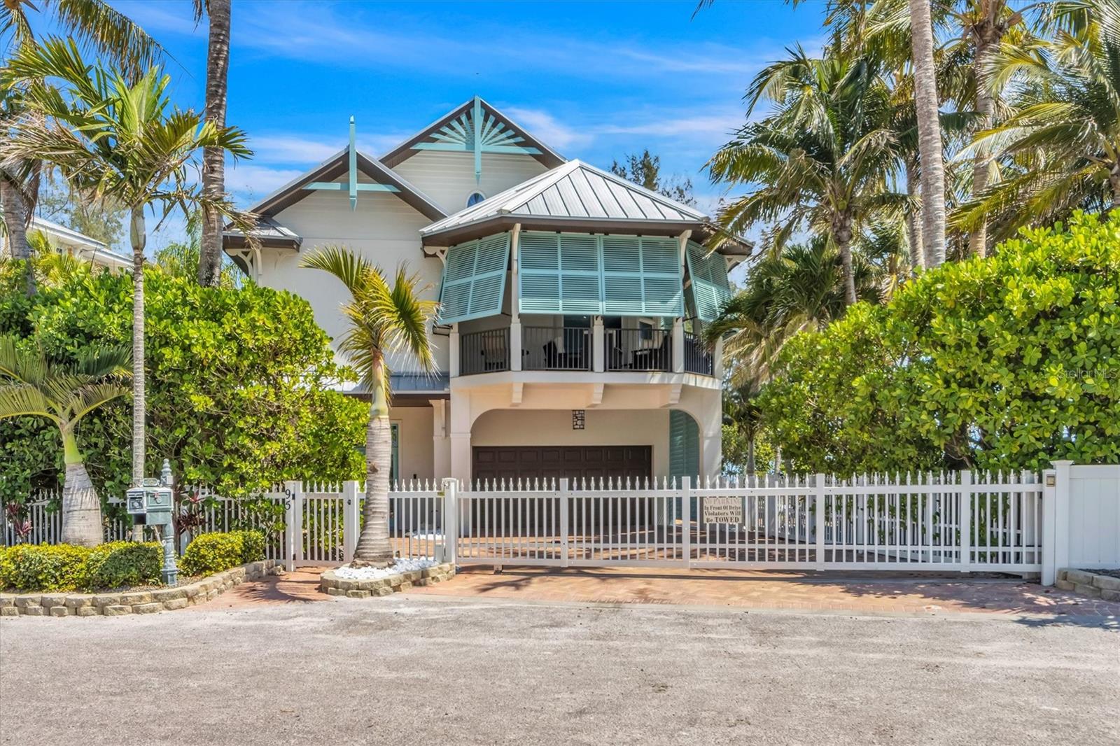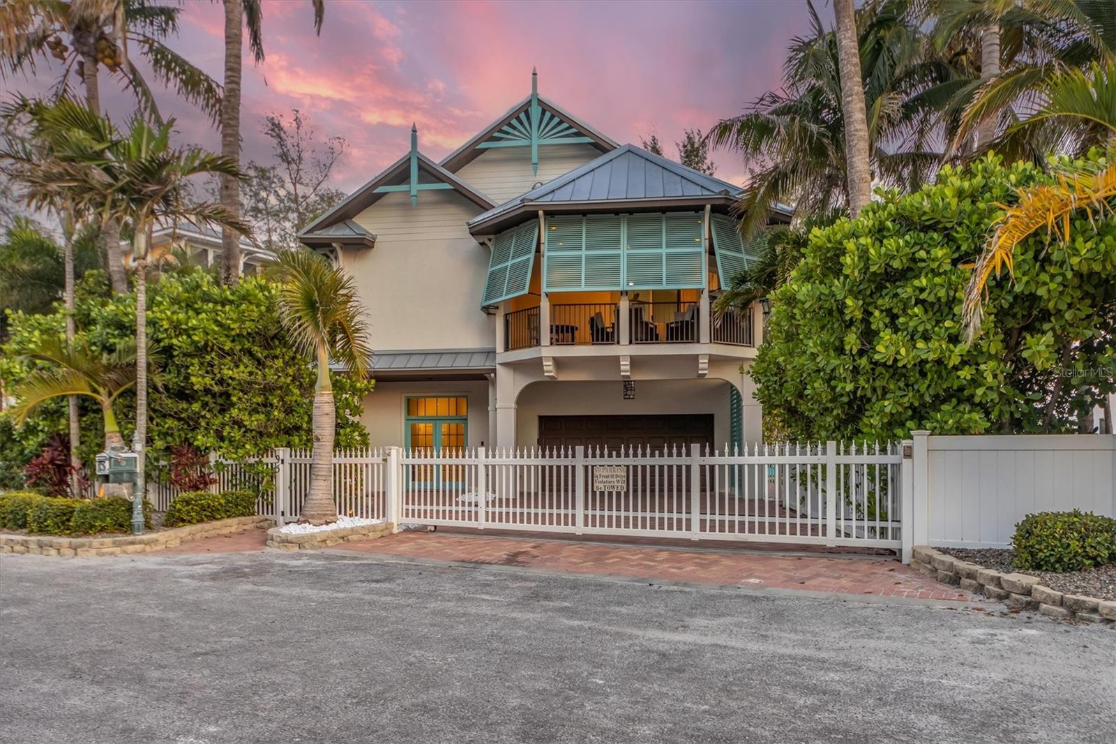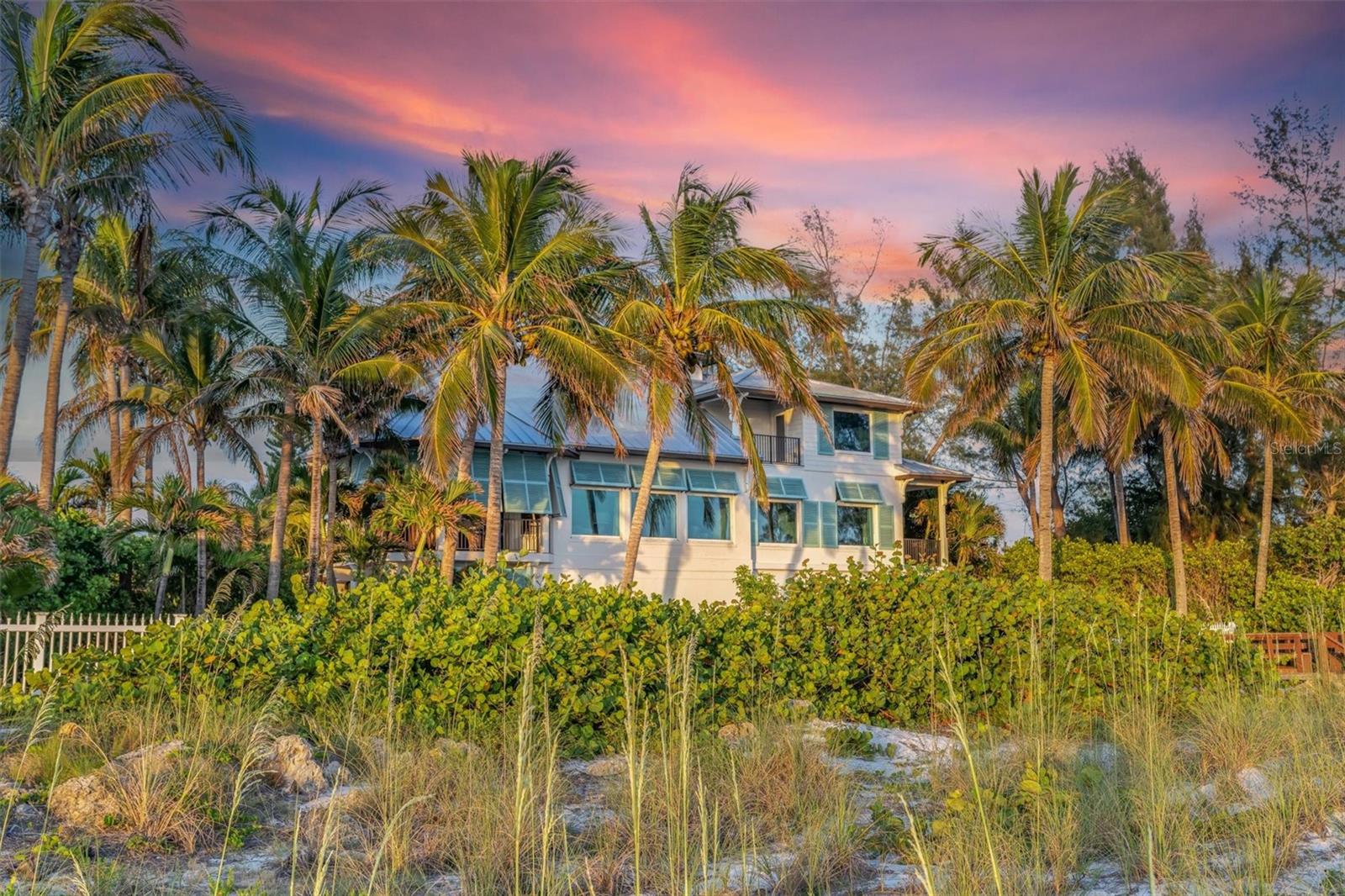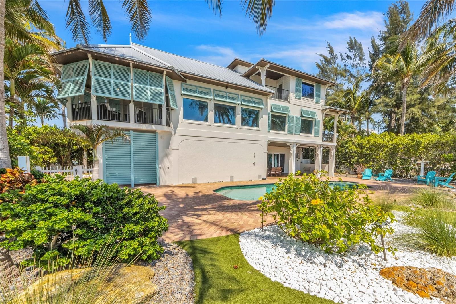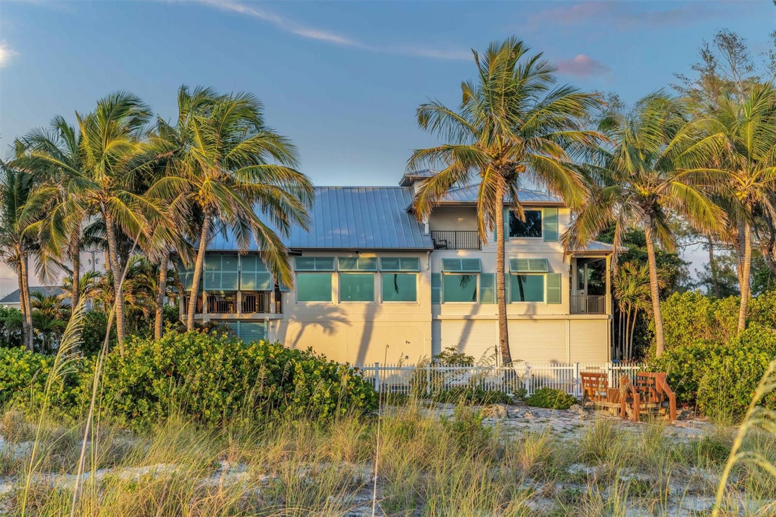 LUXURY GULF FRONT!!! Welcome to this Beachfront Paradise like no other! This high-end coastal retreat offers the ultimate in beachfront living. Situated on a sprawling half-acre property, this haven offers 150 feet directly on the Gulf of Mexico beach with stunning views from almost every window! This three bedroom, three and a half elevated home offers the ultimate beachfront living experience, with instant access to the pristine shores of the Gulf of Mexico in your backyard! This exquisite home was built in 2003, the architectural design lends to the Transitional Coastal West Indies-Style Beach Home with the perfect blend of elegance and comfort. Numerous outdoor living areas, covered porches, and an abundance of windows and sliding glass doors with panoramic views of the white sandy beach and spectacular sunsets. Tongue and groove ceilings, Bahama shutters, and a metal roof complete the beach vibe, creating the perfect coastal retreat. Step inside and be captivated by the open floorplan that offers panoramic beachfront views and is appointed with luxurious features, including an elevator, solid oak hardwood floors, and custom draperies complete with Roman shades. The kitchen is a chef's delight, with extensive solid wood inset cabinetry, natural stone countertops, and top-of-the-line appliances including a built-in panel refrigerator and Thermador Professional range with statement range hood. Relax and enjoy the sound system throughout the home so you can enjoy your favorite melodies inside or outside on the covered lanai. The luxurious primary suite on the main floor is accessible through gorgeous solid wood custom hand-carved doors. As you enter you will be delighted by the large window overlooking the white sandy beach along with French doors that lead to a private balcony that overlooks the pristine blue waters. Sit and relax outside as you will surely enjoy the gulf breezes and sunsets year-round. In the primary bathroom, you are sure to take delight in the indoor and outdoor showers. Upstairs are two ensuite guest rooms that offer additional comfort, with several covered balconies to enjoy the soothing sounds of the ocean. Each suite has been carefully designed with coordinating colors and design features that are sure to entice all the senses. The outdoor space is equally impressive, with a sizable, heated saltwater pool and spa, herringbone pavers surrounding the pool, and a beautifully landscaped backyard with lush gardens that are lined with palm trees and tropical flowers. There is low-maintenance artificial grass and a long-lasting rockscape design throughout. Hurricane roll-down shutters provide added security and peace of mind. At night the house transforms into a true retreat with extensive outdoor lighting. Located in the heart of Holmes Beach in Anna Maria Island you are in walking distance to so many shops and restaurants to enjoy. Don't miss this rare opportunity to own a piece of beachfront paradise. Schedule your private showing today!