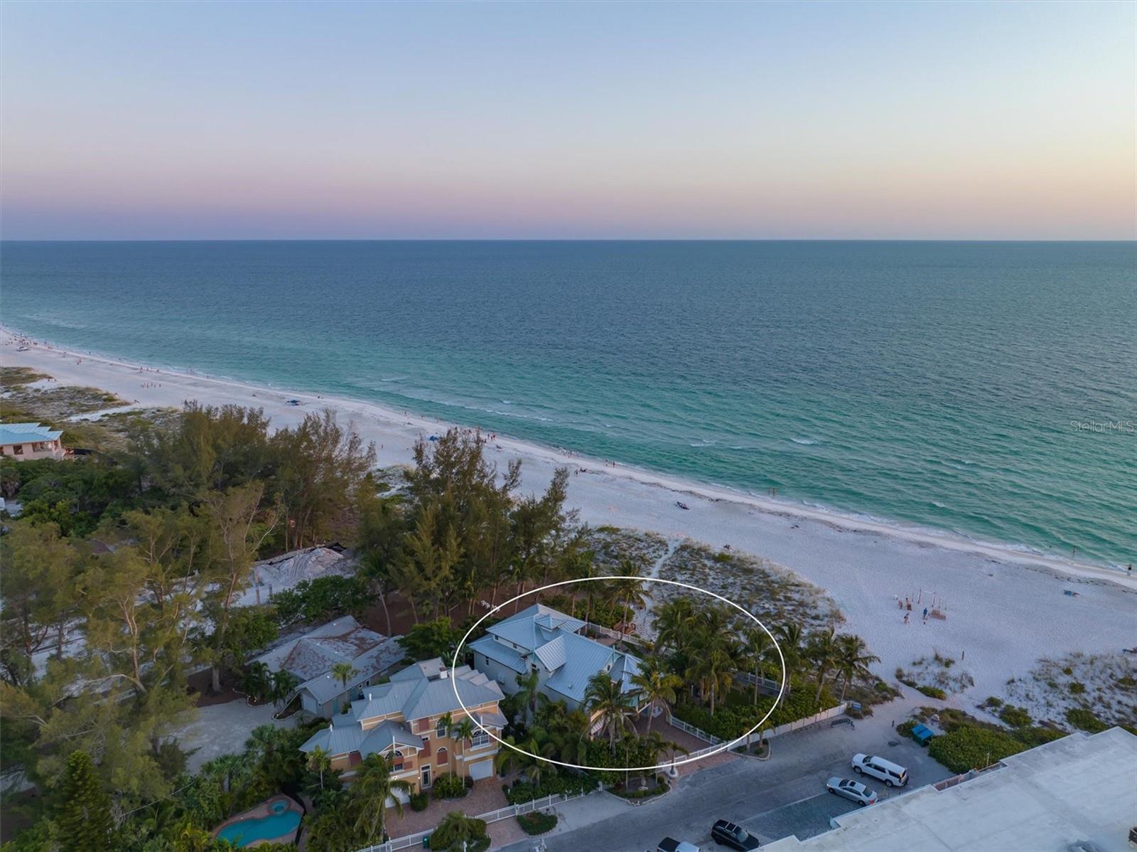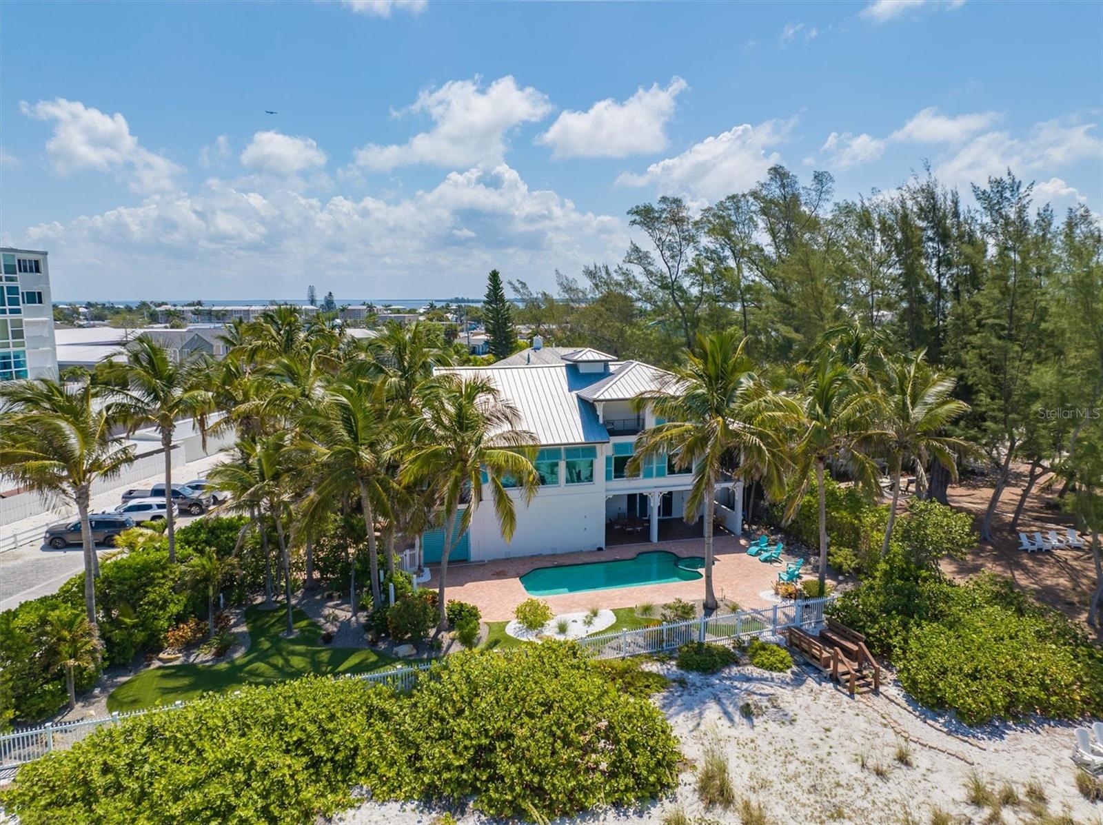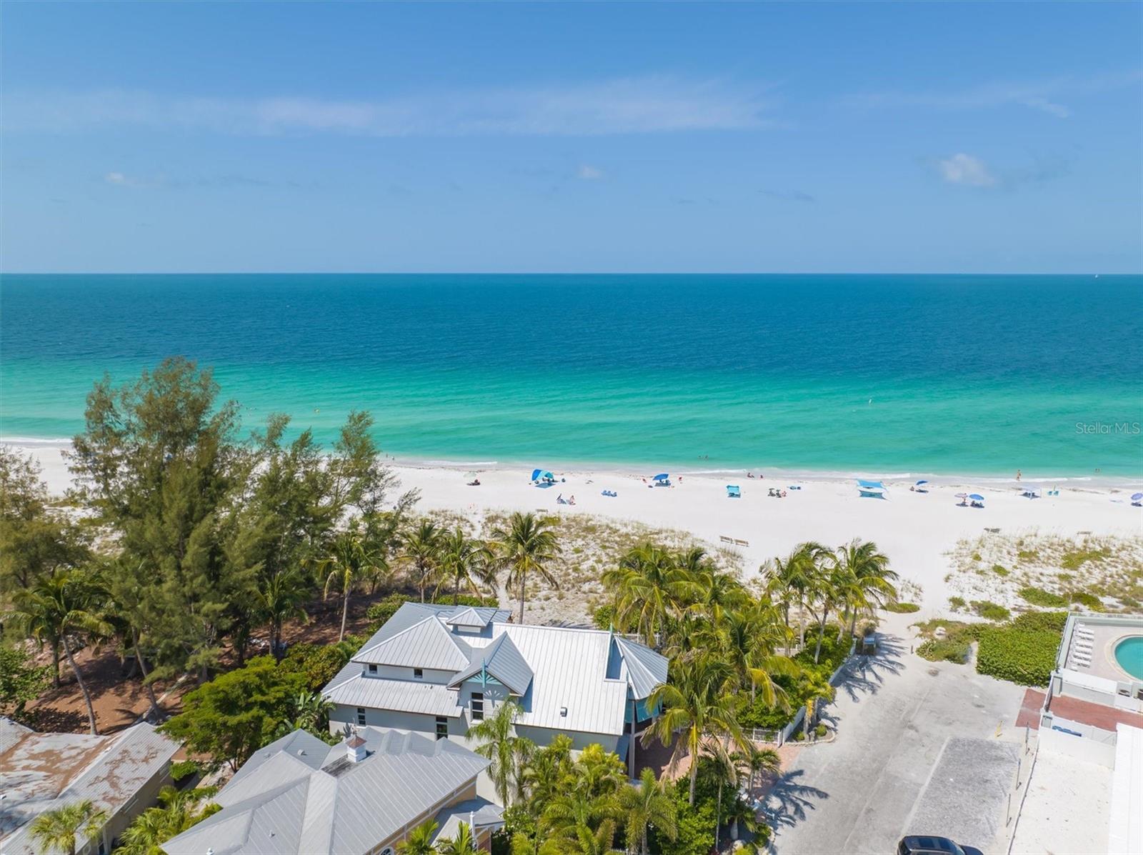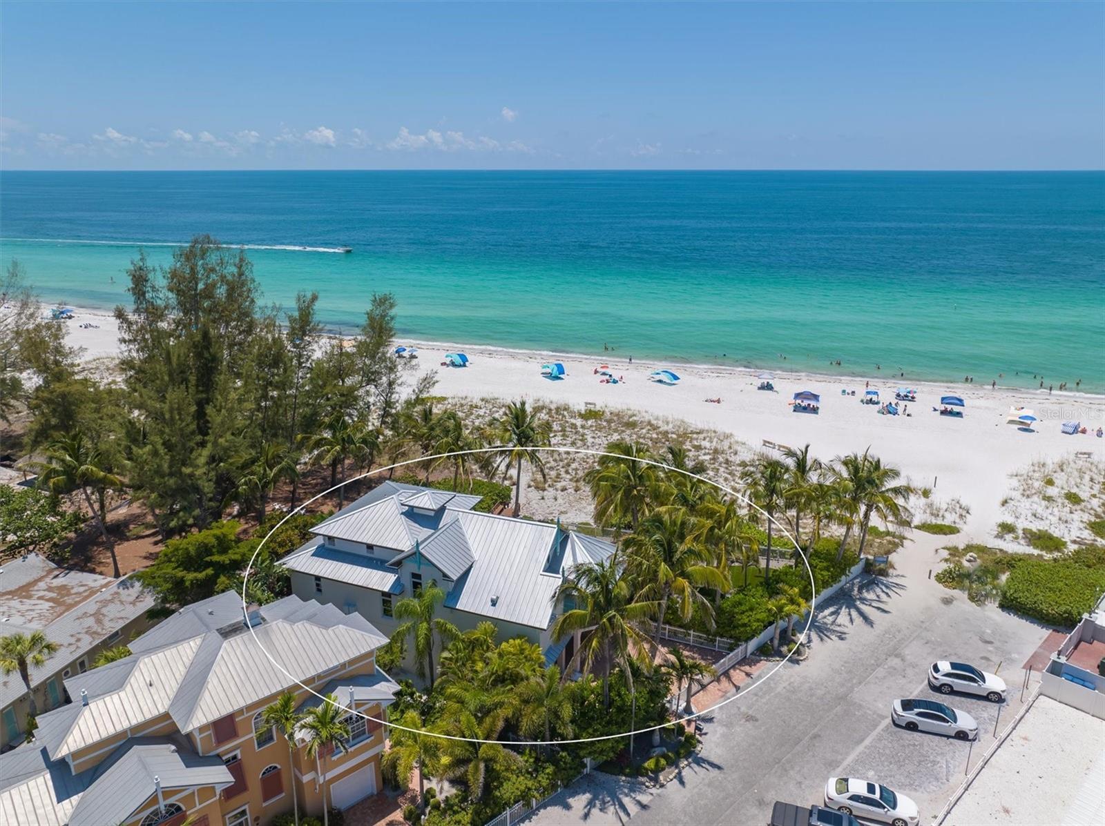 LUXURY GULF FRONT!!! Welcome to this Beachfront Paradise like no other! This high-end coastal retreat offers the ultimate in beachfront living. Situated on a sprawling half-acre property, this haven offers 150 feet directly on the Gulf of Mexico beach with stunning views from almost every window! This three bedroom, three and a half elevated home offers the ultimate beachfront living experience, with instant access to the pristine shores of the Gulf of Mexico in your backyard! This exquisite home was built in 2003, the architectural design lends to the Transitional Coastal West Indies-Style Beach Home with the perfect blend of elegance and comfort. Numerous outdoor living areas, covered porches, and an abundance of windows and sliding glass doors with panoramic views of the white sandy beach and spectacular sunsets. Tongue and groove ceilings, Bahama shutters, and a metal roof complete the beach vibe, creating the perfect coastal retreat. Step inside and be captivated by the open floorplan that offers panoramic beachfront views and is appointed with luxurious features, including an elevator, solid oak hardwood floors, and custom draperies complete with Roman shades. The kitchen is a chef's delight, with extensive solid wood inset cabinetry, natural stone countertops, and top-of-the-line appliances including a built-in panel refrigerator and Thermador Professional range with statement range hood. Relax and enjoy the sound system throughout the home so you can enjoy your favorite melodies inside or outside on the covered lanai. The luxurious primary suite on the main floor is accessible through gorgeous solid wood custom hand-carved doors. As you enter you will be delighted by the large window overlooking the white sandy beach along with French doors that lead to a private balcony that overlooks the pristine blue waters. Sit and relax outside as you will surely enjoy the gulf breezes and sunsets year-round. In the primary bathroom, you are sure to take delight in the indoor and outdoor showers. Upstairs are two ensuite guest rooms that offer additional comfort, with several covered balconies to enjoy the soothing sounds of the ocean. Each suite has been carefully designed with coordinating colors and design features that are sure to entice all the senses. The outdoor space is equally impressive, with a sizable, heated saltwater pool and spa, herringbone pavers surrounding the pool, and a beautifully landscaped backyard with lush gardens that are lined with palm trees and tropical flowers. There is low-maintenance artificial grass and a long-lasting rockscape design throughout. Hurricane roll-down shutters provide added security and peace of mind. At night the house transforms into a true retreat with extensive outdoor lighting. Located in the heart of Holmes Beach in Anna Maria Island you are in walking distance to so many shops and restaurants to enjoy. Don't miss this rare opportunity to own a piece of beachfront paradise. Schedule your private showing today!