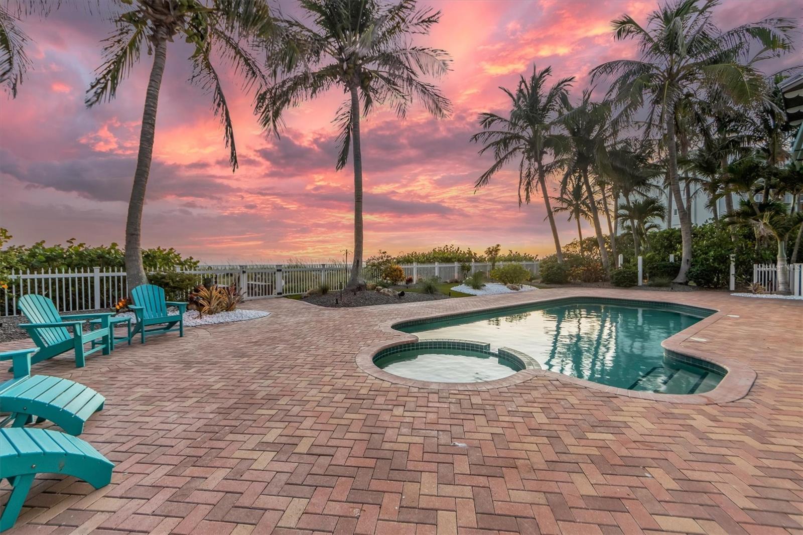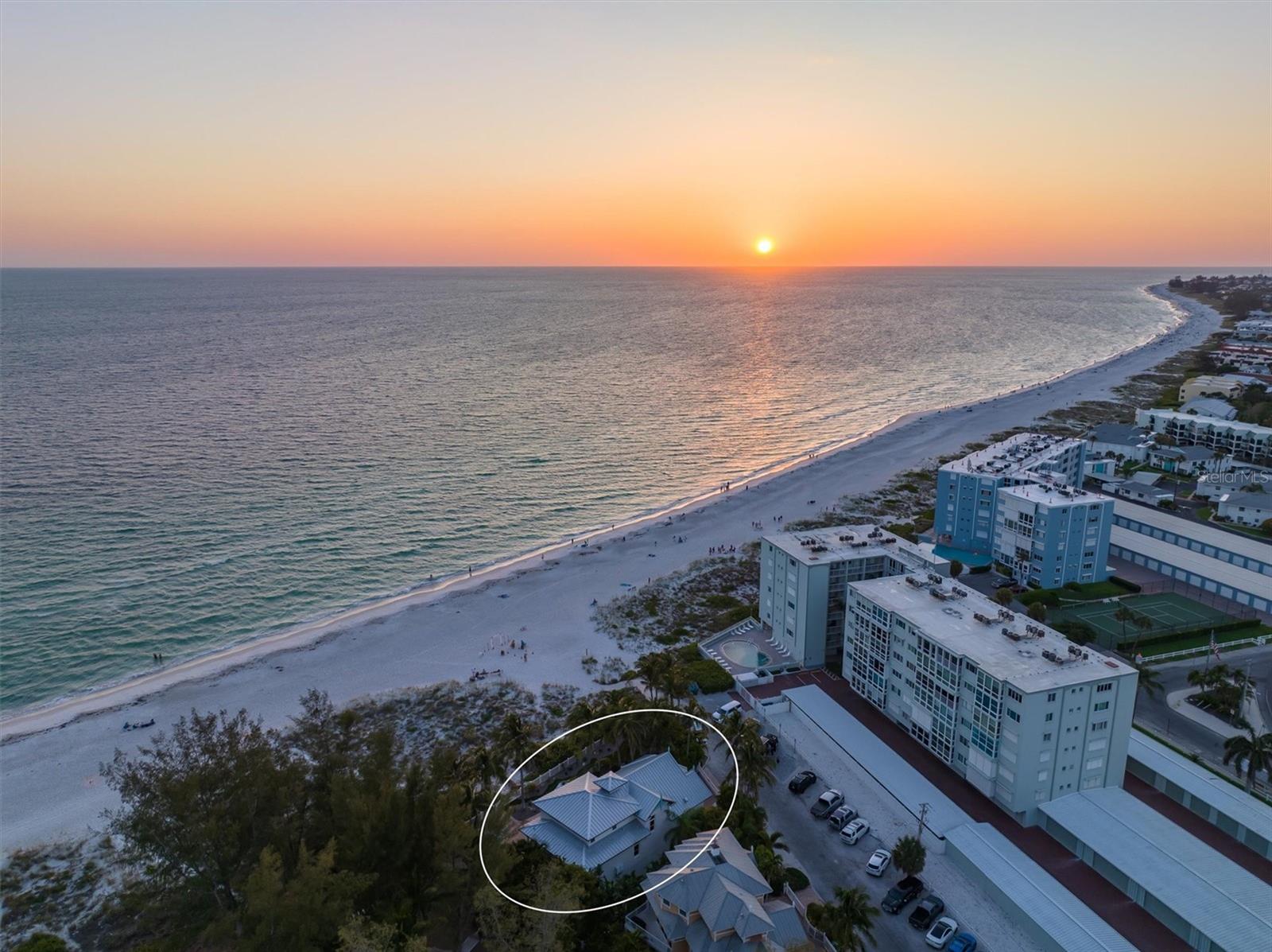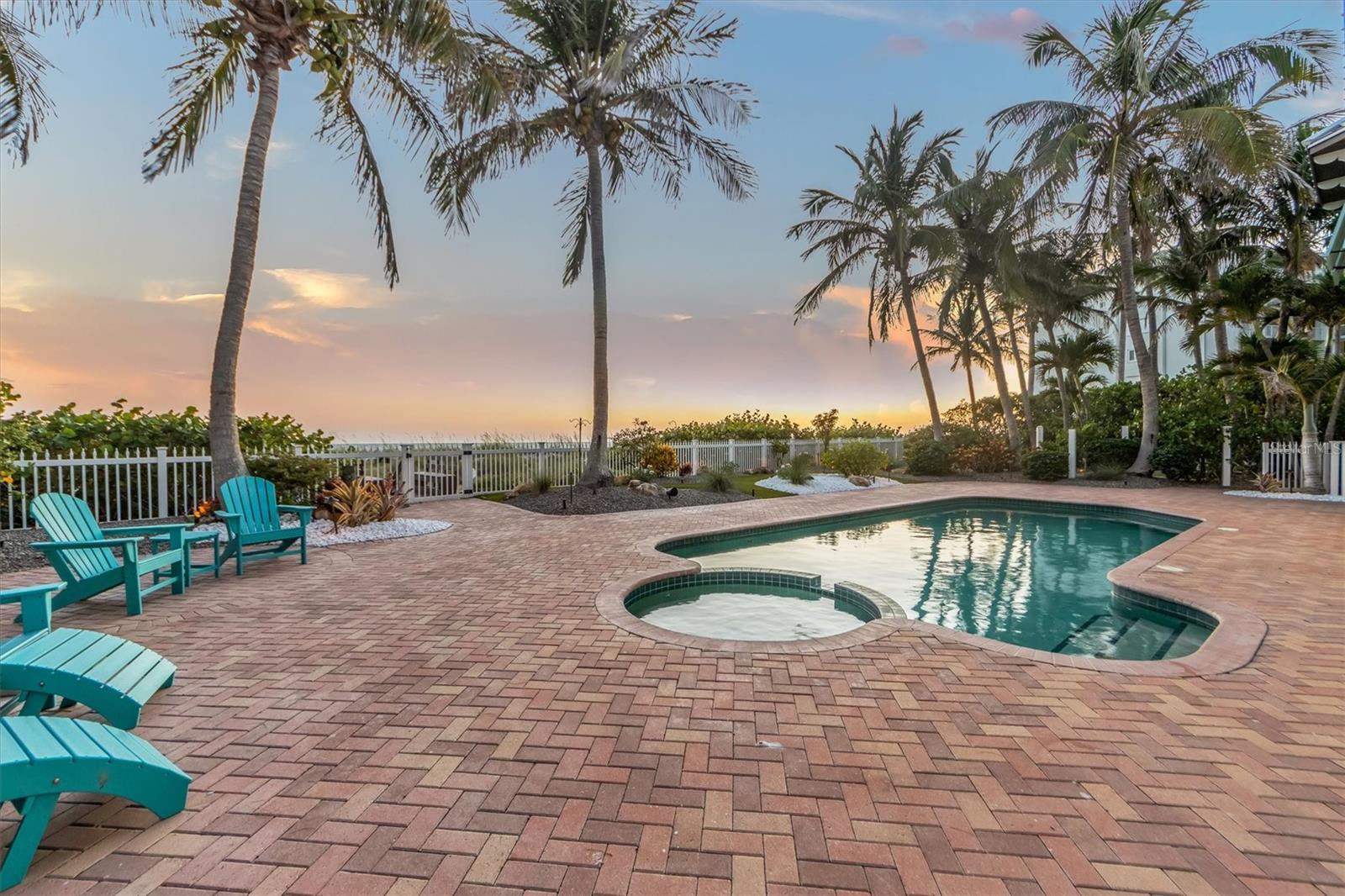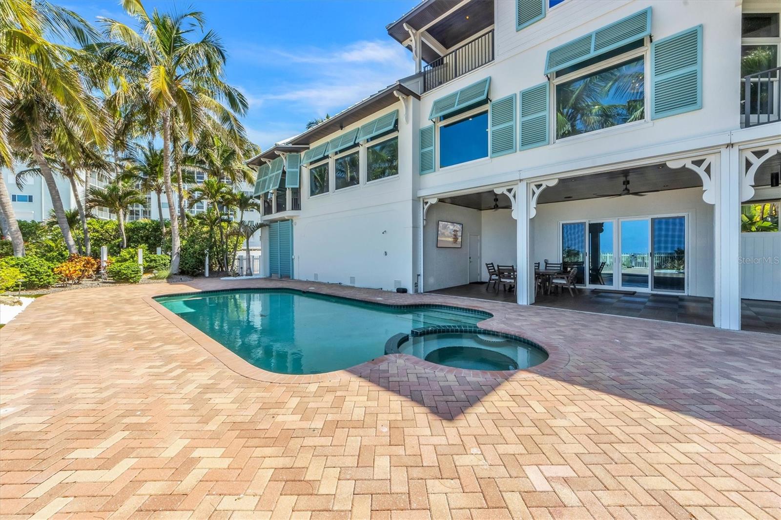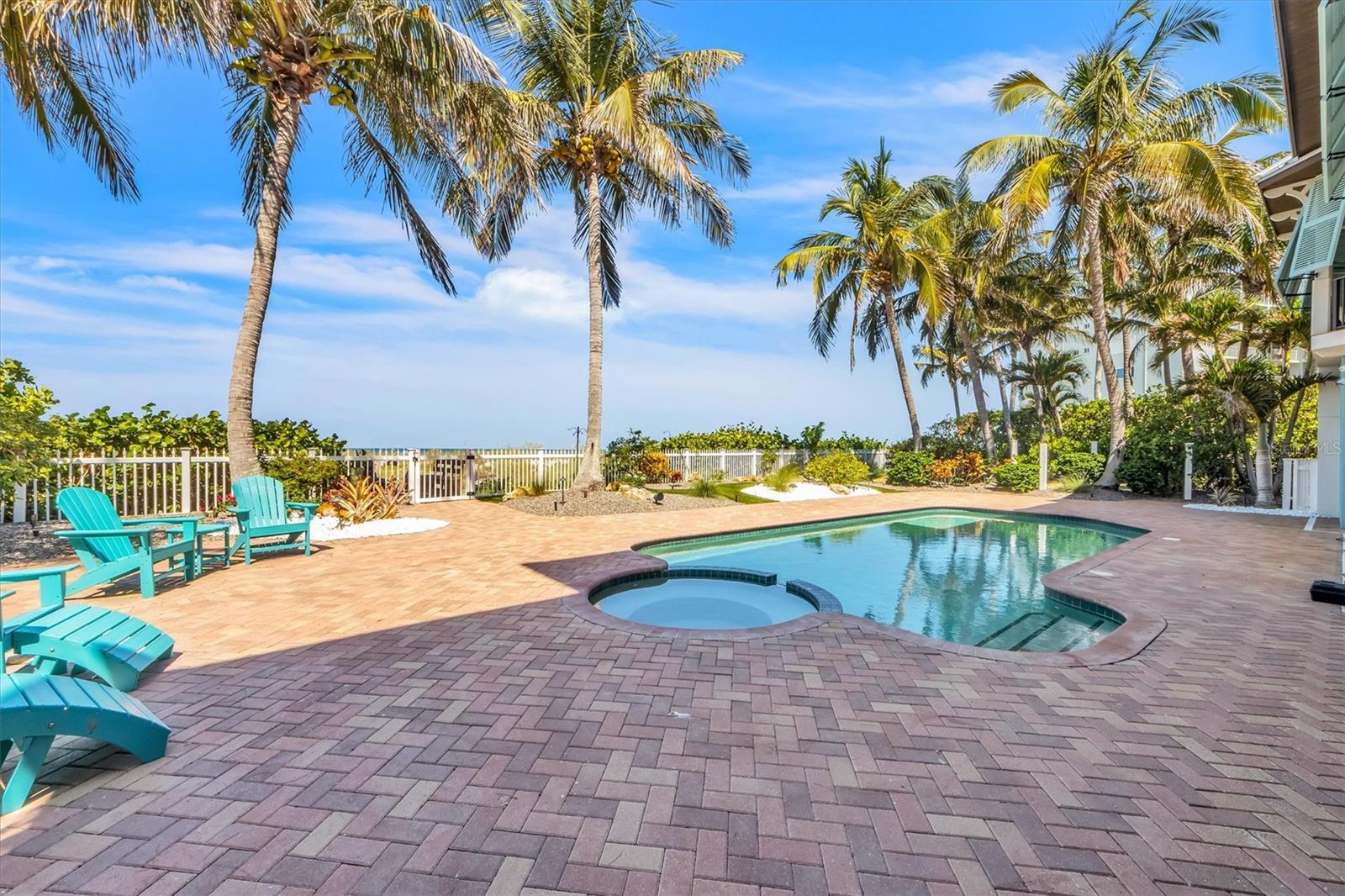 LUXURY GULF FRONT!!! Welcome to this Beachfront Paradise like no other! This high-end coastal retreat offers the ultimate in beachfront living. Situated on a sprawling half-acre property, this haven offers 150 feet directly on the Gulf of Mexico beach with stunning views from almost every window! This three bedroom, three and a half elevated home offers the ultimate beachfront living experience, with instant access to the pristine shores of the Gulf of Mexico in your backyard! This exquisite home was built in 2003, the architectural design lends to the Transitional Coastal West Indies-Style Beach Home with the perfect blend of elegance and comfort. Numerous outdoor living areas, covered porches, and an abundance of windows and sliding glass doors with panoramic views of the white sandy beach and spectacular sunsets. Tongue and groove ceilings, Bahama shutters, and a metal roof complete the beach vibe, creating the perfect coastal retreat. Step inside and be captivated by the open floorplan that offers panoramic beachfront views and is appointed with luxurious features, including an elevator, solid oak hardwood floors, and custom draperies complete with Roman shades. The kitchen is a chef's delight, with extensive solid wood inset cabinetry, natural stone countertops, and top-of-the-line appliances including a built-in panel refrigerator and Thermador Professional range with statement range hood. Relax and enjoy the sound system throughout the home so you can enjoy your favorite melodies inside or outside on the covered lanai. The luxurious primary suite on the main floor is accessible through gorgeous solid wood custom hand-carved doors. As you enter you will be delighted by the large window overlooking the white sandy beach along with French doors that lead to a private balcony that overlooks the pristine blue waters. Sit and relax outside as you will surely enjoy the gulf breezes and sunsets year-round. In the primary bathroom, you are sure to take delight in the indoor and outdoor showers. Upstairs are two ensuite guest rooms that offer additional comfort, with several covered balconies to enjoy the soothing sounds of the ocean. Each suite has been carefully designed with coordinating colors and design features that are sure to entice all the senses. The outdoor space is equally impressive, with a sizable, heated saltwater pool and spa, herringbone pavers surrounding the pool, and a beautifully landscaped backyard with lush gardens that are lined with palm trees and tropical flowers. There is low-maintenance artificial grass and a long-lasting rockscape design throughout. Hurricane roll-down shutters provide added security and peace of mind. At night the house transforms into a true retreat with extensive outdoor lighting. Located in the heart of Holmes Beach in Anna Maria Island you are in walking distance to so many shops and restaurants to enjoy. Don't miss this rare opportunity to own a piece of beachfront paradise. Schedule your private showing today!