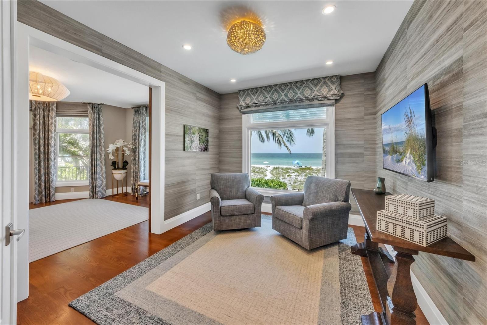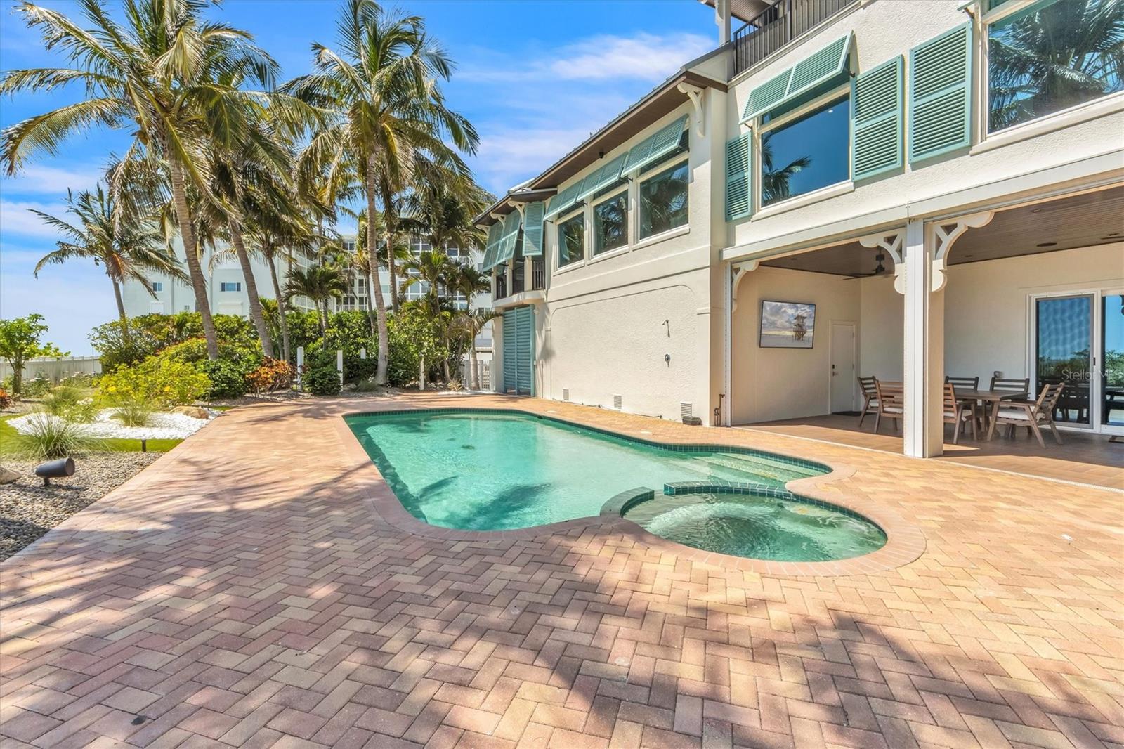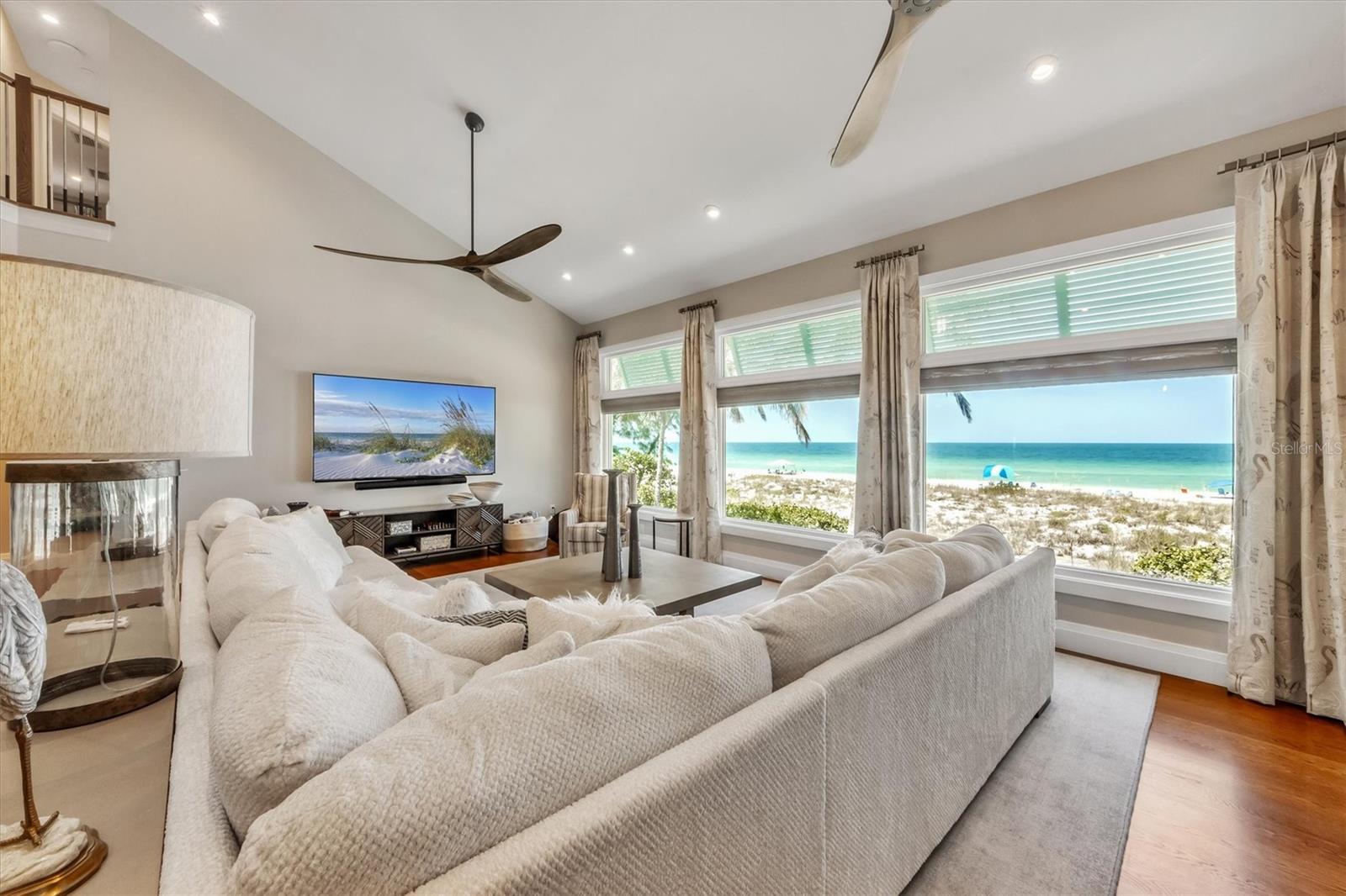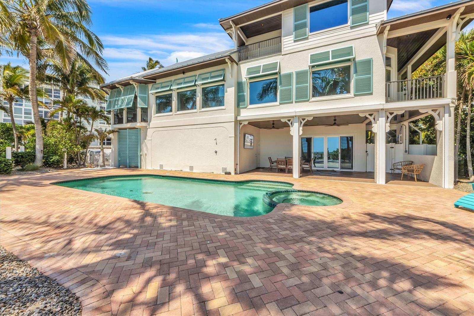 LUXURY GULF FRONT!!! Welcome to this Beachfront Paradise like no other! This high-end coastal retreat offers the ultimate in beachfront living. Situated on a sprawling half-acre property, this haven offers 150 feet directly on the Gulf of Mexico beach with stunning views from almost every window! This three bedroom, three and a half elevated home offers the ultimate beachfront living experience, with instant access to the pristine shores of the Gulf of Mexico in your backyard! This exquisite home was built in 2003, the architectural design lends to the Transitional Coastal West Indies-Style Beach Home with the perfect blend of elegance and comfort. Numerous outdoor living areas, covered porches, and an abundance of windows and sliding glass doors with panoramic views of the white sandy beach and spectacular sunsets. Tongue and groove ceilings, Bahama shutters, and a metal roof complete the beach vibe, creating the perfect coastal retreat. Step inside and be captivated by the open floorplan that offers panoramic beachfront views and is appointed with luxurious features, including an elevator, solid oak hardwood floors, and custom draperies complete with Roman shades. The kitchen is a chef's delight, with extensive solid wood inset cabinetry, natural stone countertops, and top-of-the-line appliances including a built-in panel refrigerator and Thermador Professional range with statement range hood. Relax and enjoy the sound system throughout the home so you can enjoy your favorite melodies inside or outside on the covered lanai. The luxurious primary suite on the main floor is accessible through gorgeous solid wood custom hand-carved doors. As you enter you will be delighted by the large window overlooking the white sandy beach along with French doors that lead to a private balcony that overlooks the pristine blue waters. Sit and relax outside as you will surely enjoy the gulf breezes and sunsets year-round. In the primary bathroom, you are sure to take delight in the indoor and outdoor showers. Upstairs are two ensuite guest rooms that offer additional comfort, with several covered balconies to enjoy the soothing sounds of the ocean. Each suite has been carefully designed with coordinating colors and design features that are sure to entice all the senses. The outdoor space is equally impressive, with a sizable, heated saltwater pool and spa, herringbone pavers surrounding the pool, and a beautifully landscaped backyard with lush gardens that are lined with palm trees and tropical flowers. There is low-maintenance artificial grass and a long-lasting rockscape design throughout. Hurricane roll-down shutters provide added security and peace of mind. At night the house transforms into a true retreat with extensive outdoor lighting. Located in the heart of Holmes Beach in Anna Maria Island you are in walking distance to so many shops and restaurants to enjoy. Don't miss this rare opportunity to own a piece of beachfront paradise. Schedule your private showing today!