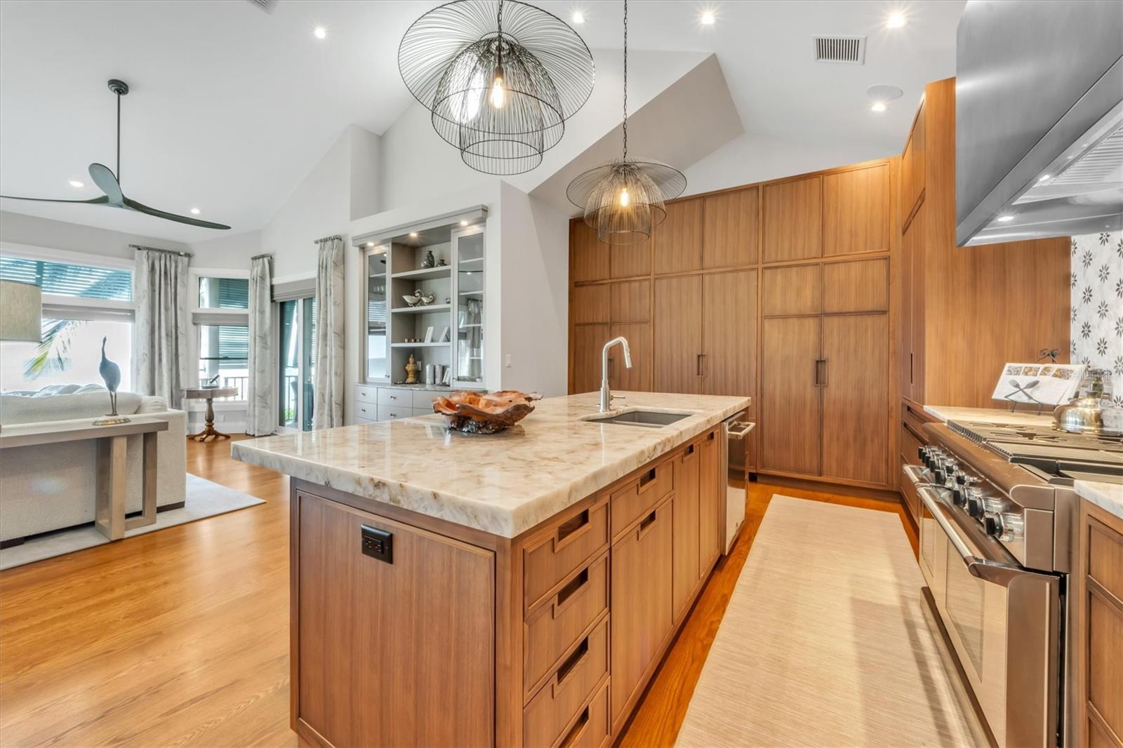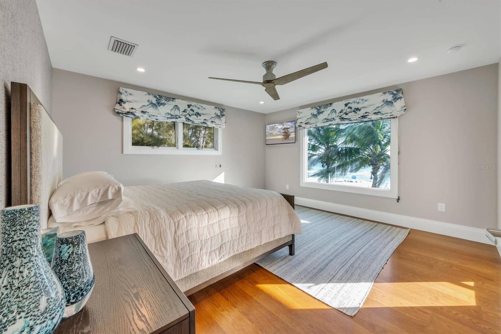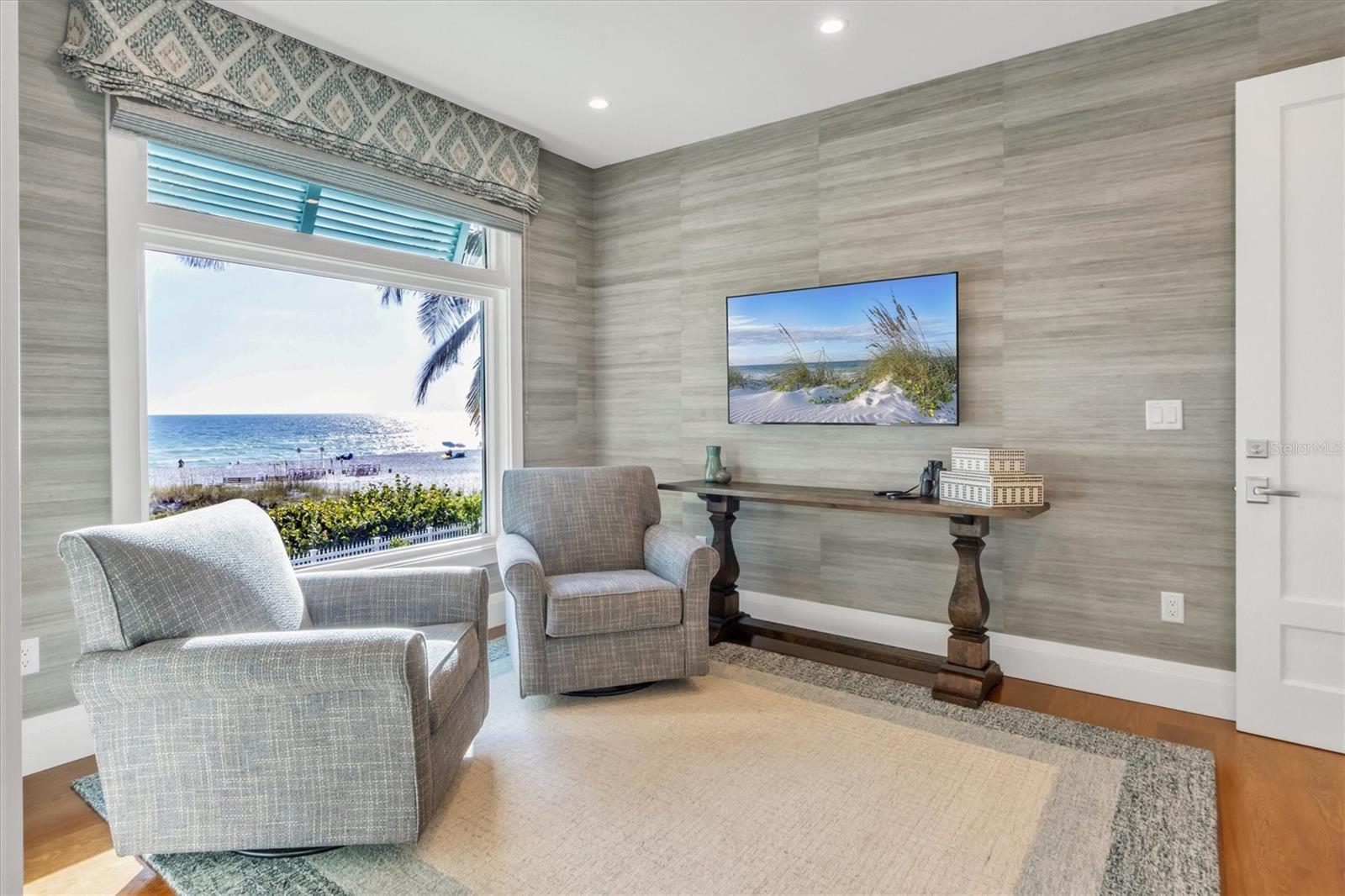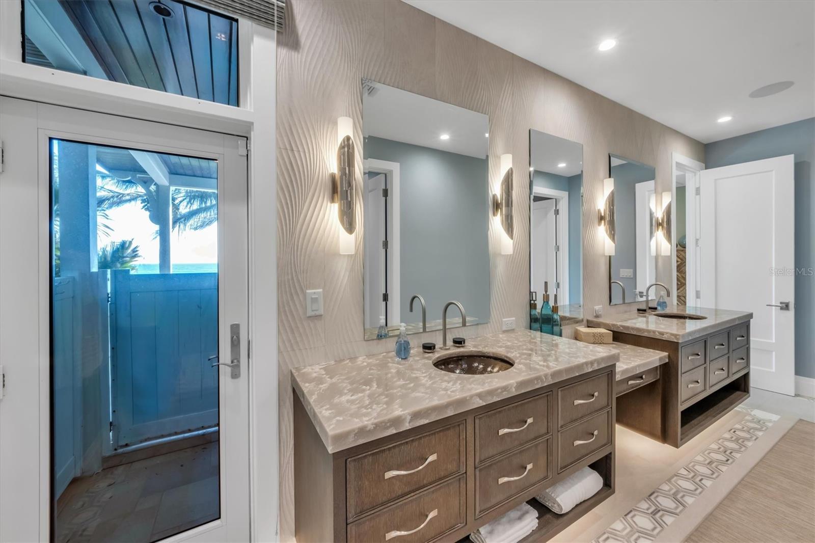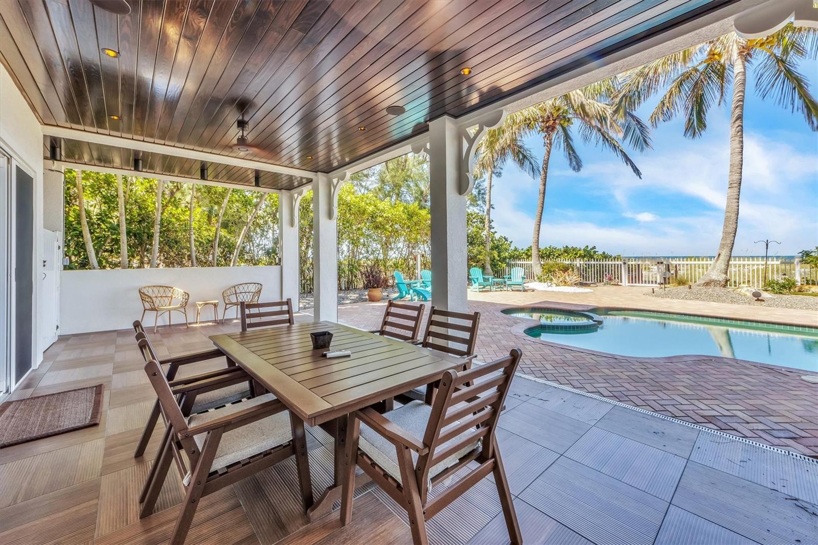 LUXURY GULF FRONT!!! Welcome to this Beachfront Paradise like no other! This high-end coastal retreat offers the ultimate in beachfront living. Situated on a sprawling half-acre property, this haven offers 150 feet directly on the Gulf of Mexico beach with stunning views from almost every window! This three bedroom, three and a half elevated home offers the ultimate beachfront living experience, with instant access to the pristine shores of the Gulf of Mexico in your backyard! This exquisite home was built in 2003, the architectural design lends to the Transitional Coastal West Indies-Style Beach Home with the perfect blend of elegance and comfort. Numerous outdoor living areas, covered porches, and an abundance of windows and sliding glass doors with panoramic views of the white sandy beach and spectacular sunsets. Tongue and groove ceilings, Bahama shutters, and a metal roof complete the beach vibe, creating the perfect coastal retreat. Step inside and be captivated by the open floorplan that offers panoramic beachfront views and is appointed with luxurious features, including an elevator, solid oak hardwood floors, and custom draperies complete with Roman shades. The kitchen is a chef's delight, with extensive solid wood inset cabinetry, natural stone countertops, and top-of-the-line appliances including a built-in panel refrigerator and Thermador Professional range with statement range hood. Relax and enjoy the sound system throughout the home so you can enjoy your favorite melodies inside or outside on the covered lanai. The luxurious primary suite on the main floor is accessible through gorgeous solid wood custom hand-carved doors. As you enter you will be delighted by the large window overlooking the white sandy beach along with French doors that lead to a private balcony that overlooks the pristine blue waters. Sit and relax outside as you will surely enjoy the gulf breezes and sunsets year-round. In the primary bathroom, you are sure to take delight in the indoor and outdoor showers. Upstairs are two ensuite guest rooms that offer additional comfort, with several covered balconies to enjoy the soothing sounds of the ocean. Each suite has been carefully designed with coordinating colors and design features that are sure to entice all the senses. The outdoor space is equally impressive, with a sizable, heated saltwater pool and spa, herringbone pavers surrounding the pool, and a beautifully landscaped backyard with lush gardens that are lined with palm trees and tropical flowers. There is low-maintenance artificial grass and a long-lasting rockscape design throughout. Hurricane roll-down shutters provide added security and peace of mind. At night the house transforms into a true retreat with extensive outdoor lighting. Located in the heart of Holmes Beach in Anna Maria Island you are in walking distance to so many shops and restaurants to enjoy. Don't miss this rare opportunity to own a piece of beachfront paradise. Schedule your private showing today!