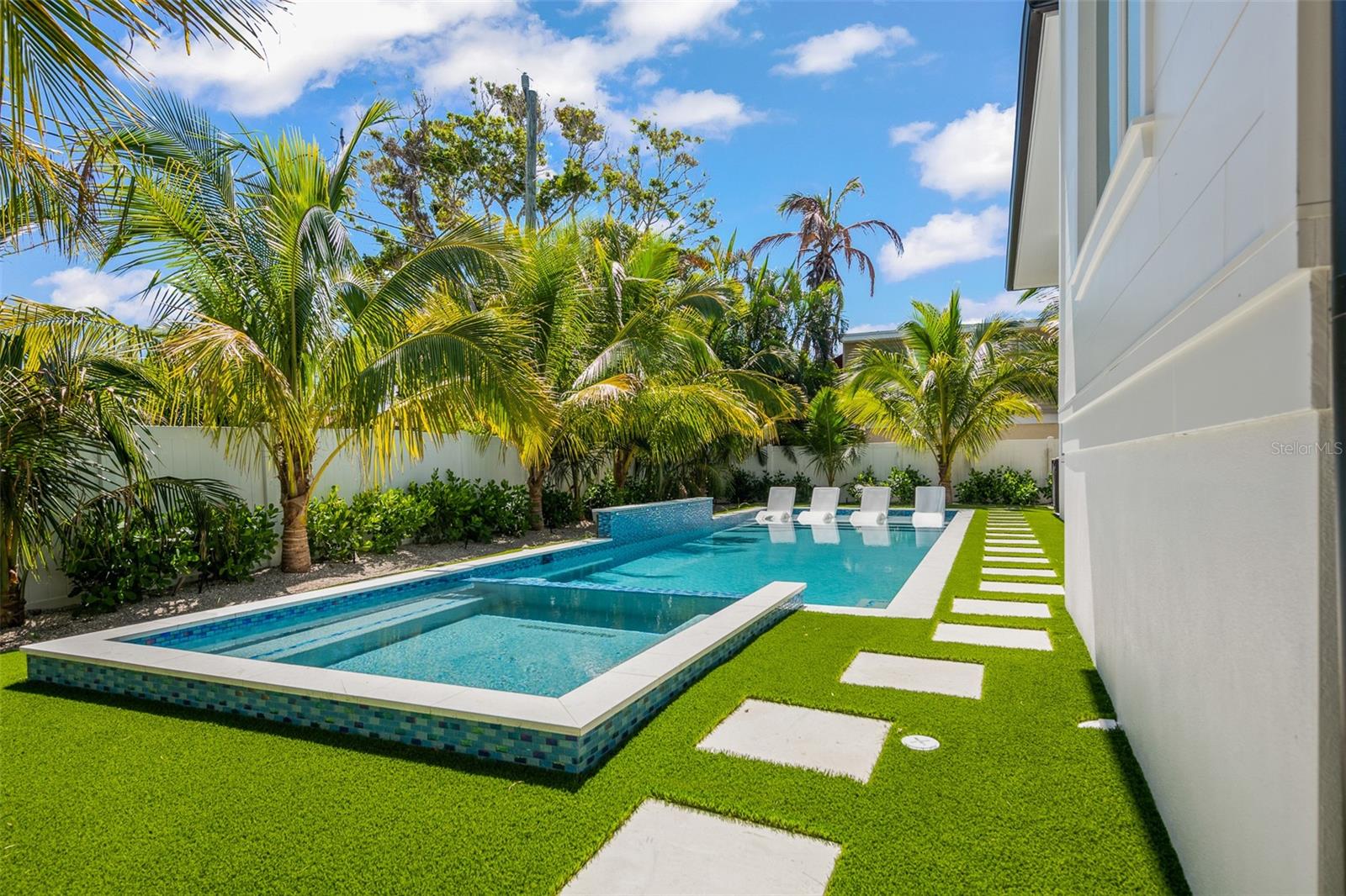 This exquisite 4-bedroom, 4.5-bathroom luxury beach house, completed in 2023 and nestled just one block away from the pristine beaches and crystal blue waters of Bradenton Beach on Anna Maria Island, is now available. This custom-built home is a masterpiece of modern design and craftsmanship, offering an unparalleled living experience in one of Florida’s most sought-after coastal destinations. This home spares no expense with stylish finishes throughout. Custom solid cabinets and built-in high-end appliances grace the kitchen, which is complemented by elegant quartz countertops. Vaulted ceilings and custom wall and ceiling trim work add to the home's refined ambiance. Every corner of this house is thoughtfully designed with designer light fixtures, decor, and furnishings that create a harmonious and inviting living space. Enjoy peace of mind with hurricane impact windows and doors, ensuring safety and durability. The huge master bedroom features an oversized walk-in closet and a luxurious ensuite bathroom, providing a private retreat within the home. There are several living areas perfect for relaxation and entertaining, both indoors and outdoors. The oasis backyard boasts a beautiful pool and spa surrounded by tropical landscaping, creating a serene environment for enjoying Florida's sunny weather. Additionally, the home includes a game room and a small putting green, enhancing your entertainment options. The highlight of this stunning home is the rooftop deck, offering panoramic views of spectacular sunsets over the Gulf of Mexico. This space is perfect for evening gatherings or a quiet moment of reflection. With the beach just a block away, you can indulge in sunbathing, swimming, and beachcombing at any time. This luxury beach house on Anna Maria Island offers not just a home, but a lifestyle. Whether you’re seeking a peaceful retreat, an active coastal adventure, or a beautiful place to host family and friends, this property provides it all. Embrace the ultimate in luxury living with breathtaking views, impeccable design, and an unbeatable location. Don't miss the opportunity to make this stunning home your own piece of paradise.