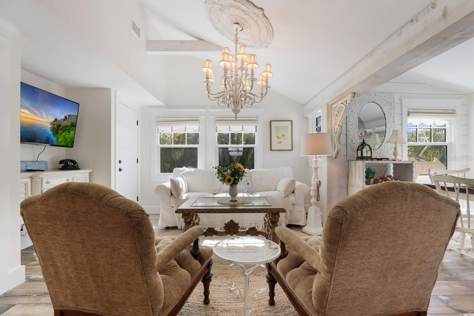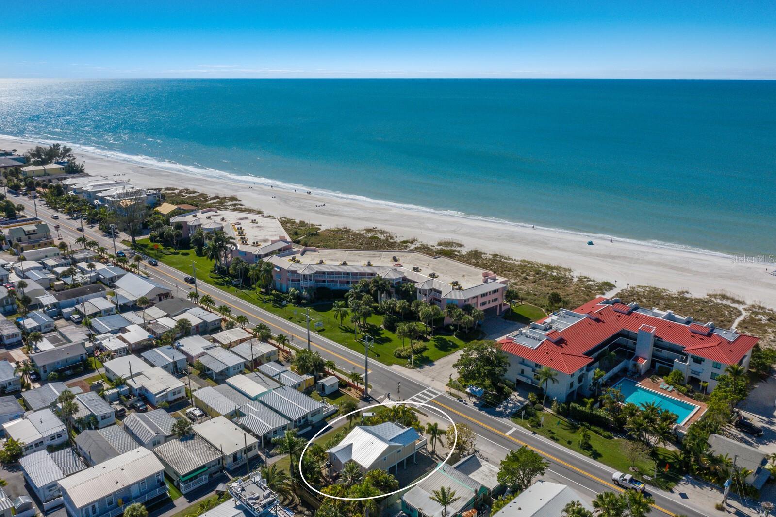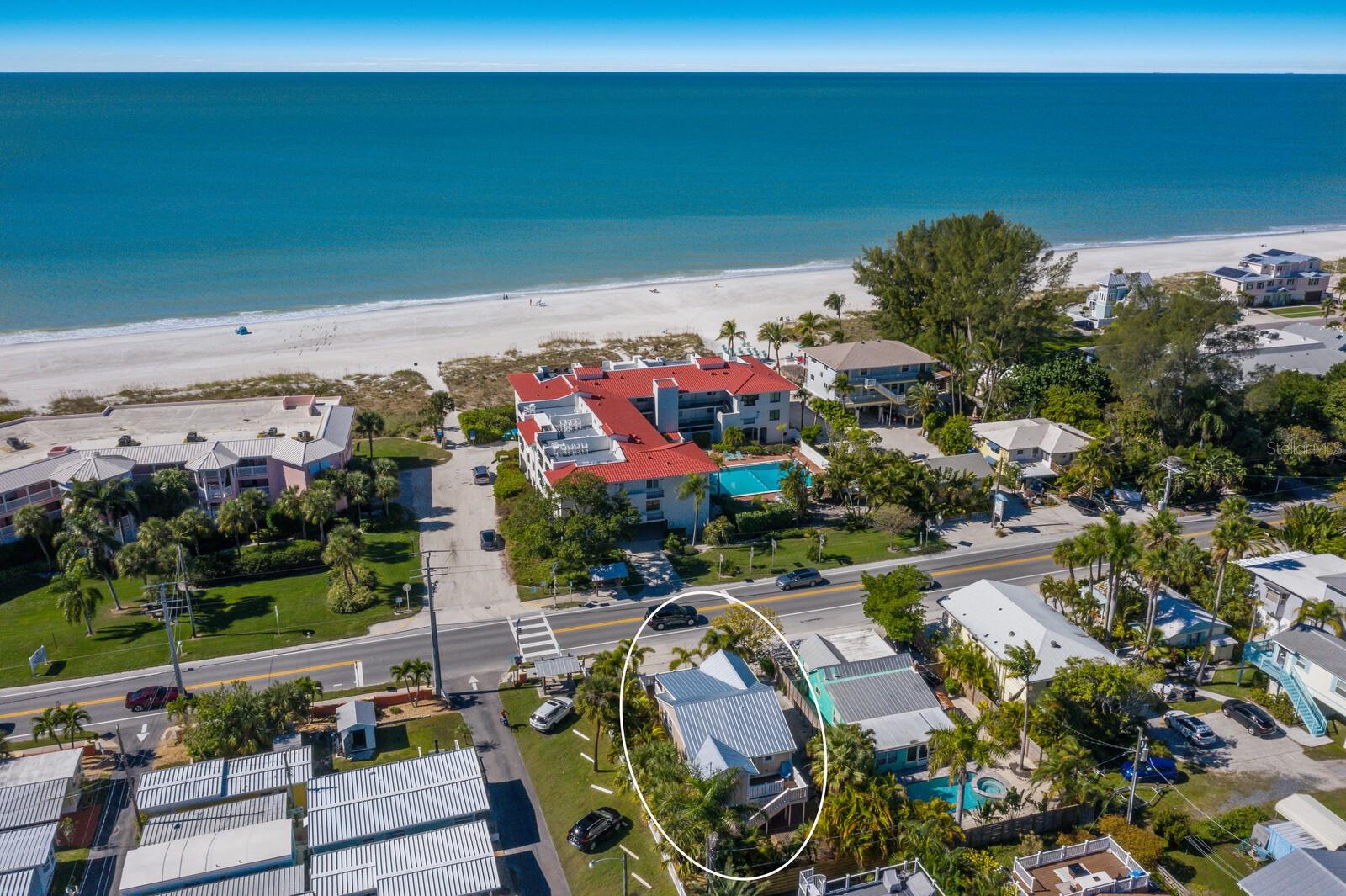 Step into the shabby chic charm of this exquisitely remodeled 2-bedroom, 2-bath cottage, just 100 feet from the shoreline of the Gulf of Mexico. This home beautifully blends historic charm with modern luxury, featuring stunning floors, vintage touches, and beach chic trinkets that envelope this turnkey residence. Features include vaulted ceilings with wood beam accents, ship lap walls, custom window treatments and so much more. Elevated for breathtaking Gulf views from a spacious open front patio, the property also includes a spacious ground level patio, outdoor shower, and firepit area. With parking under the carport, additional driveway space, and a storage area with laundry facilities, convenience is paramount. The property is zoned for monthly rentals and bookings are in place offering a true turnkey package and there is room for a pool too! This home offers unmatched comfort, luxury, and location. Don’t miss the opportunity to own this exceptional piece of paradise on Anna Maria Island.