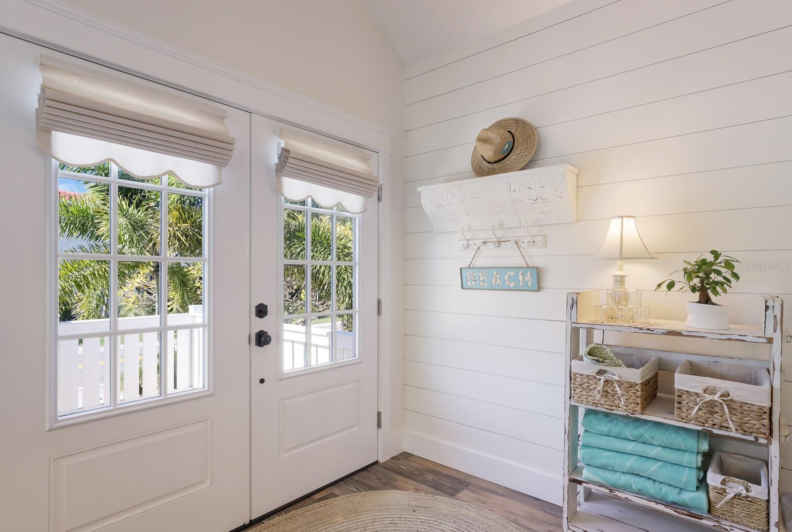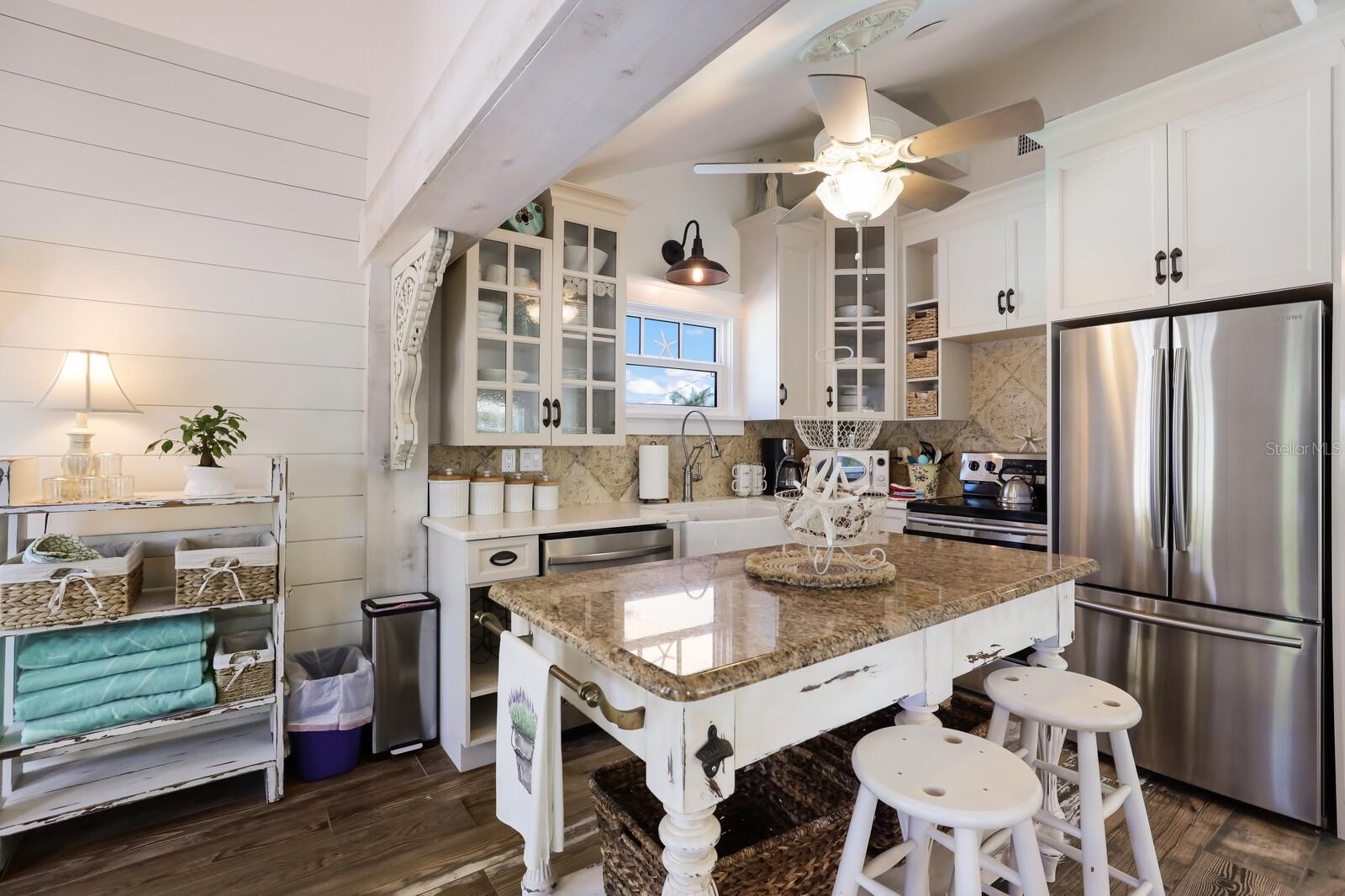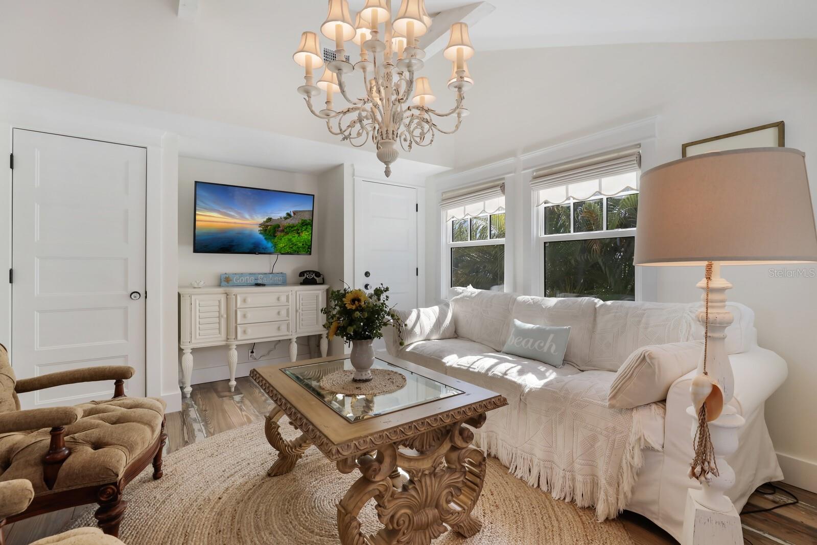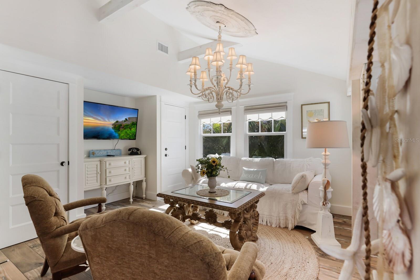 Step into the shabby chic charm of this exquisitely remodeled 2-bedroom, 2-bath cottage, just 100 feet from the shoreline of the Gulf of Mexico. This home beautifully blends historic charm with modern luxury, featuring stunning floors, vintage touches, and beach chic trinkets that envelope this turnkey residence. Features include vaulted ceilings with wood beam accents, ship lap walls, custom window treatments and so much more. Elevated for breathtaking Gulf views from a spacious open front patio, the property also includes a spacious ground level patio, outdoor shower, and firepit area. With parking under the carport, additional driveway space, and a storage area with laundry facilities, convenience is paramount. The property is zoned for monthly rentals and bookings are in place offering a true turnkey package and there is room for a pool too! This home offers unmatched comfort, luxury, and location. Don’t miss the opportunity to own this exceptional piece of paradise on Anna Maria Island.