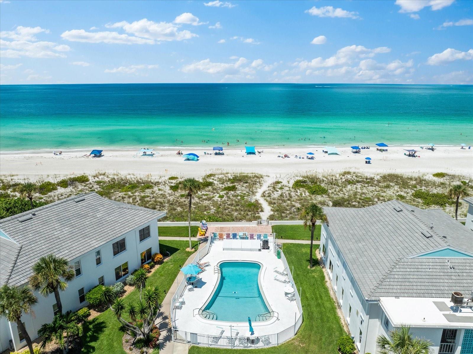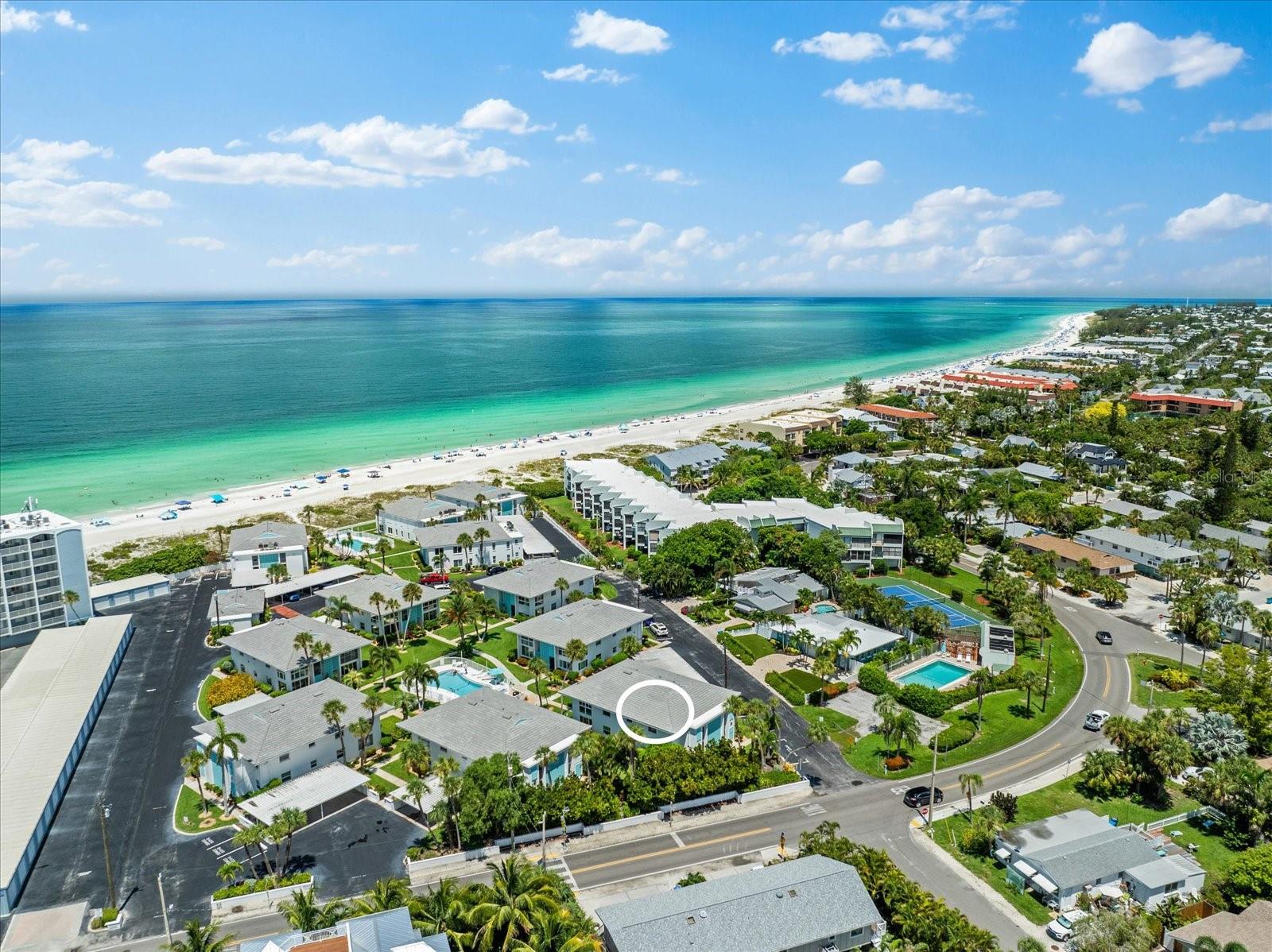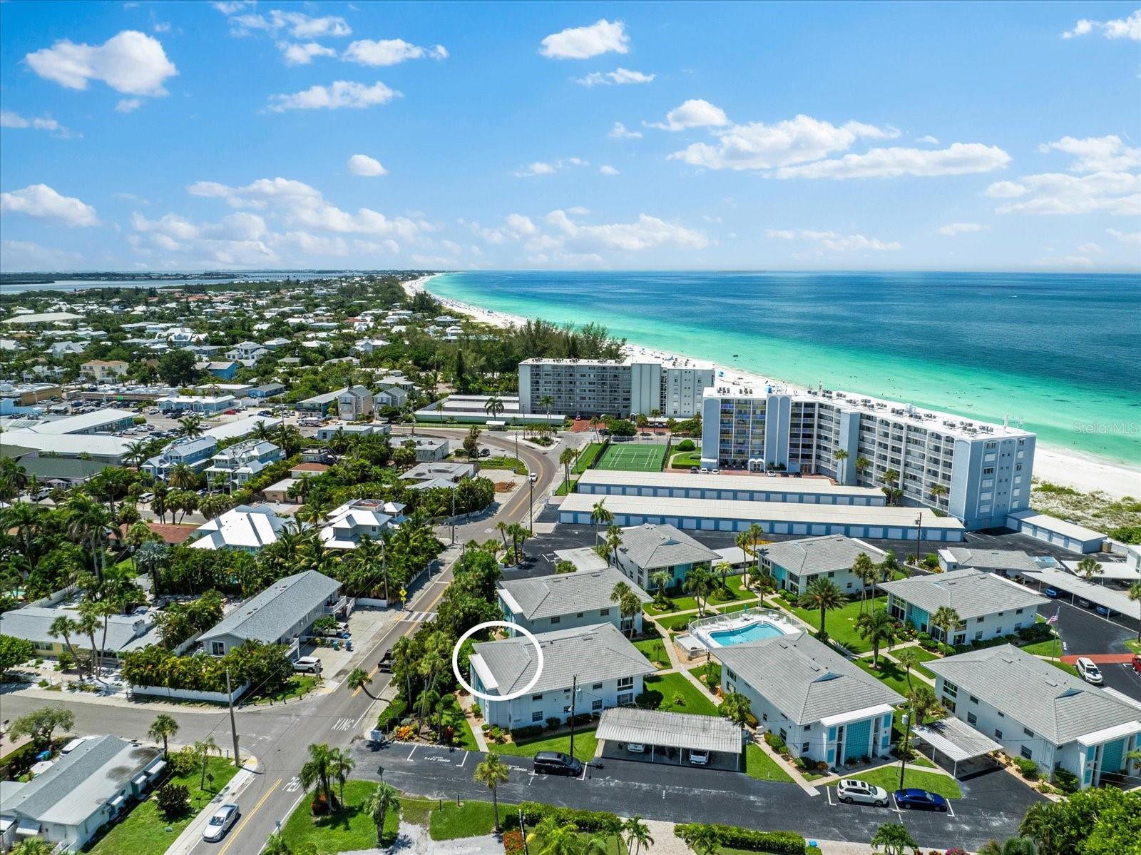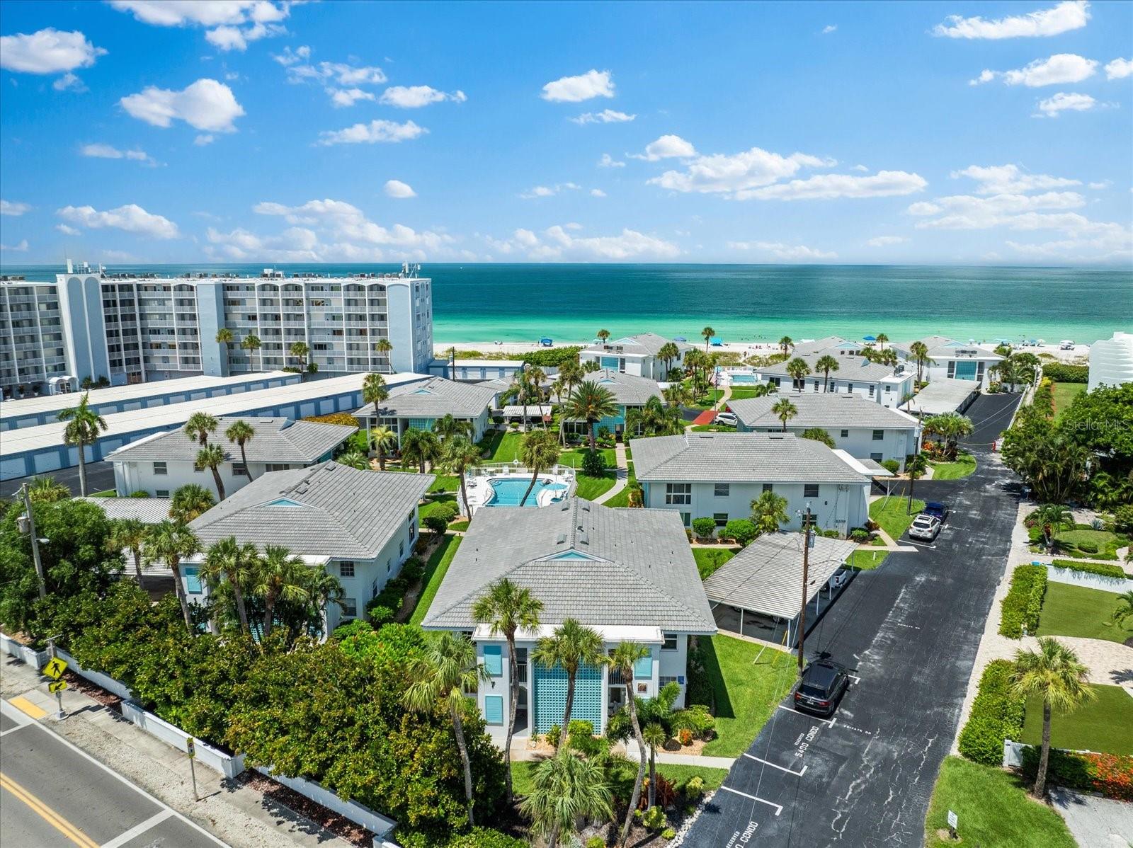 Seller may consider buyer concessions if made in an offer. TURN KEY completely renovated 1/1 unit with Gulf of Mexico Water Views! This second floor unit spared no expense on making this unit absolutely perfect for primary/seasonal residents, while also showing a proven track record of rental history as you can't beat the location on the island, and the private deeded beach access. Everything is new highlighted by the impact windows and HVAC system which both were installed in 2023. The furniture fits this beach unit perfectly it looks like the unit is staged! Outstanding use of square footage having the washer/dryer in the large bedroom walk in closet, and the high end finishes and fixtures make this beach front condo the perfect move in ready gulf front unit. 5400 Gulf is a 55+ community which allows owners to live the island/beach life like they've always dreamed off. Two beautiful community pools, shuffleboard, private deeded beach access, and no maintenance to worry about!