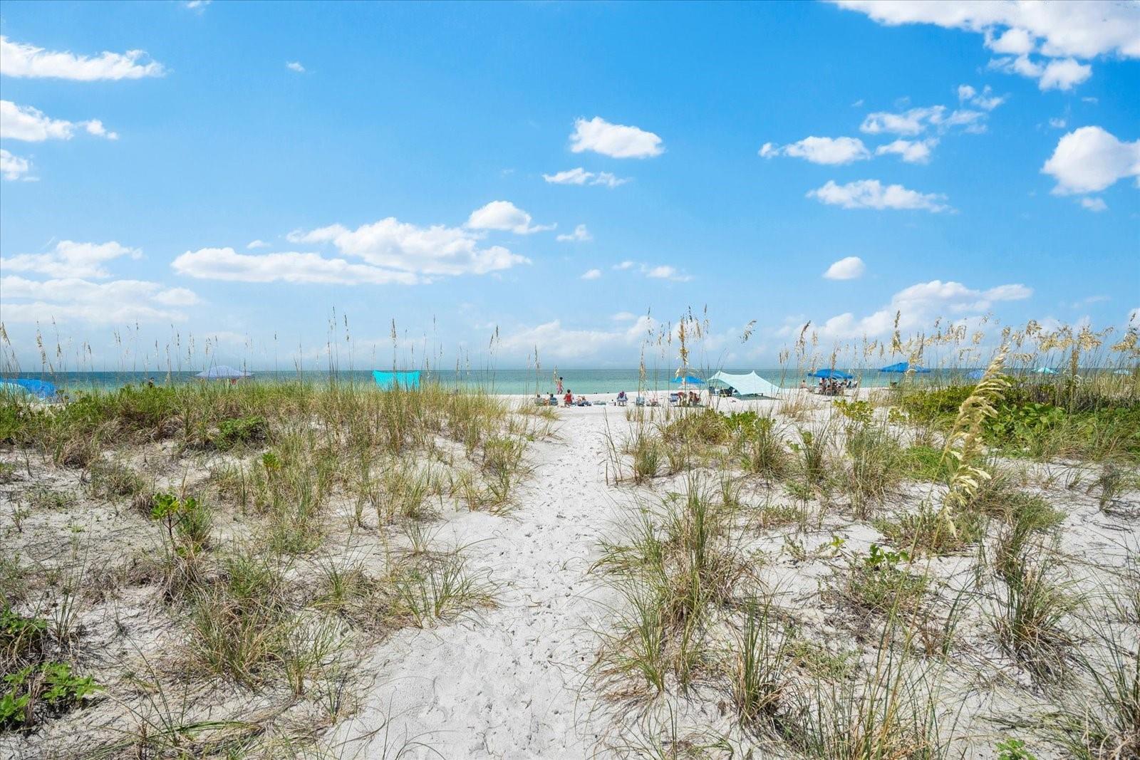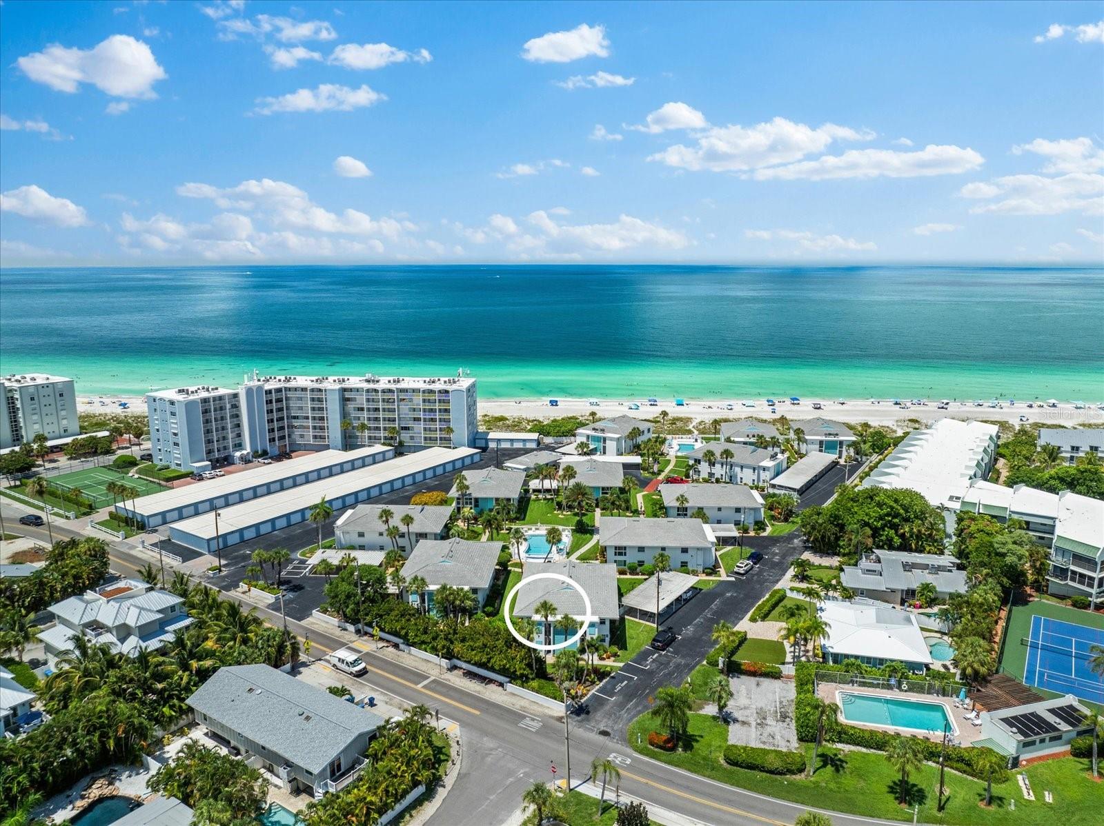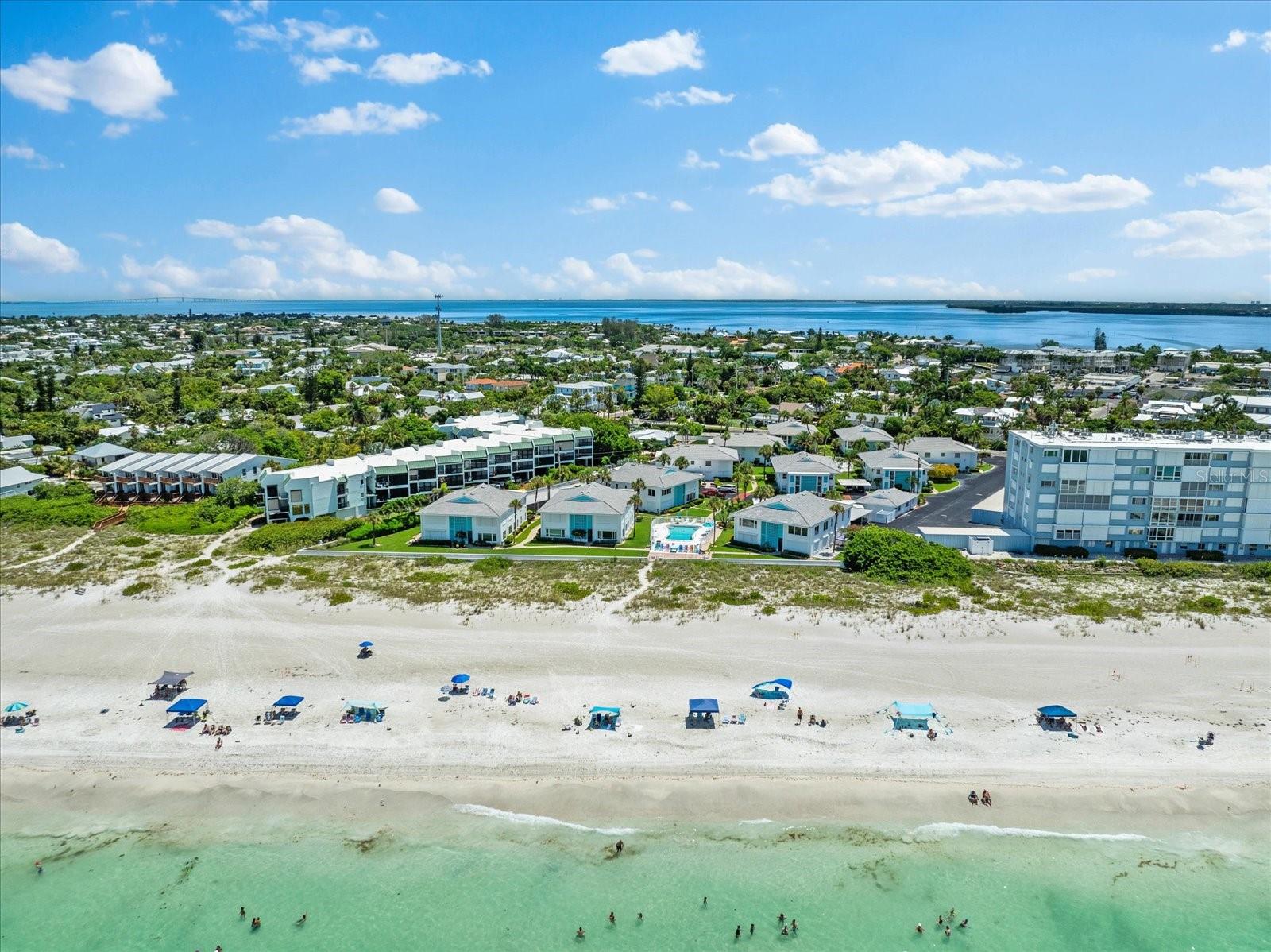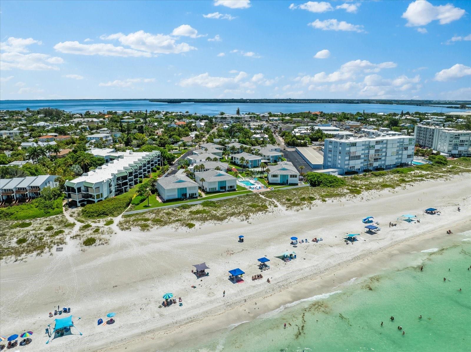 Seller may consider buyer concessions if made in an offer. TURN KEY completely renovated 1/1 unit with Gulf of Mexico Water Views! This second floor unit spared no expense on making this unit absolutely perfect for primary/seasonal residents, while also showing a proven track record of rental history as you can't beat the location on the island, and the private deeded beach access. Everything is new highlighted by the impact windows and HVAC system which both were installed in 2023. The furniture fits this beach unit perfectly it looks like the unit is staged! Outstanding use of square footage having the washer/dryer in the large bedroom walk in closet, and the high end finishes and fixtures make this beach front condo the perfect move in ready gulf front unit. 5400 Gulf is a 55+ community which allows owners to live the island/beach life like they've always dreamed off. Two beautiful community pools, shuffleboard, private deeded beach access, and no maintenance to worry about!