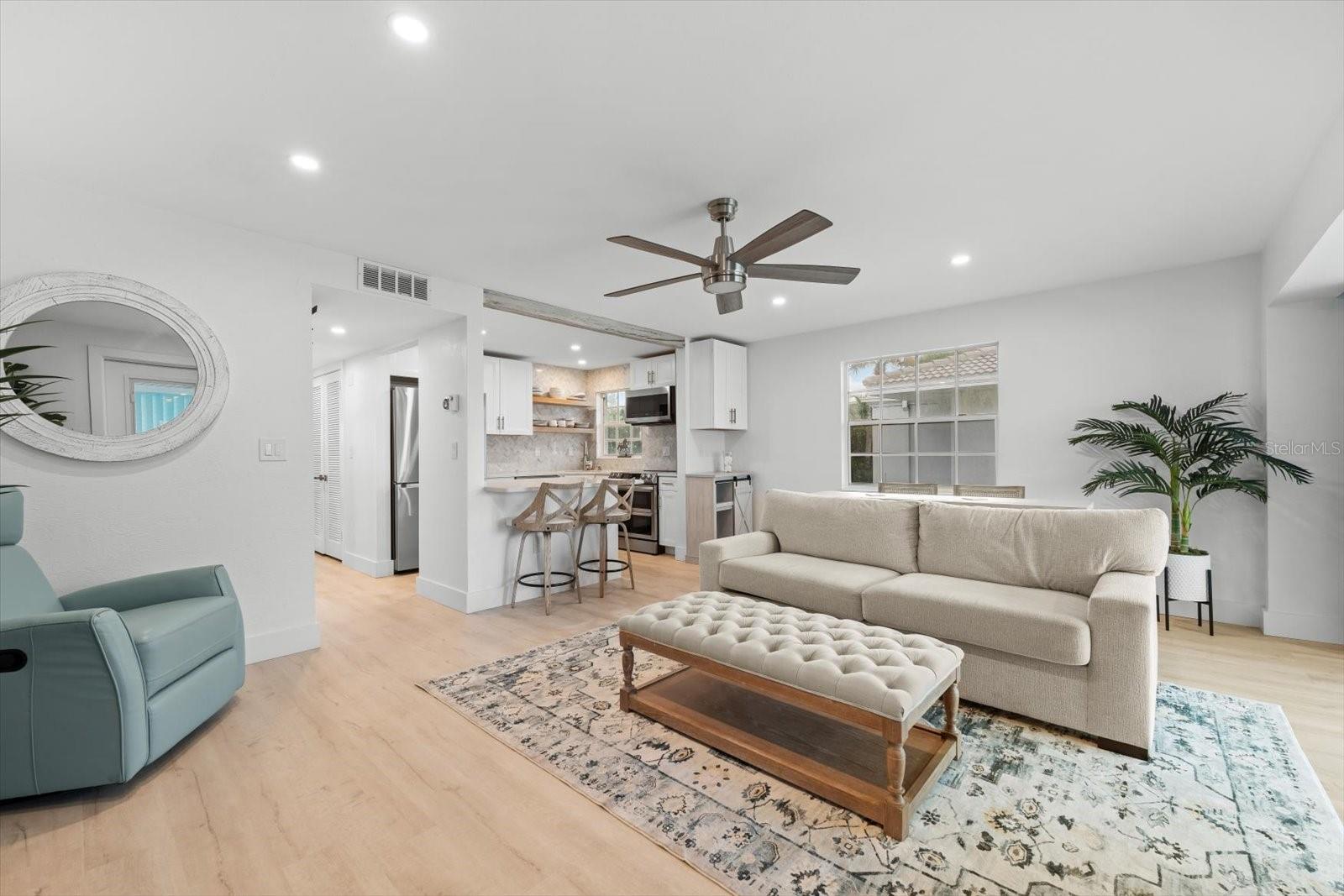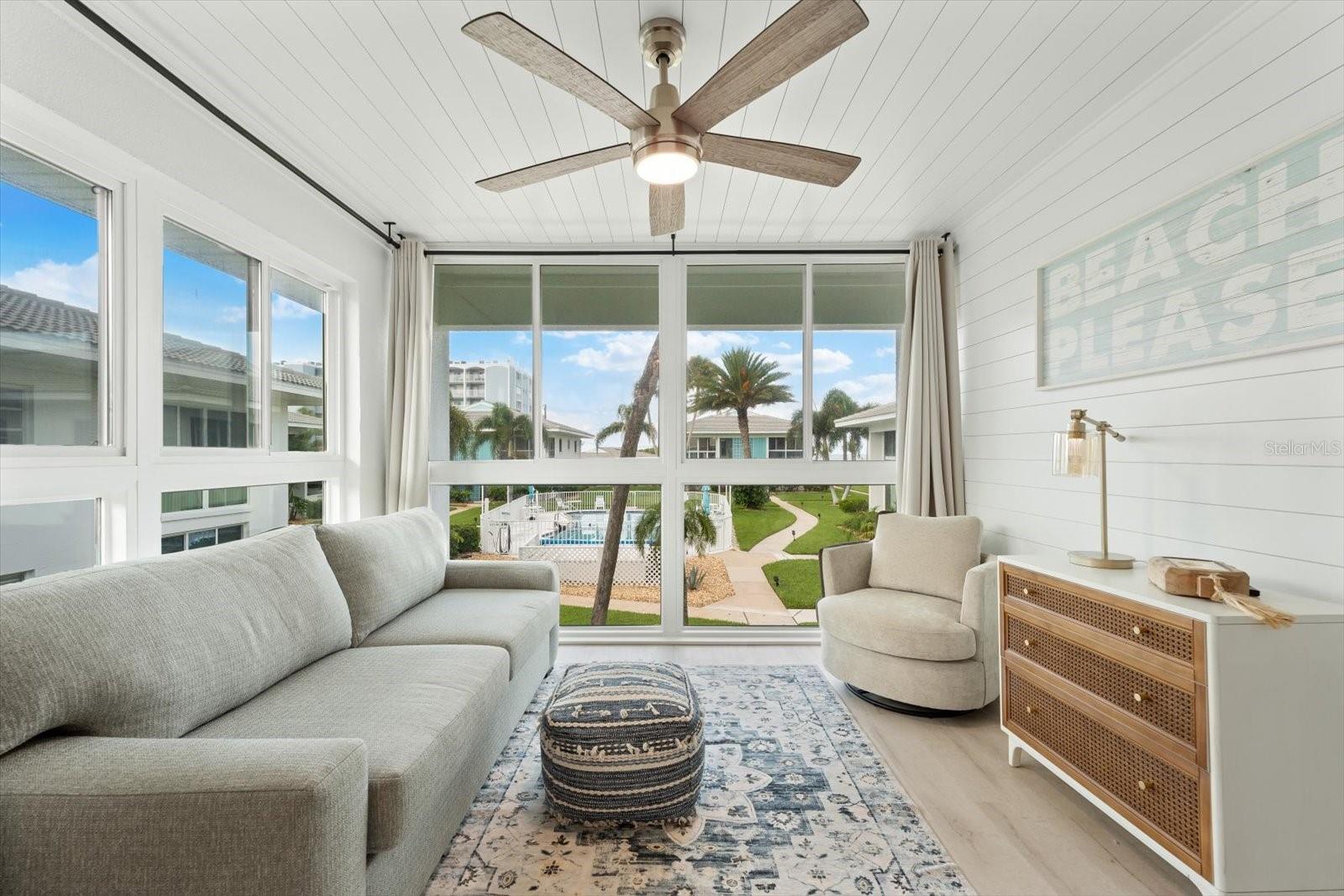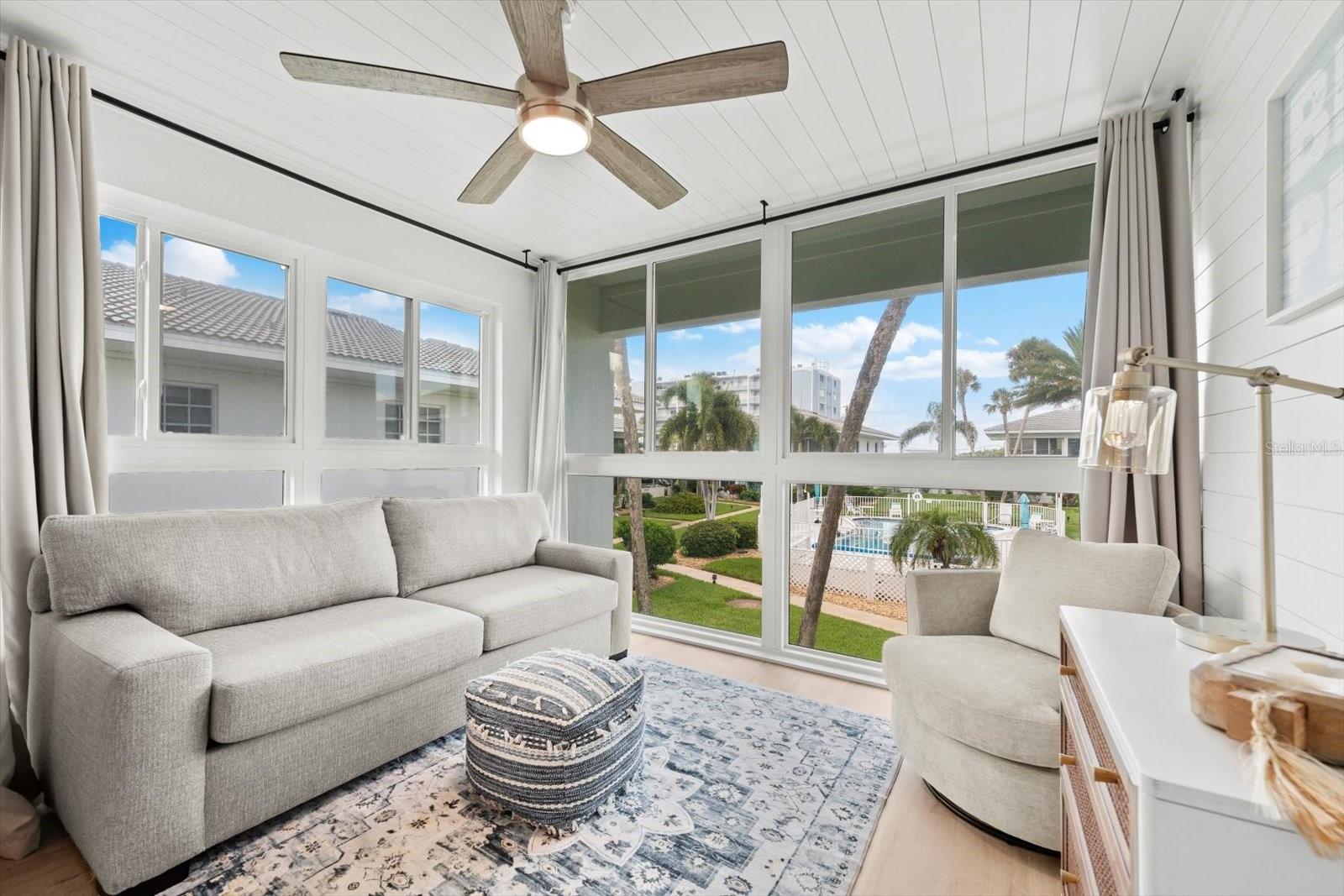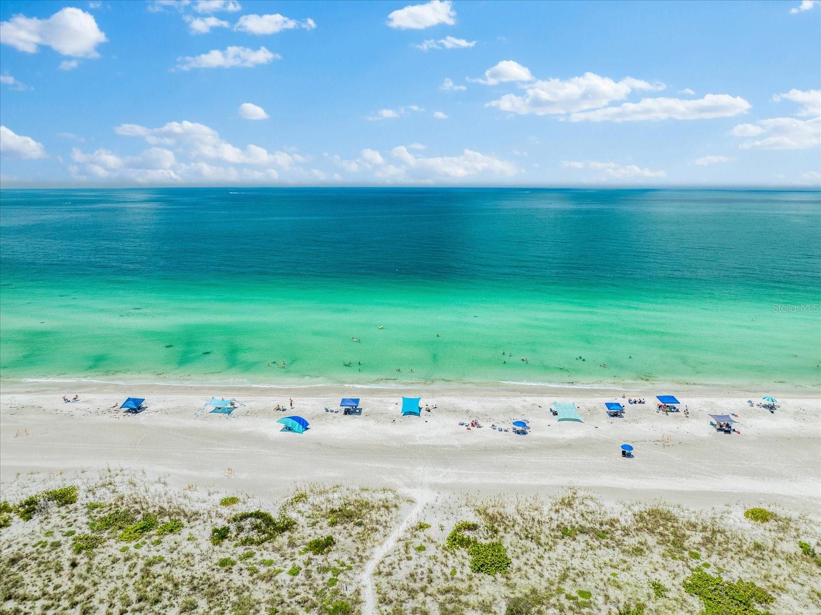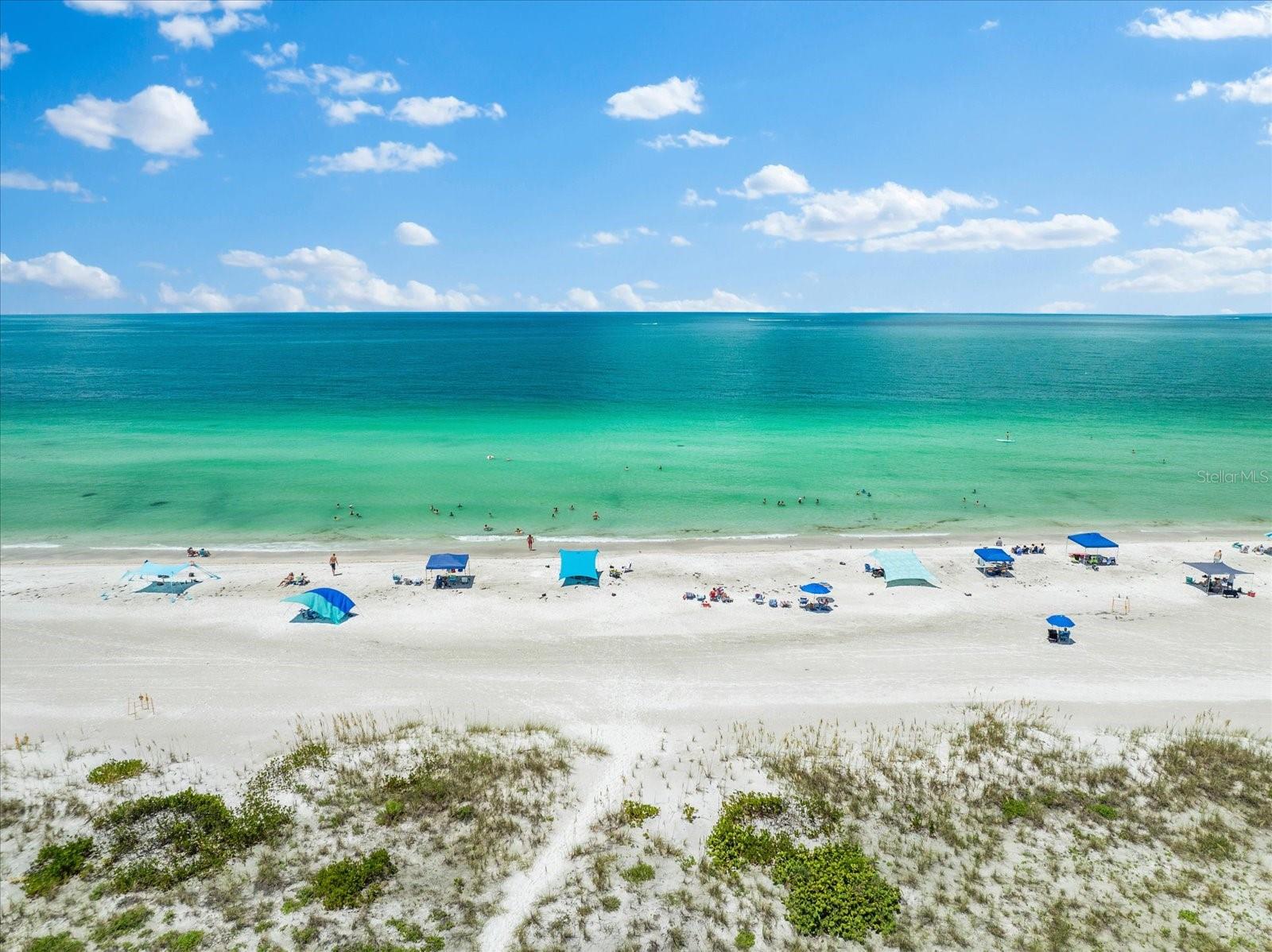 Seller may consider buyer concessions if made in an offer. TURN KEY completely renovated 1/1 unit with Gulf of Mexico Water Views! This second floor unit spared no expense on making this unit absolutely perfect for primary/seasonal residents, while also showing a proven track record of rental history as you can't beat the location on the island, and the private deeded beach access. Everything is new highlighted by the impact windows and HVAC system which both were installed in 2023. The furniture fits this beach unit perfectly it looks like the unit is staged! Outstanding use of square footage having the washer/dryer in the large bedroom walk in closet, and the high end finishes and fixtures make this beach front condo the perfect move in ready gulf front unit. 5400 Gulf is a 55+ community which allows owners to live the island/beach life like they've always dreamed off. Two beautiful community pools, shuffleboard, private deeded beach access, and no maintenance to worry about!