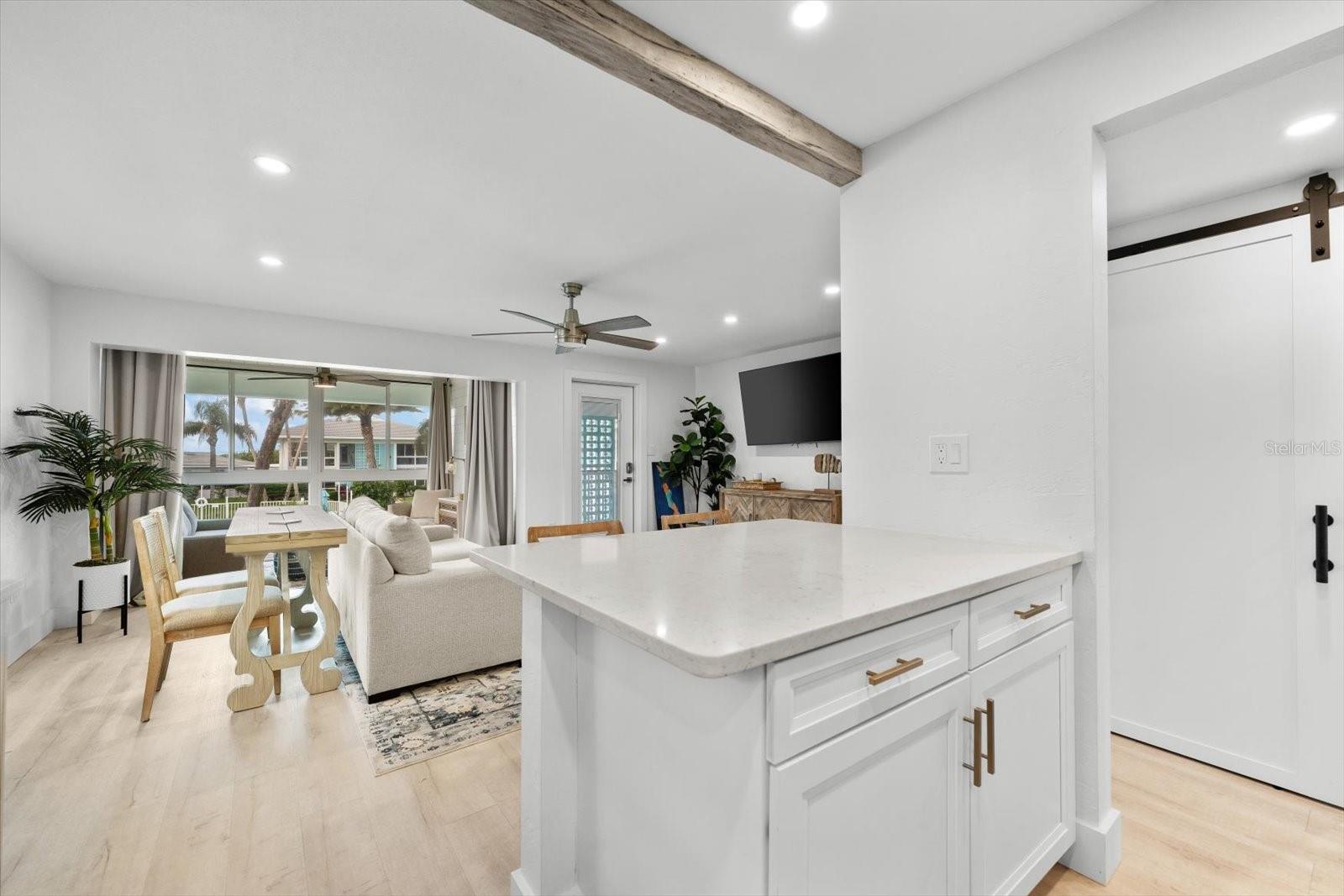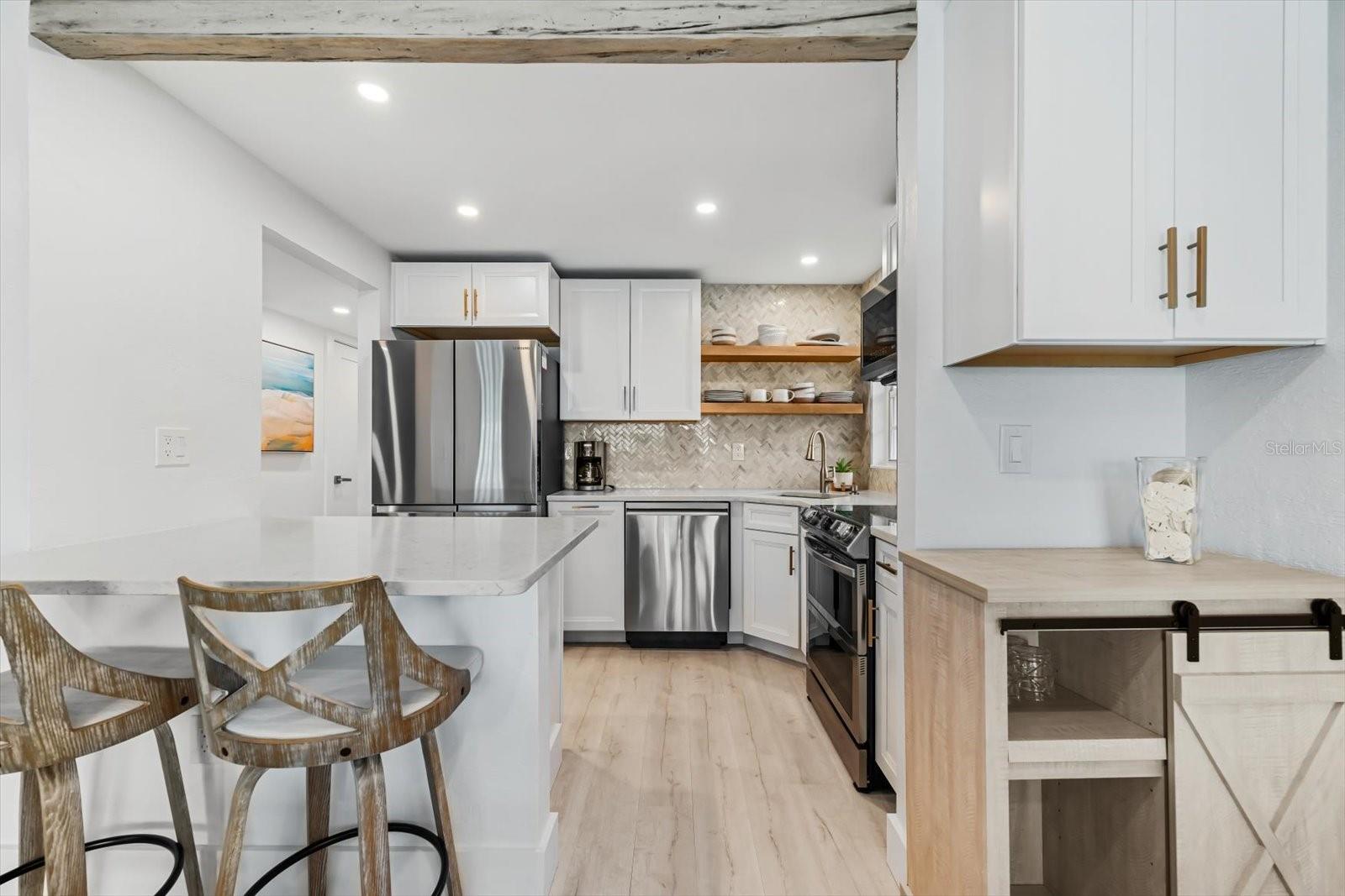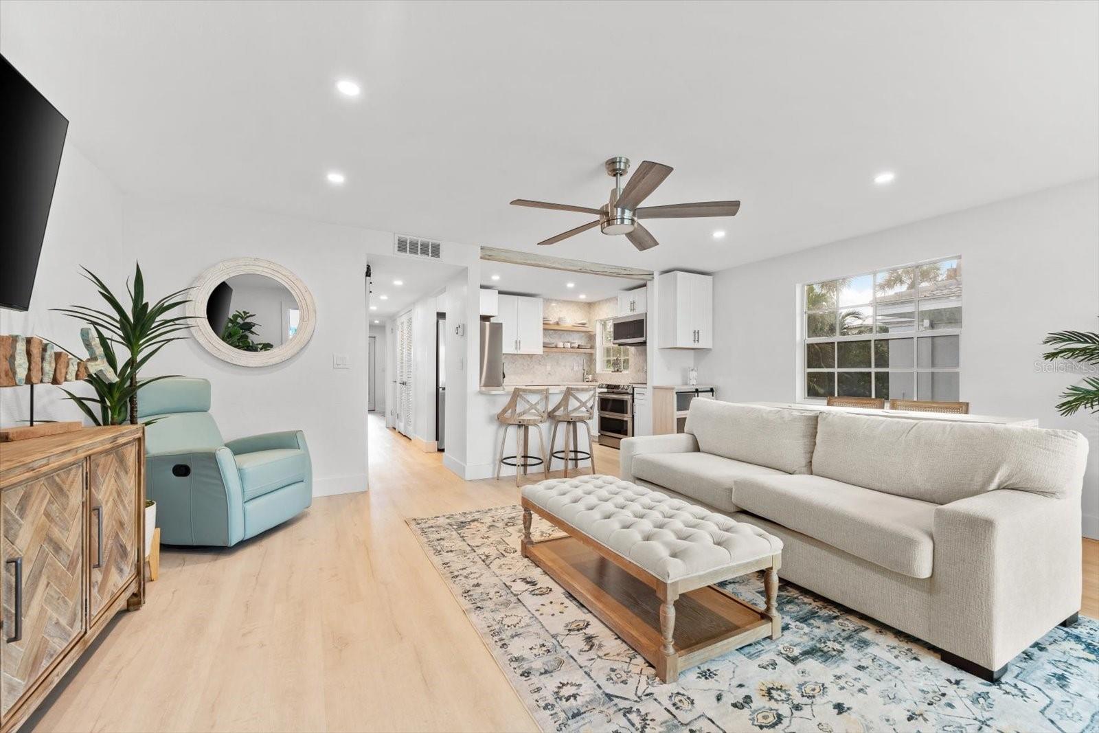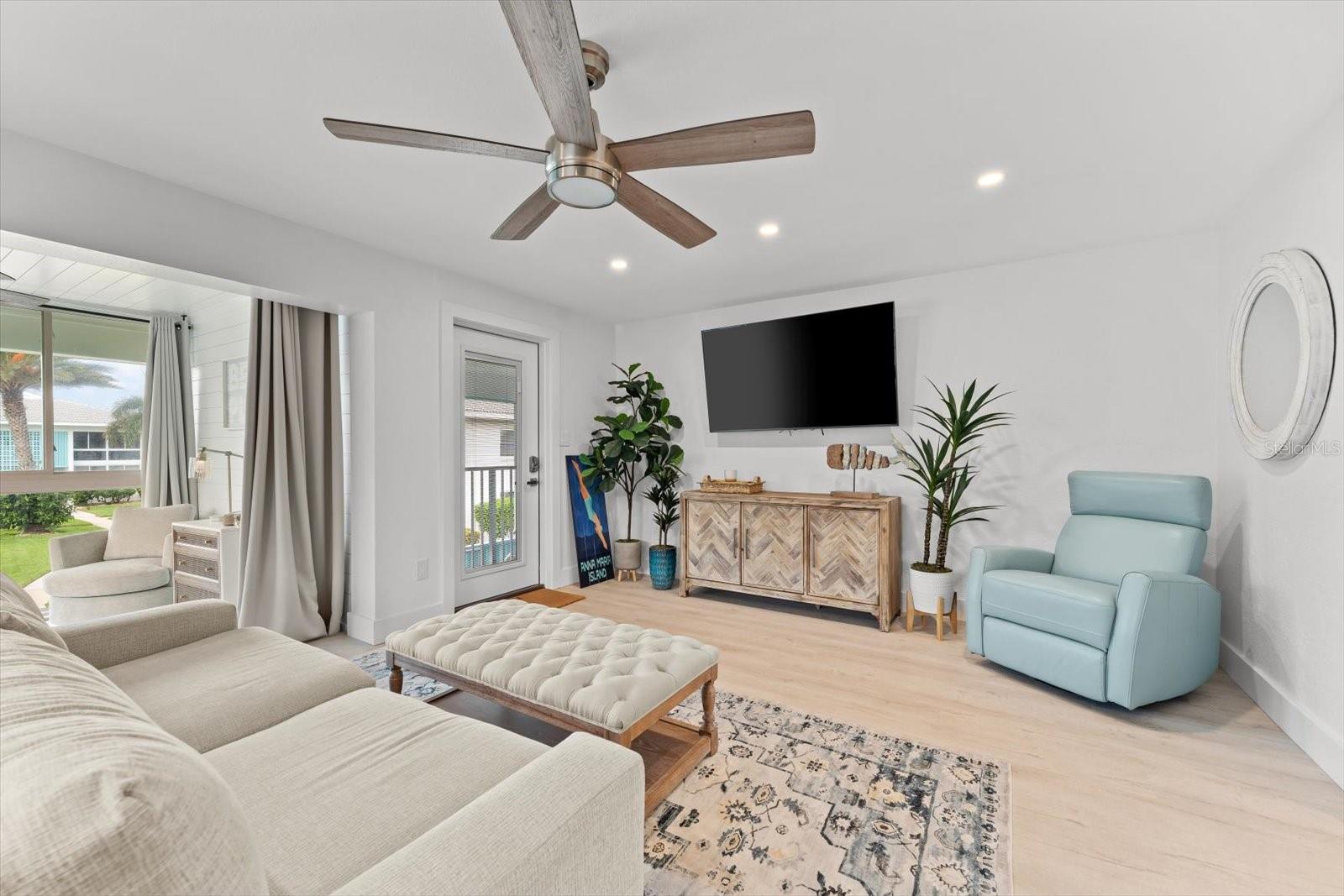 Seller may consider buyer concessions if made in an offer. TURN KEY completely renovated 1/1 unit with Gulf of Mexico Water Views! This second floor unit spared no expense on making this unit absolutely perfect for primary/seasonal residents, while also showing a proven track record of rental history as you can't beat the location on the island, and the private deeded beach access. Everything is new highlighted by the impact windows and HVAC system which both were installed in 2023. The furniture fits this beach unit perfectly it looks like the unit is staged! Outstanding use of square footage having the washer/dryer in the large bedroom walk in closet, and the high end finishes and fixtures make this beach front condo the perfect move in ready gulf front unit. 5400 Gulf is a 55+ community which allows owners to live the island/beach life like they've always dreamed off. Two beautiful community pools, shuffleboard, private deeded beach access, and no maintenance to worry about!