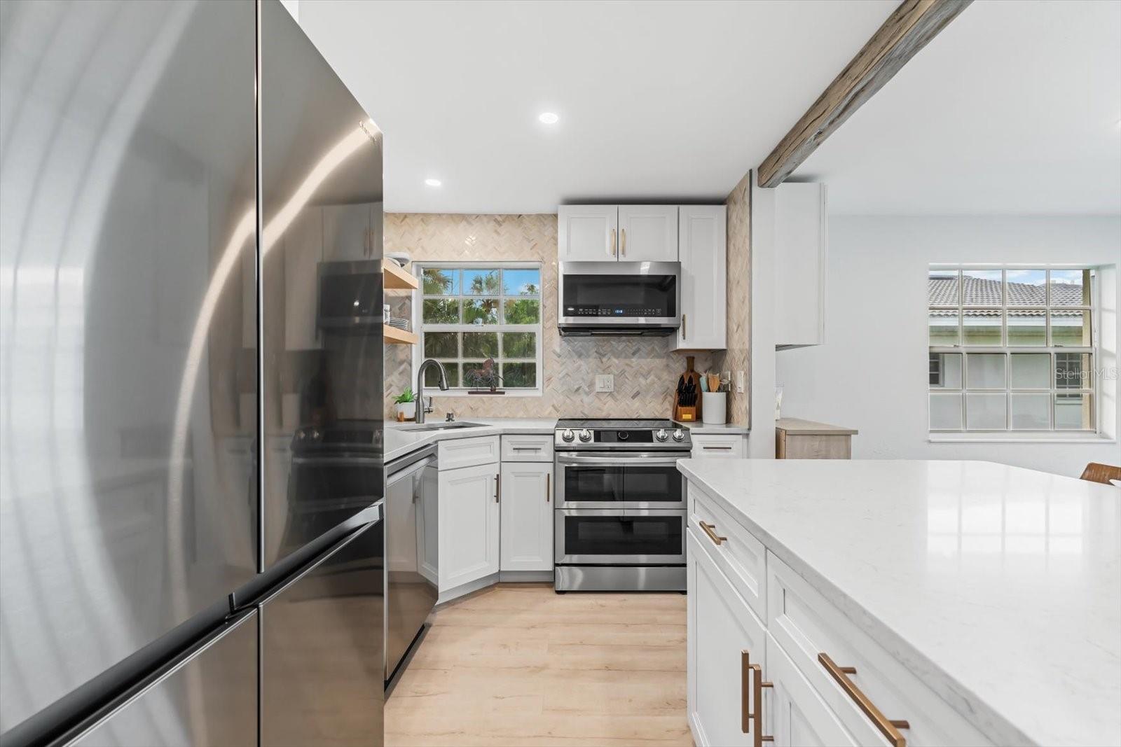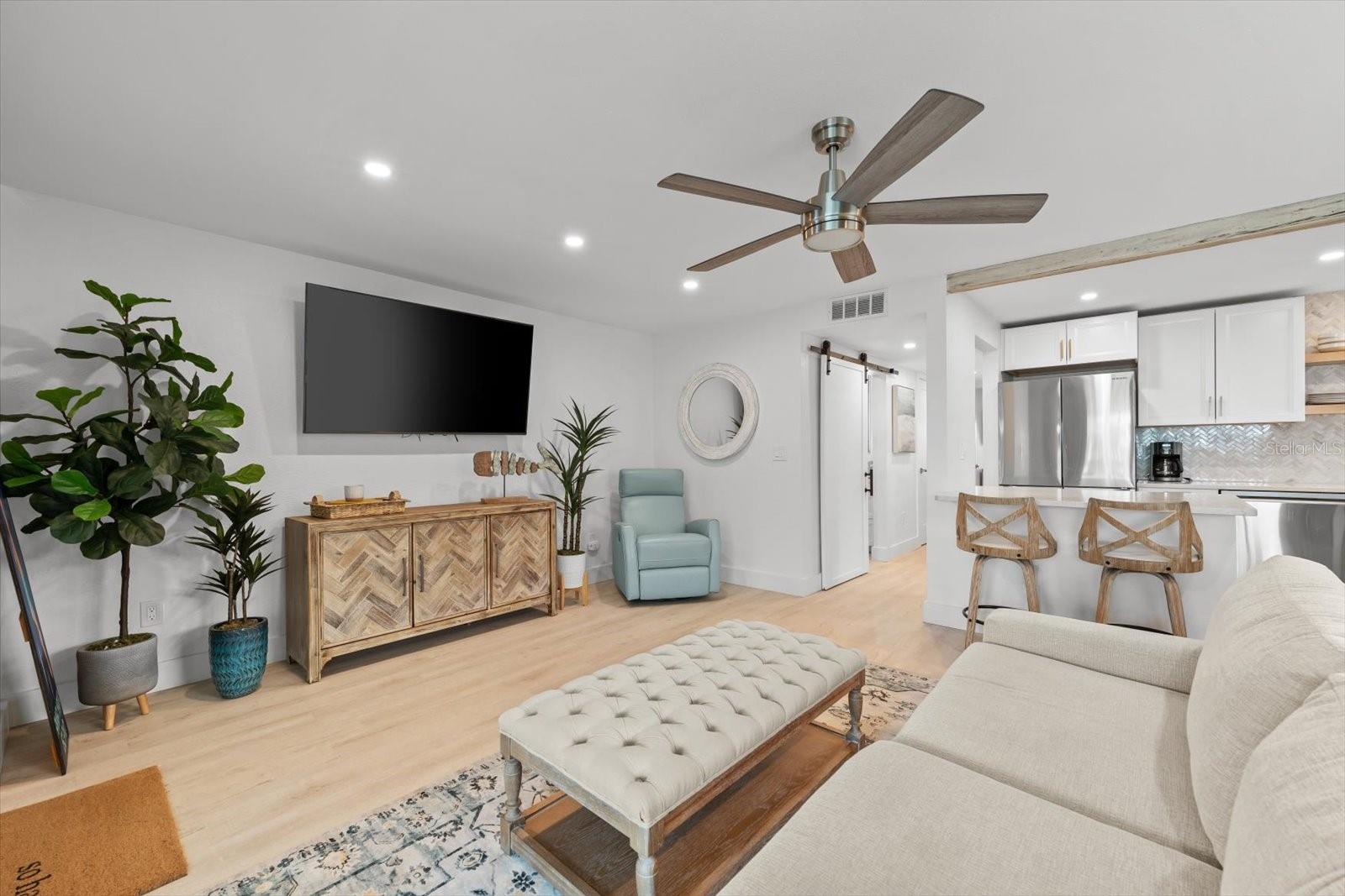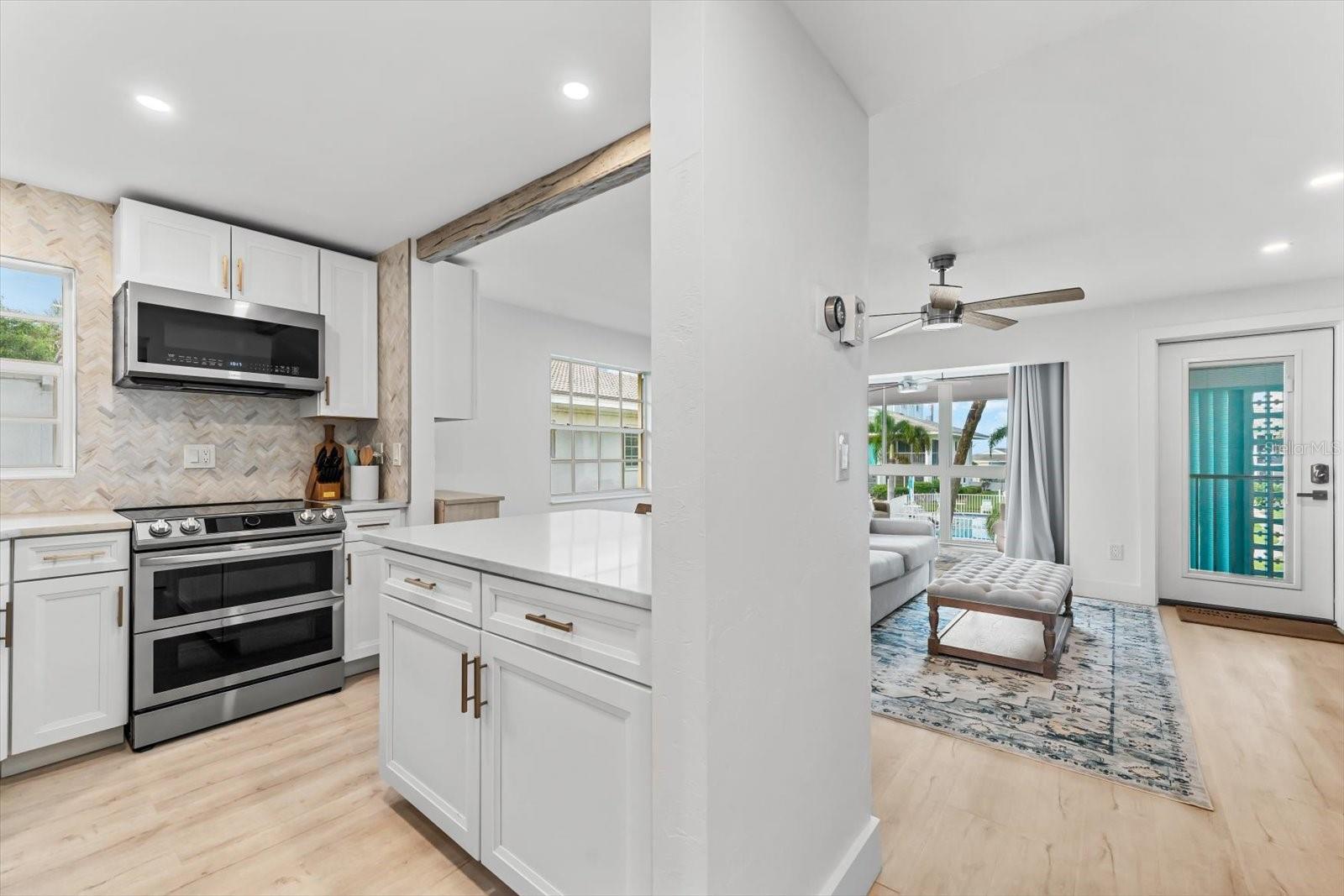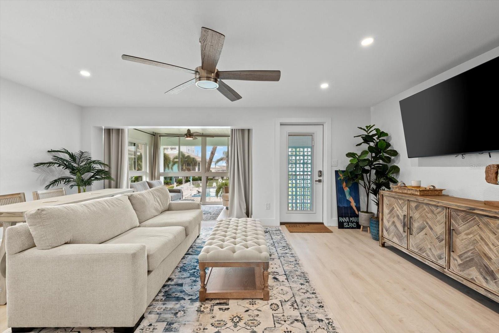 Seller may consider buyer concessions if made in an offer. TURN KEY completely renovated 1/1 unit with Gulf of Mexico Water Views! This second floor unit spared no expense on making this unit absolutely perfect for primary/seasonal residents, while also showing a proven track record of rental history as you can't beat the location on the island, and the private deeded beach access. Everything is new highlighted by the impact windows and HVAC system which both were installed in 2023. The furniture fits this beach unit perfectly it looks like the unit is staged! Outstanding use of square footage having the washer/dryer in the large bedroom walk in closet, and the high end finishes and fixtures make this beach front condo the perfect move in ready gulf front unit. 5400 Gulf is a 55+ community which allows owners to live the island/beach life like they've always dreamed off. Two beautiful community pools, shuffleboard, private deeded beach access, and no maintenance to worry about!