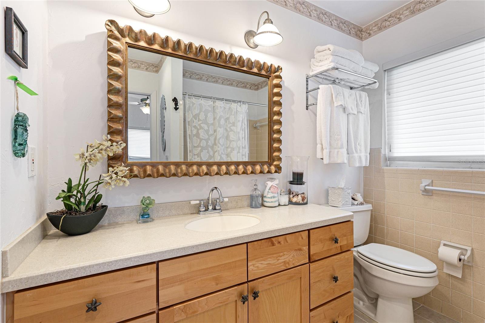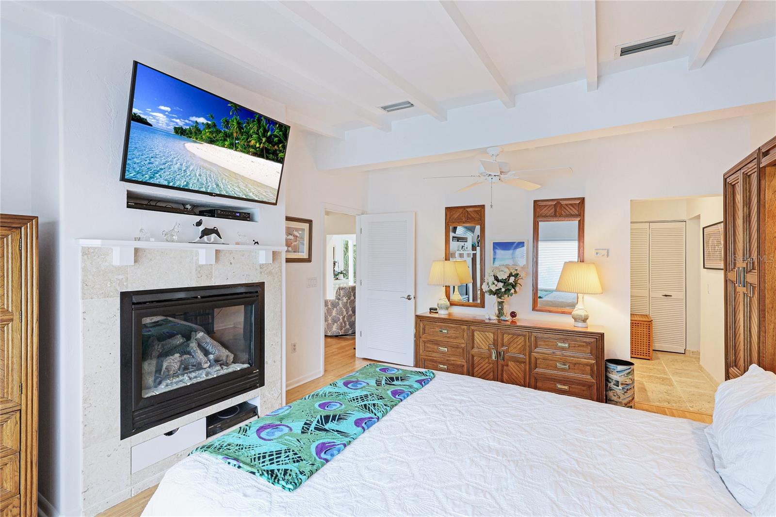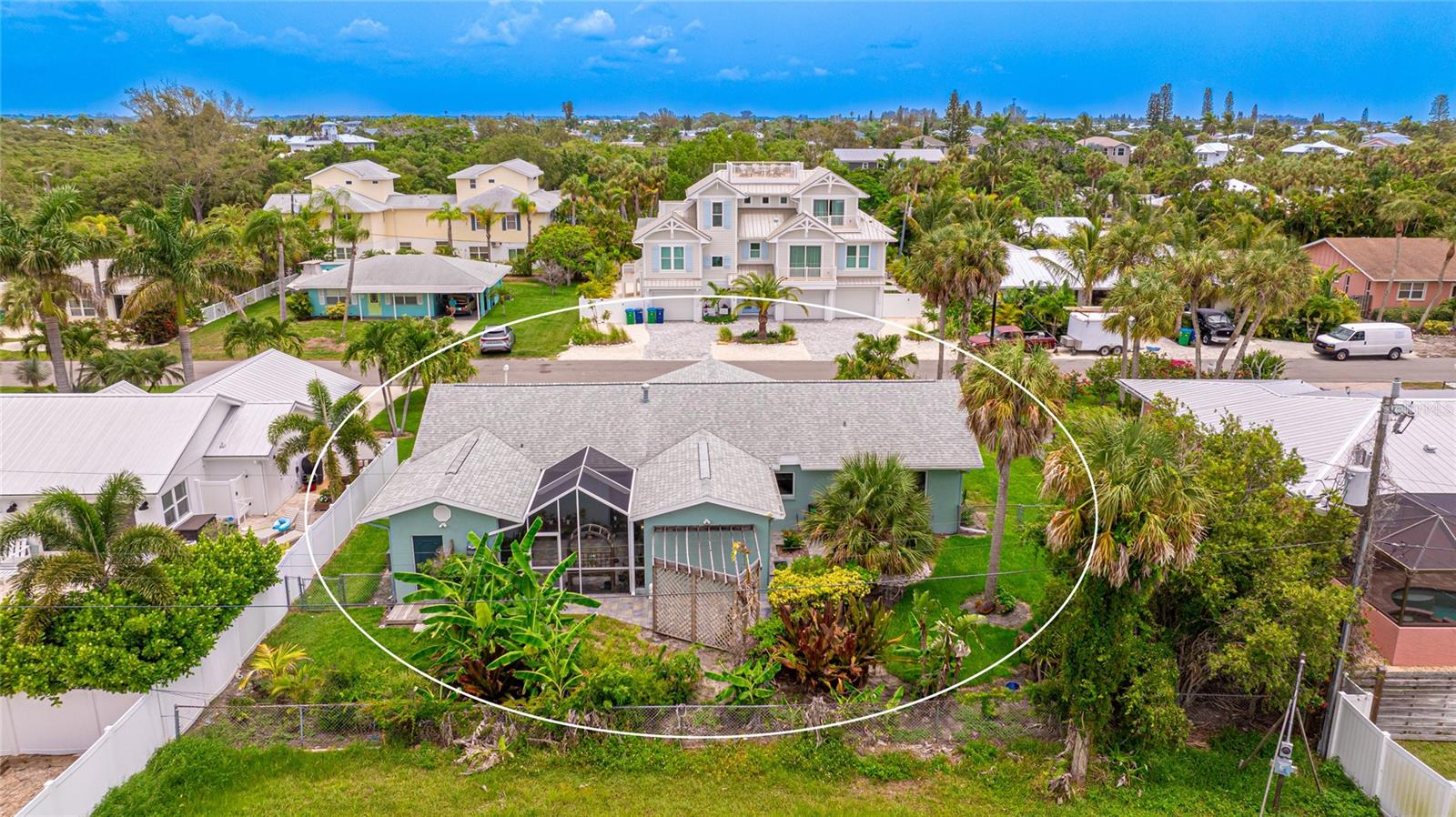 Don't miss this charming 3 bedroom, 2 1/2 bath home located on coveted 83rd Street in Holmes Beach, known for being a quiet neighborhood tucked away from traffic and noise. Located a block and a half from one of the most pristine beaches on Anna Maria and only three houses away from a deeded boat slip (offered for separate purchase) you can relax where you choose. This coastal home was completely remodeled in 2001 with new electrical, plumbing and air conditioning systems. A buried 500 gallon propane gas tank was added to power a propane generator (new in 2023), a gas grill, and a gas fireplace in the primary bedroom, so you have no worries about power outages ever again. A new on-demand water heater saves on electrical bills. This open plan home was completely repainted 2 years ago. The sunny dining room looks out through two sets of French doors to the backyard garden and the screened room (rescreened 2 years ago) perfect for dining under the stars. Every room in this well maintained home is filled with natural light. The main bedroom features a gas fireplace and a large en suite bathroom constructed of hand cut coral stone in the double shower and as the floor for the bathroom and walk in closet. The spacious walk in closet houses a washer and dryer for maximum convenience. In this split plan home, you will find a welcoming guest bedroom with en suite bathroom featuring a tub/shower combination. The 3rd bedroom is currently being used as a home office and it has an en suite half bath. Two separate air conditioner units provide individual control of temperature for each side of the house, and each has a new ultraviolet purification system to prevent mold and mildew as it cleans the air. The one car garage has a direct entrance into the house so there are no rainy day worries. A new 5 zone irrigation system keeps the tropical landscape healthy and thriving. The amount of storage built into this coastal dream home will surprise and delight you. The air conditioning, generator, and propane tank have had and continue to have contracts for periodic inspection and service to keep everything in top working condition. The ADT security system and motion detector lights surrounding this home will provide you with total peace of mind. 212 83rd is just waiting for you to come in and start relaxing.