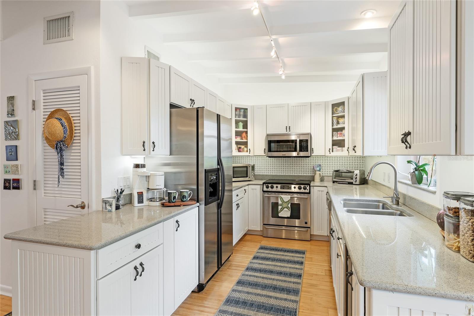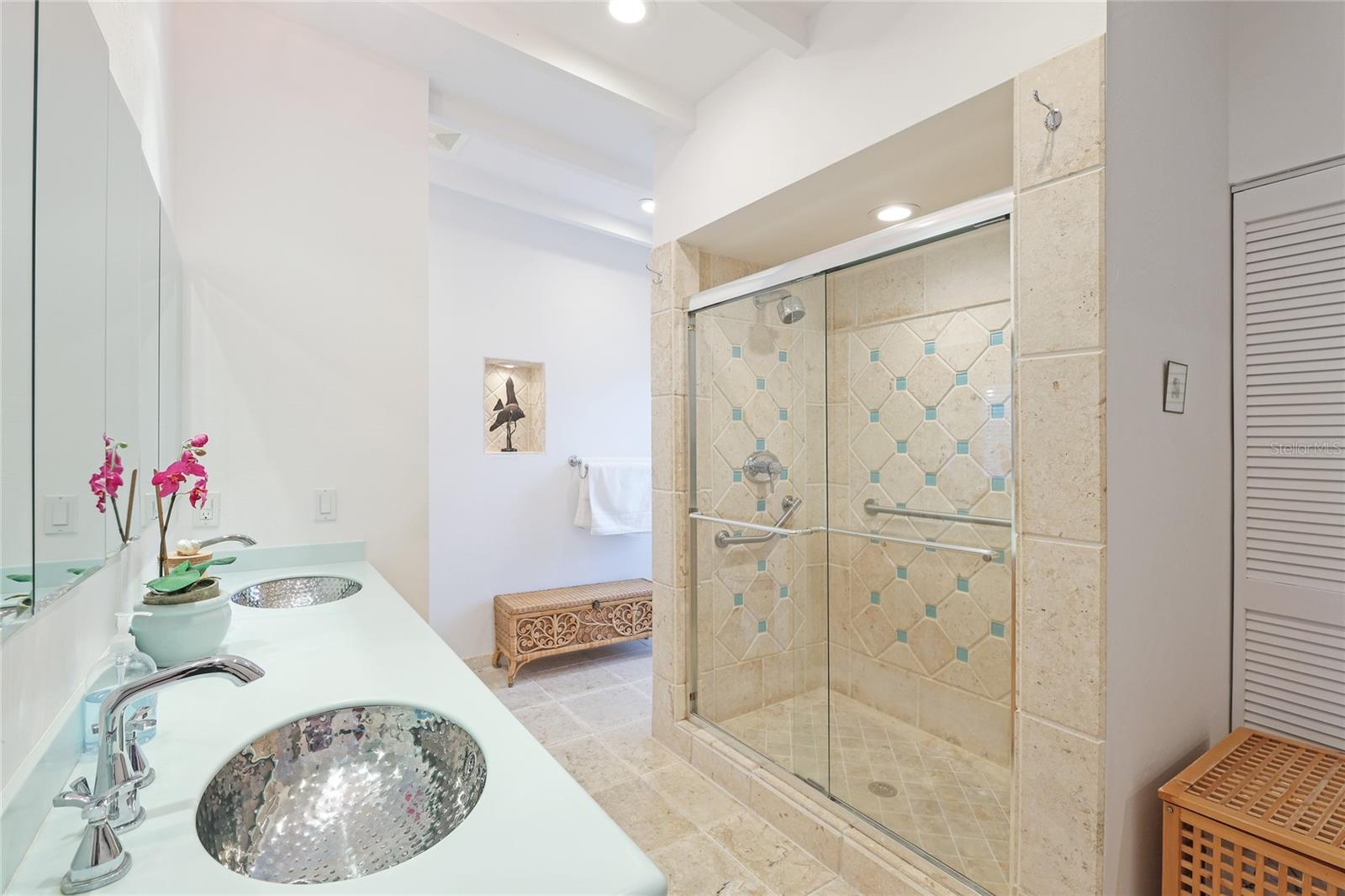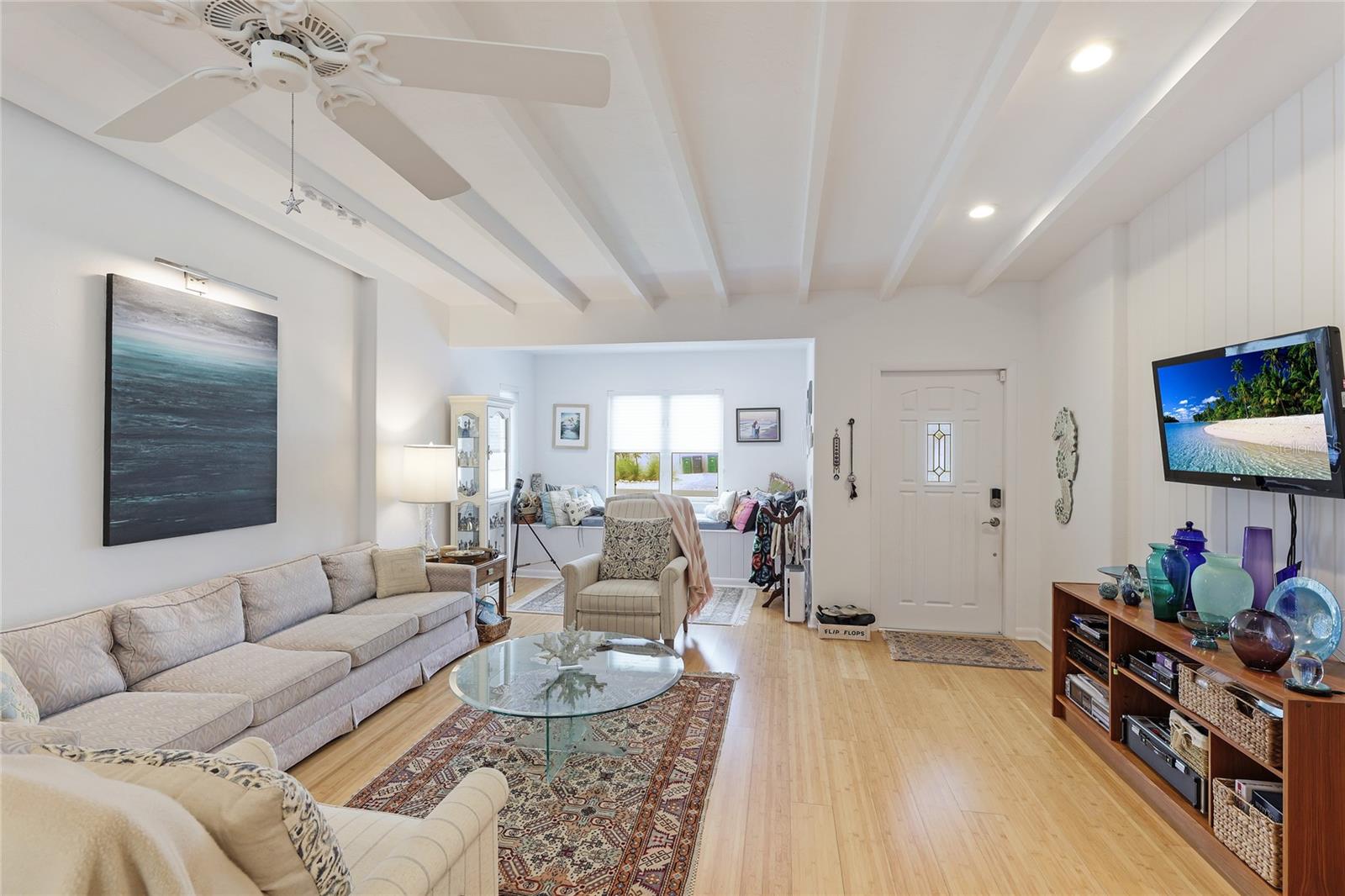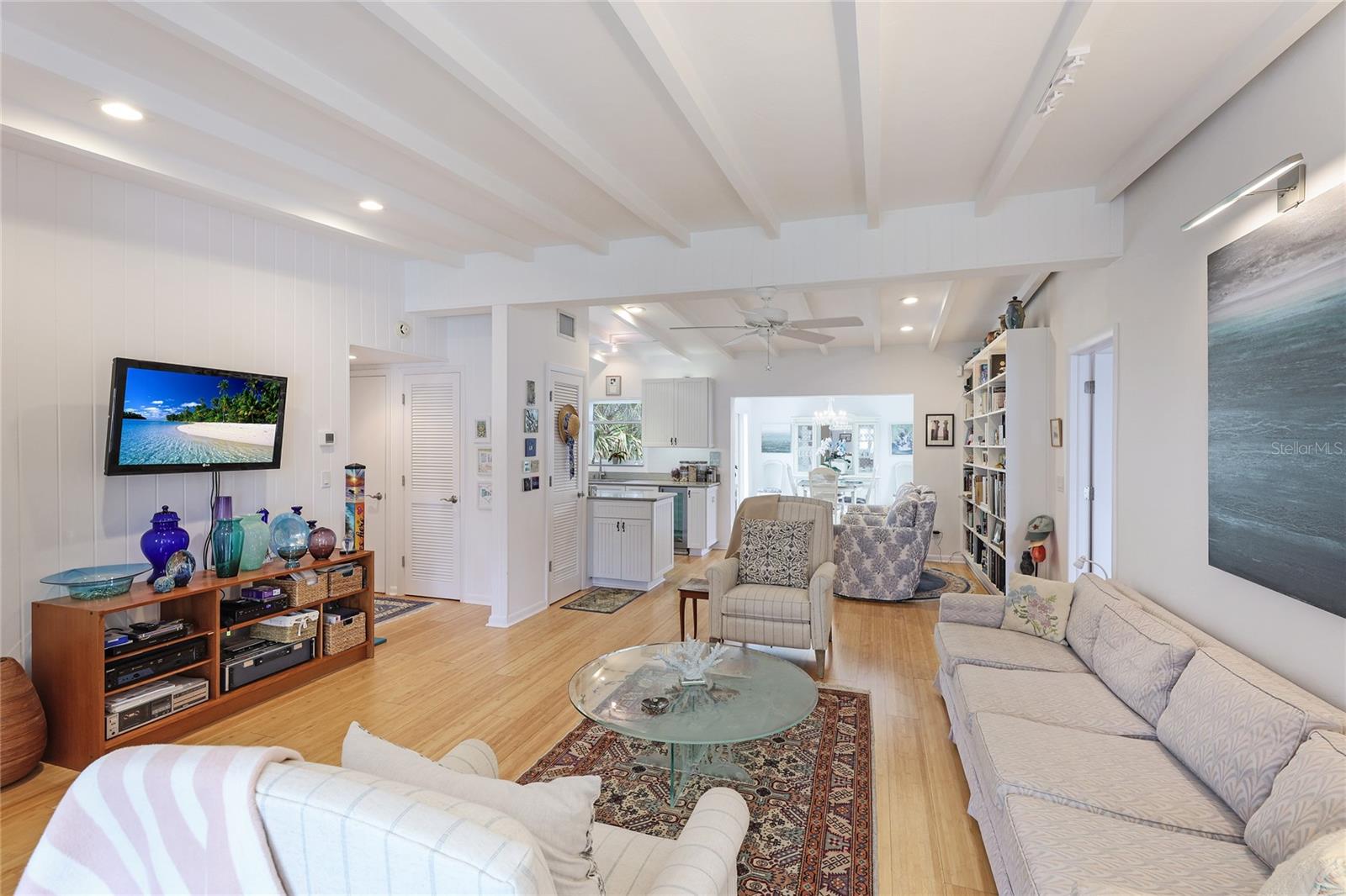Don't miss this charming 3 bedroom, 2 1/2 bath home located on coveted 83rd Street in Holmes Beach, known for being a quiet neighborhood tucked away from traffic and noise. Located a block and a half from one of the most pristine beaches on Anna Maria and only three houses away from a deeded boat slip (offered for separate purchase) you can relax where you choose. This coastal home was completely remodeled in 2001 with new electrical, plumbing and air conditioning systems. A buried 500 gallon propane gas tank was added to power a propane generator (new in 2023), a gas grill, and a gas fireplace in the primary bedroom, so you have no worries about power outages ever again. A new on-demand water heater saves on electrical bills. This open plan home was completely repainted 2 years ago. The sunny dining room looks out through two sets of French doors to the backyard garden and the screened room (rescreened 2 years ago) perfect for dining under the stars. Every room in this well maintained home is filled with natural light. The main bedroom features a gas fireplace and a large en suite bathroom constructed of hand cut coral stone in the double shower and as the floor for the bathroom and walk in closet. The spacious walk in closet houses a washer and dryer for maximum convenience. In this split plan home, you will find a welcoming guest bedroom with en suite bathroom featuring a tub/shower combination. The 3rd bedroom is currently being used as a home office and it has an en suite half bath. Two separate air conditioner units provide individual control of temperature for each side of the house, and each has a new ultraviolet purification system to prevent mold and mildew as it cleans the air. The one car garage has a direct entrance into the house so there are no rainy day worries. A new 5 zone irrigation system keeps the tropical landscape healthy and thriving. The amount of storage built into this coastal dream home will surprise and delight you. The air conditioning, generator, and propane tank have had and continue to have contracts for periodic inspection and service to keep everything in top working condition. The ADT security system and motion detector lights surrounding this home will provide you with total peace of mind. 212 83rd is just waiting for you to come in and start relaxing.