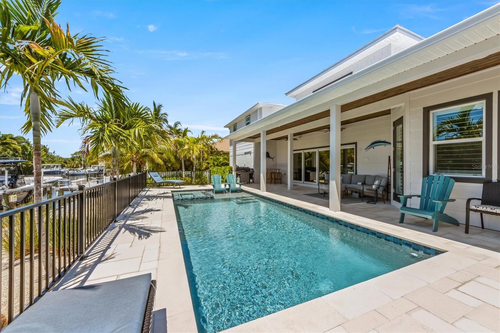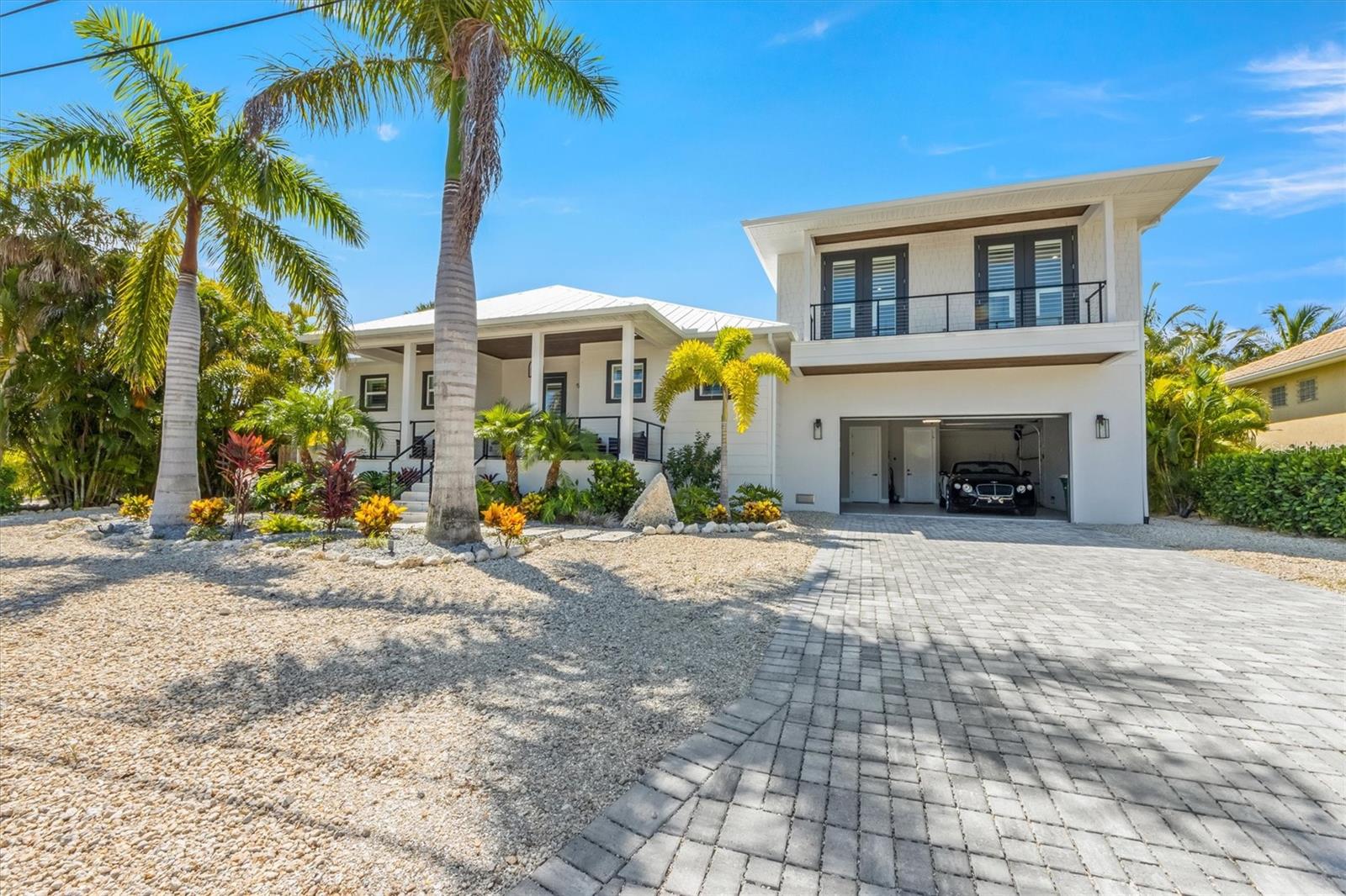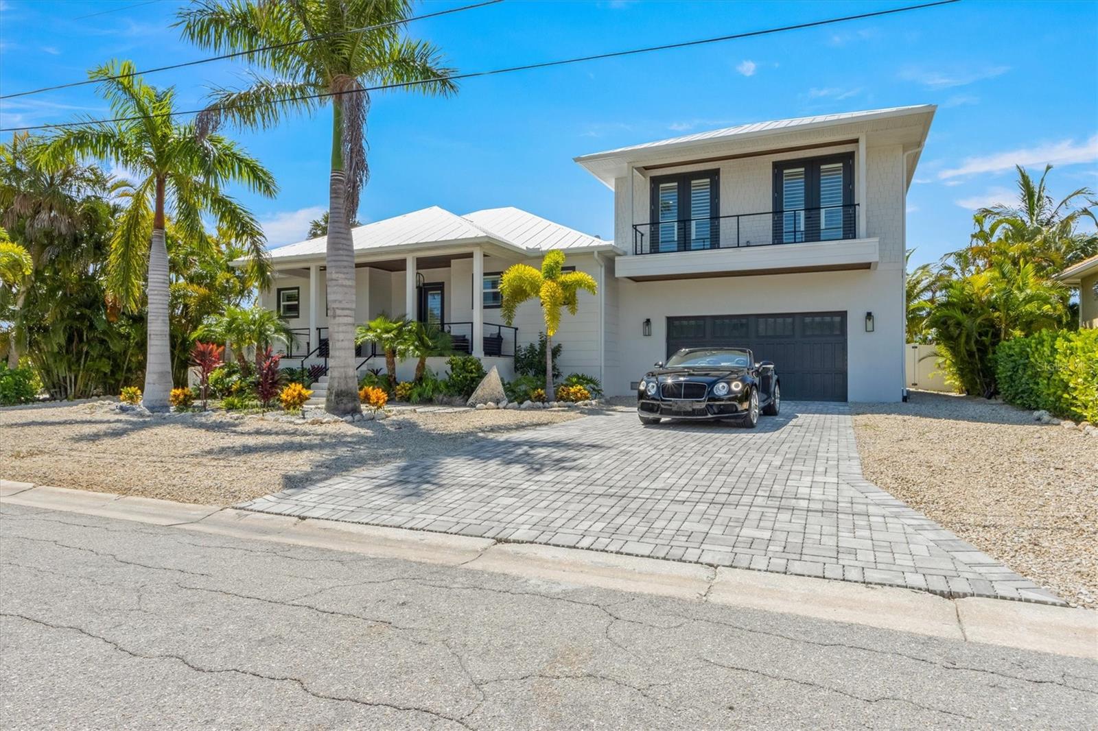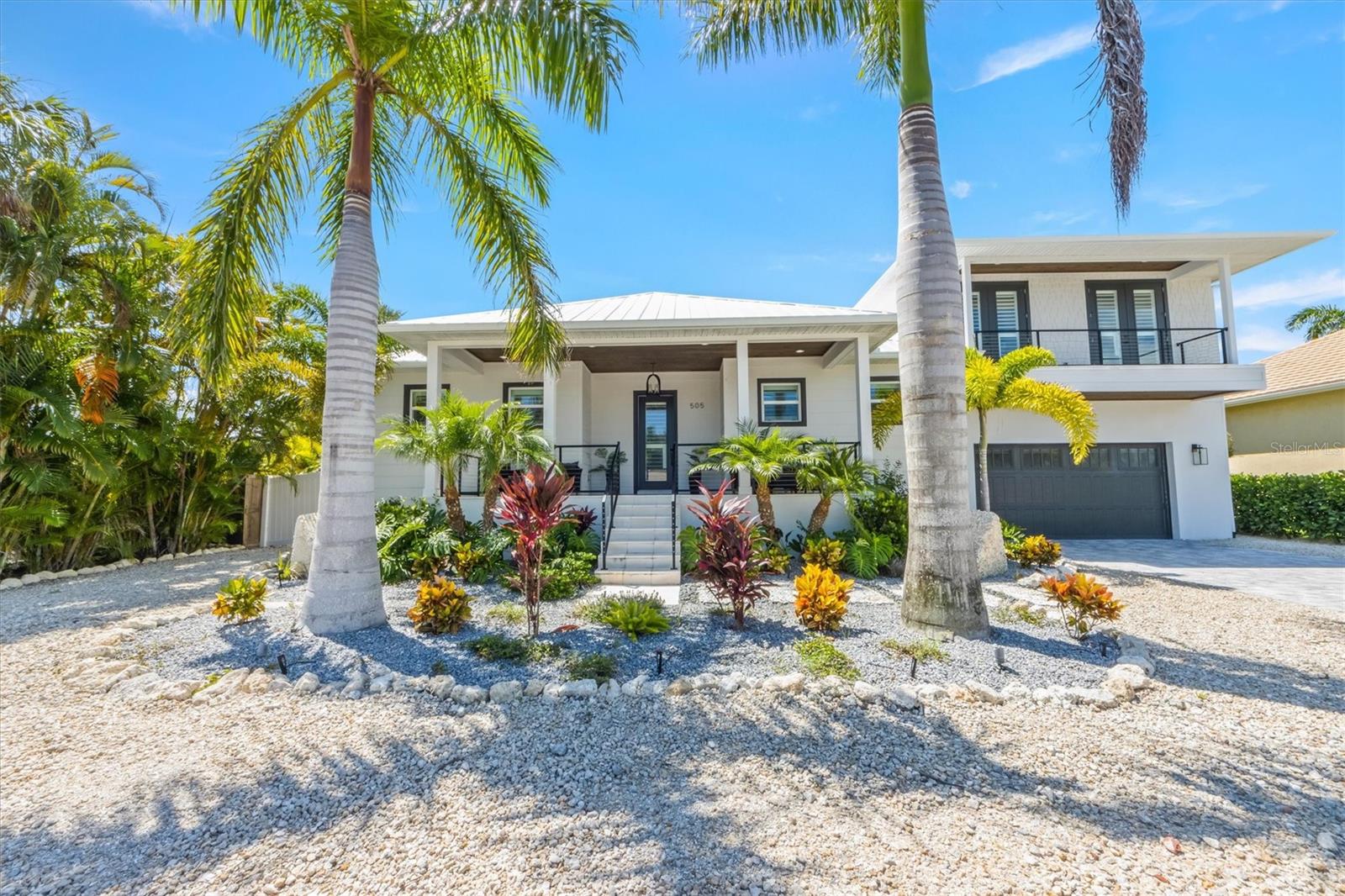 This new construction is a dream come true for boaters and water lovers! A stunning Key West style WATERFRONT canal home spans over 2,263 Sq. Ft. and offers a total of 3754 sq. ft. of pure luxury. Offered turnkey furnished and totally moved in ready! Completed in 2023, this home features an abundance of natural light, soaring ceilings, custom 4 inch plantation shutters and electric blinds for the sliders, HURRICANE impact windows and doors, and metal roof. The kitchen is a chef's delight featuring top-of-the-line stainless steel appliances including wolf, quartz countertops, soft close cabinets, 2 sinks, open shelving, separate wine fridge, and a generously large entertaining island. The living and dining areas seamlessly lead out to the outdoor covered patio, perfect for indoor/outdoor entertaining. The split floor plan offers maximum privacy, with the master en-suite featuring his and her closets, a separate soak-in tub and a huge walk-in rain shower, and double sinks. All bathrooms have unique and stylish modern tile finishes. There are three additional bedrooms, one with its own private en-suite bathroom and the other two sharing a jack and Jill bathroom. Enjoy the oversized epoxy 3-car garage for all your cars, golf carts and beach toys! In addition, the beautifully paved driveway offers ample parking for all your guests. Step outside to your backyard oasis where you'll find a heated salt pool controlled by wifi, spa and sun shelf, surround sound, an outdoor shower, and a huge composite dock for fishing and a 10,000 lb. boat lift. With direct access to Anna Maria Sound and the Gulf of Mexico and no bridges you can hop on your boat and be on the water in no time. The tropical landscaping is breathtaking with lighting and easy to maintain with shell and low maintenance plants. Located in the heart of Holmes Beach, you are close to all the boutiques and restaurants and only five minutes from the gorgeous Anna Maria beaches, this home truly offers the best of Anna Maria island living. Come and make this your very own waterfront paradise and experience all that Anna Maria Island has to offer! This stunning home is an absolute must-see.