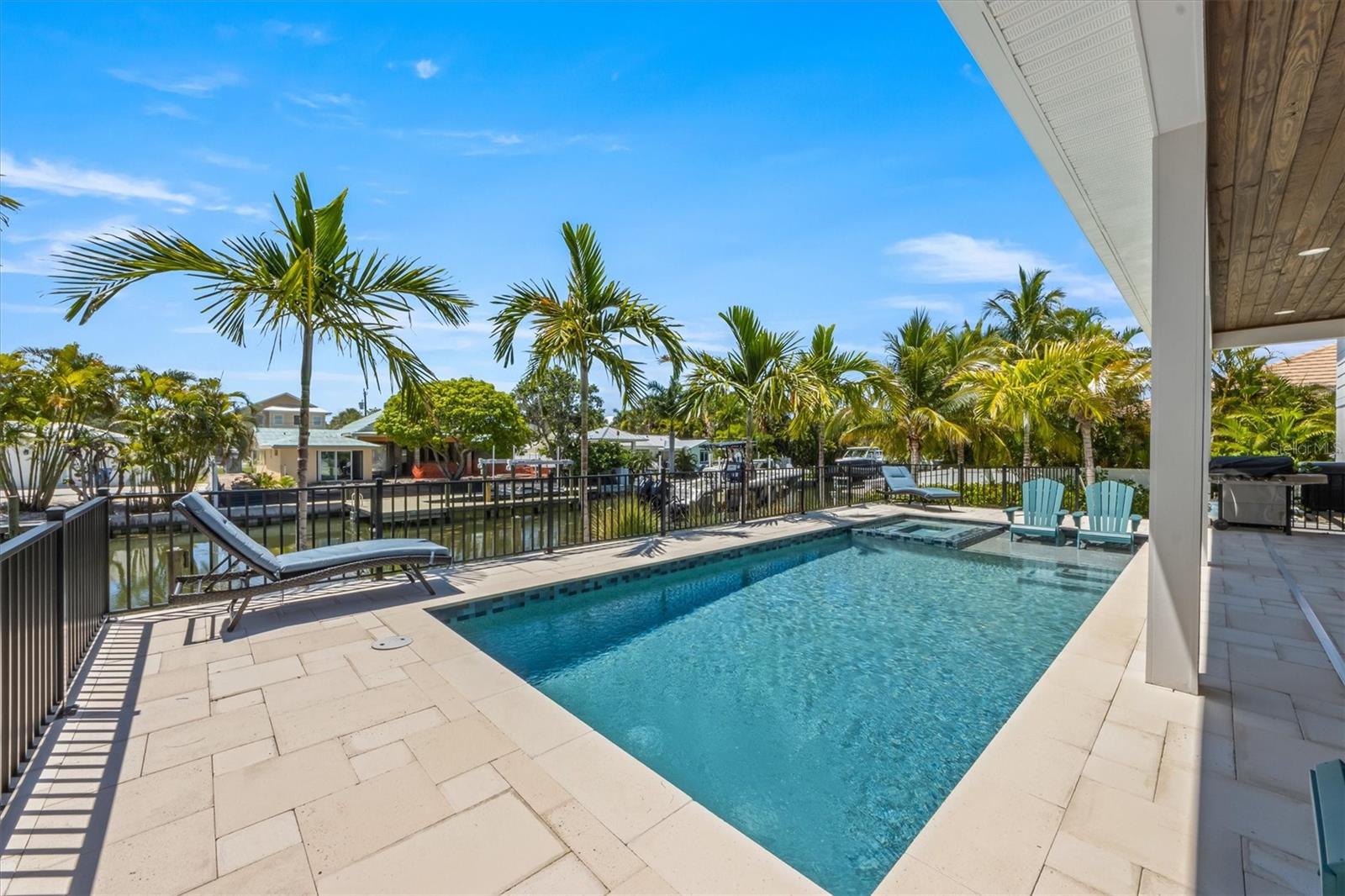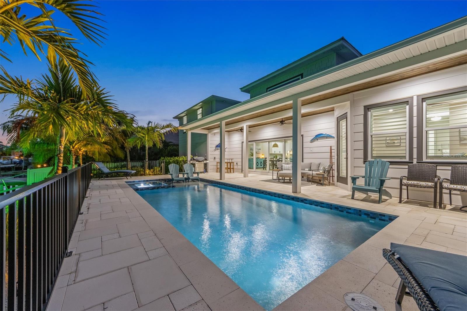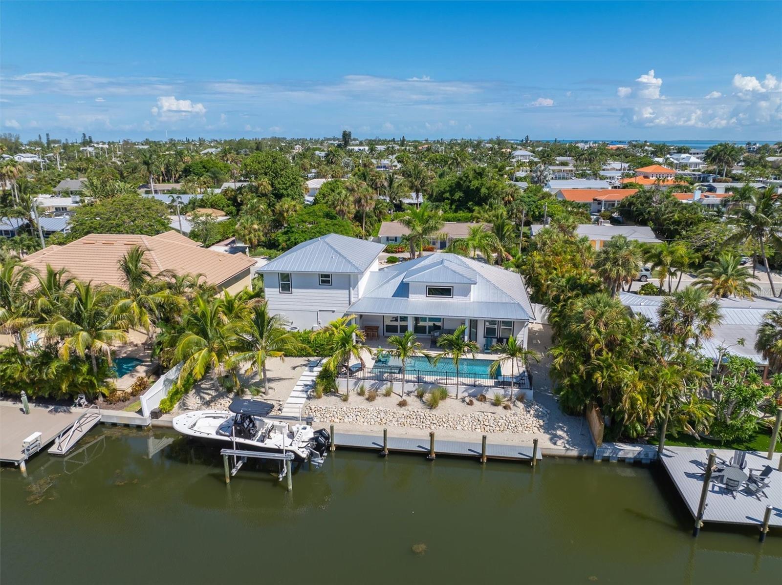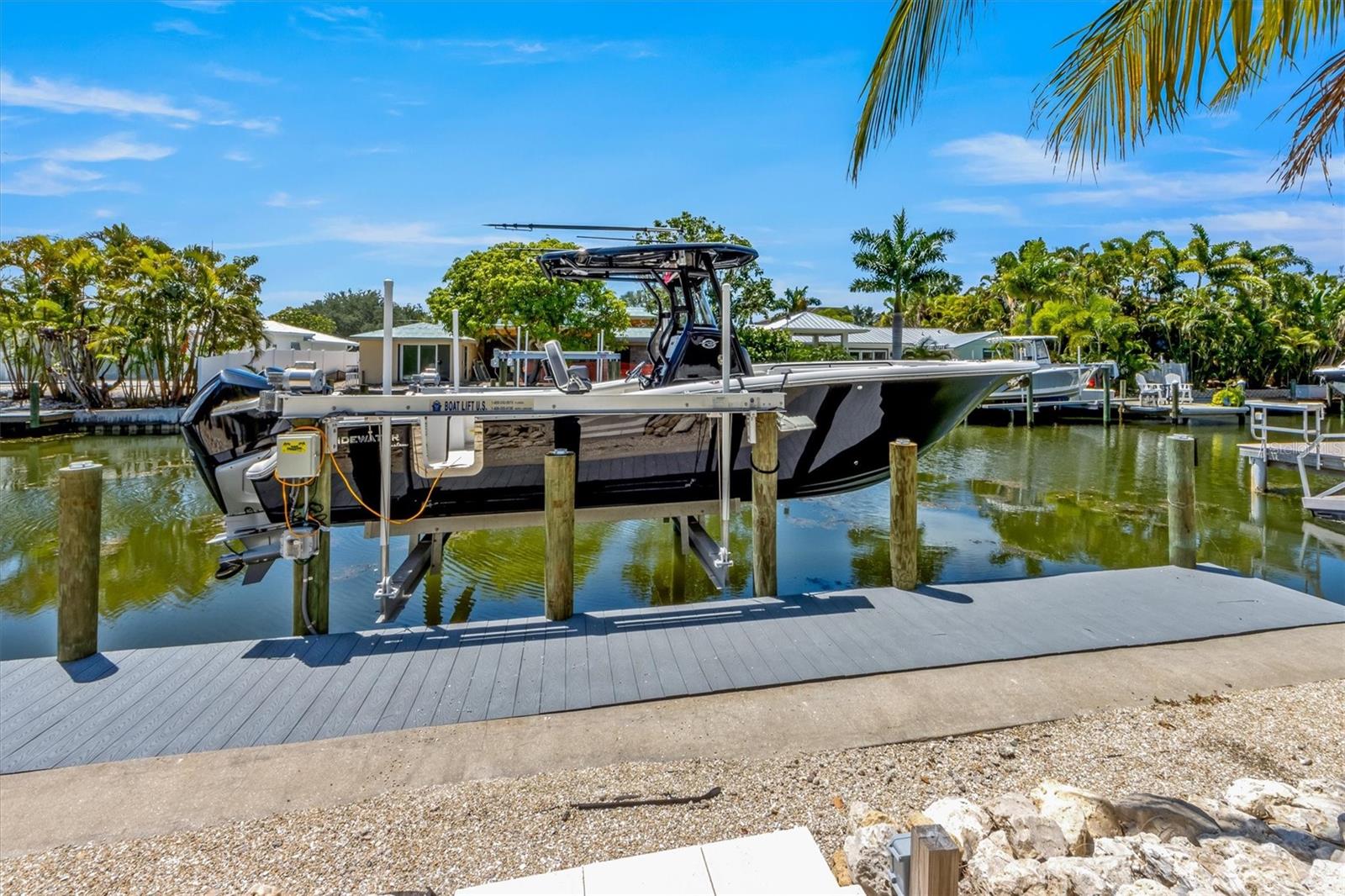 This new construction is a dream come true for boaters and water lovers! A stunning Key West style WATERFRONT canal home spans over 2,263 Sq. Ft. and offers a total of 3754 sq. ft. of pure luxury. Offered turnkey furnished and totally moved in ready! Completed in 2023, this home features an abundance of natural light, soaring ceilings, custom 4 inch plantation shutters and electric blinds for the sliders, HURRICANE impact windows and doors, and metal roof. The kitchen is a chef's delight featuring top-of-the-line stainless steel appliances including wolf, quartz countertops, soft close cabinets, 2 sinks, open shelving, separate wine fridge, and a generously large entertaining island. The living and dining areas seamlessly lead out to the outdoor covered patio, perfect for indoor/outdoor entertaining. The split floor plan offers maximum privacy, with the master en-suite featuring his and her closets, a separate soak-in tub and a huge walk-in rain shower, and double sinks. All bathrooms have unique and stylish modern tile finishes. There are three additional bedrooms, one with its own private en-suite bathroom and the other two sharing a jack and Jill bathroom. Enjoy the oversized epoxy 3-car garage for all your cars, golf carts and beach toys! In addition, the beautifully paved driveway offers ample parking for all your guests. Step outside to your backyard oasis where you'll find a heated salt pool controlled by wifi, spa and sun shelf, surround sound, an outdoor shower, and a huge composite dock for fishing and a 10,000 lb. boat lift. With direct access to Anna Maria Sound and the Gulf of Mexico and no bridges you can hop on your boat and be on the water in no time. The tropical landscaping is breathtaking with lighting and easy to maintain with shell and low maintenance plants. Located in the heart of Holmes Beach, you are close to all the boutiques and restaurants and only five minutes from the gorgeous Anna Maria beaches, this home truly offers the best of Anna Maria island living. Come and make this your very own waterfront paradise and experience all that Anna Maria Island has to offer! This stunning home is an absolute must-see.
