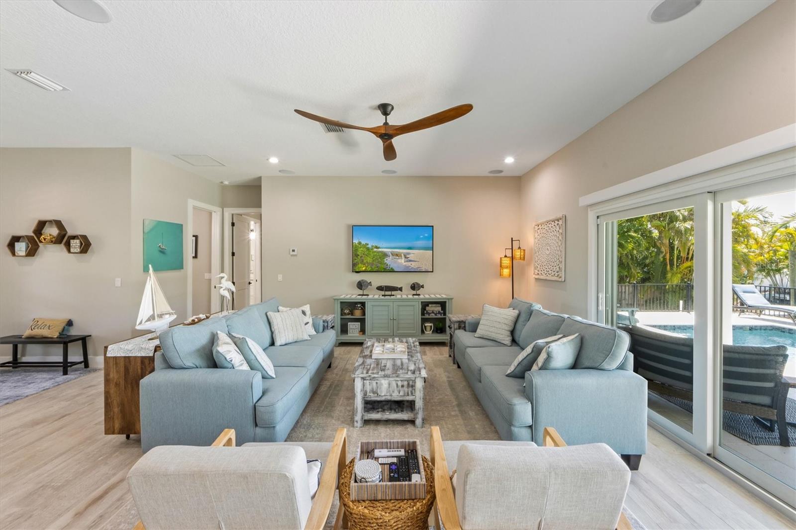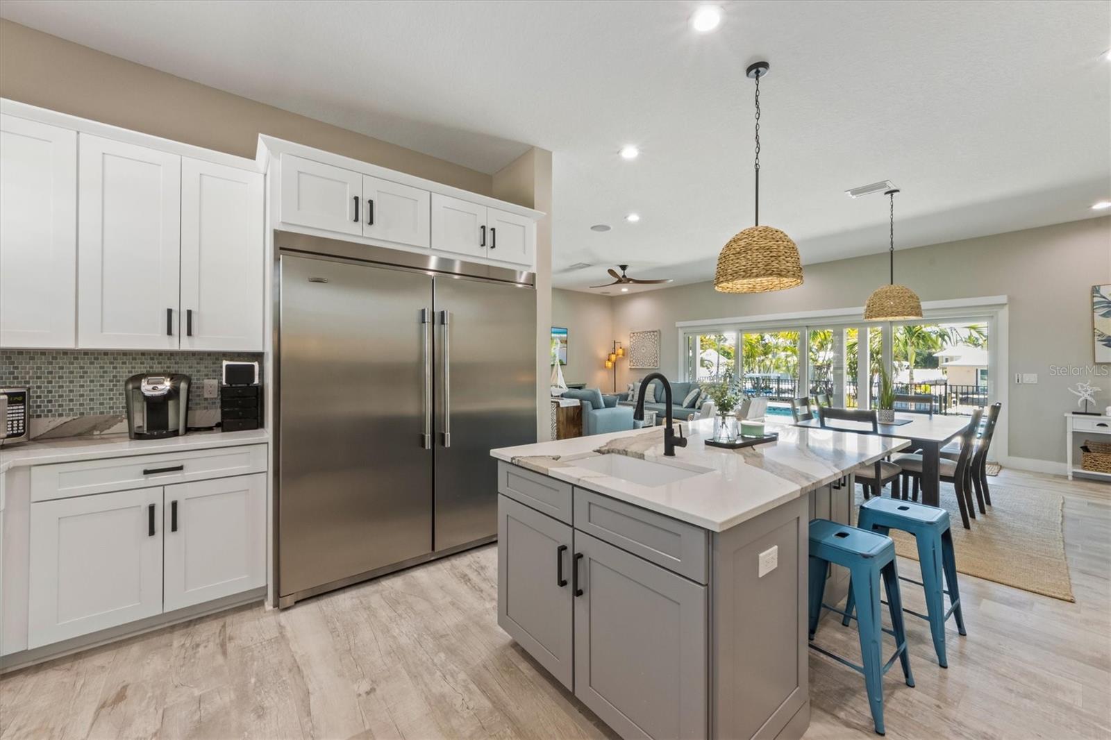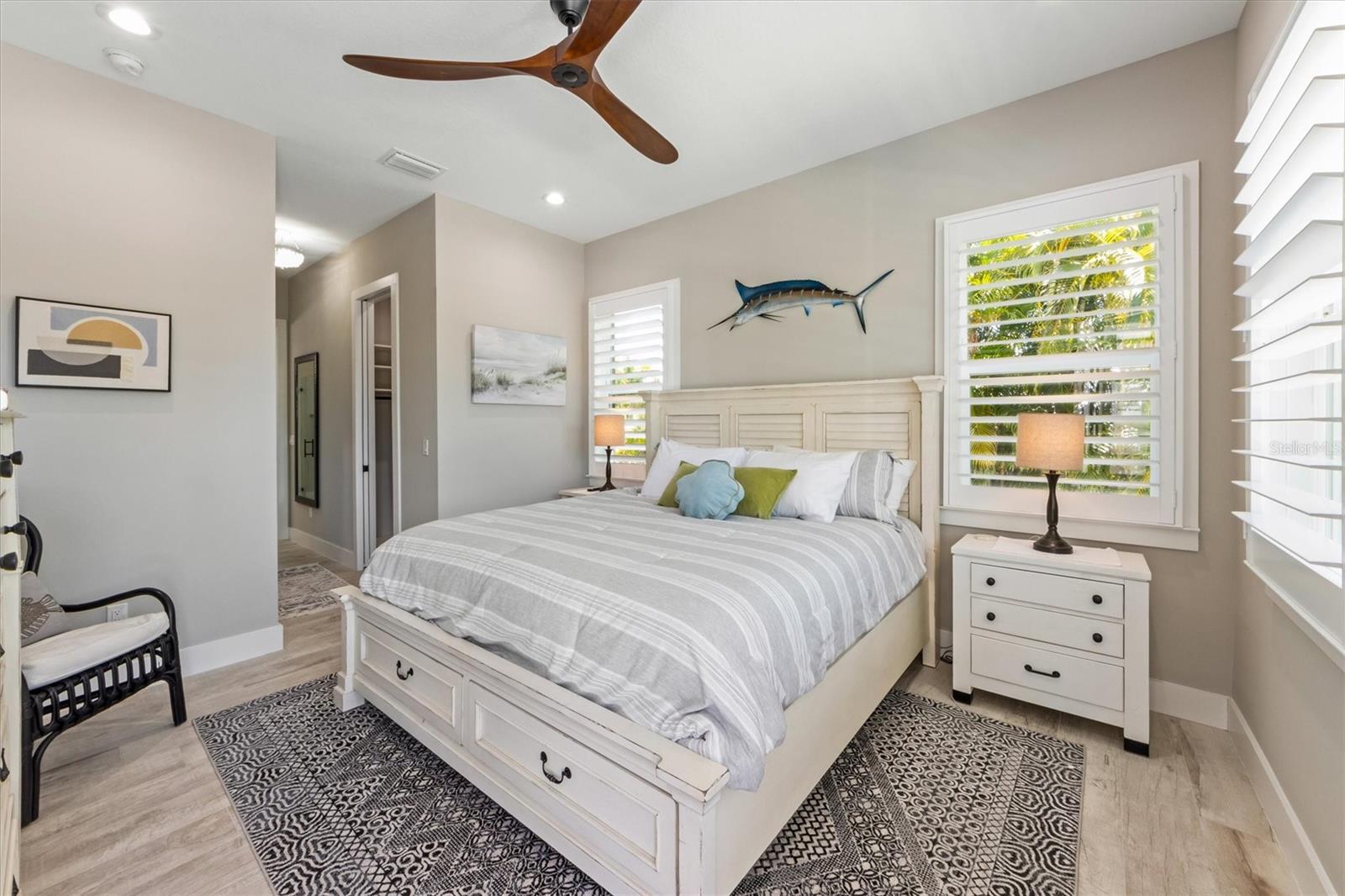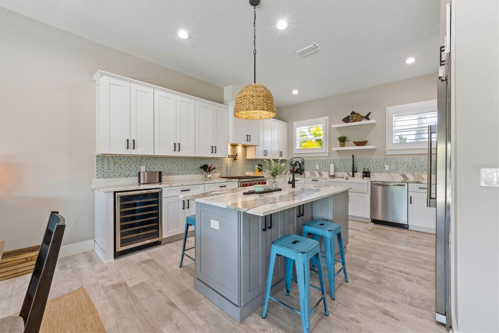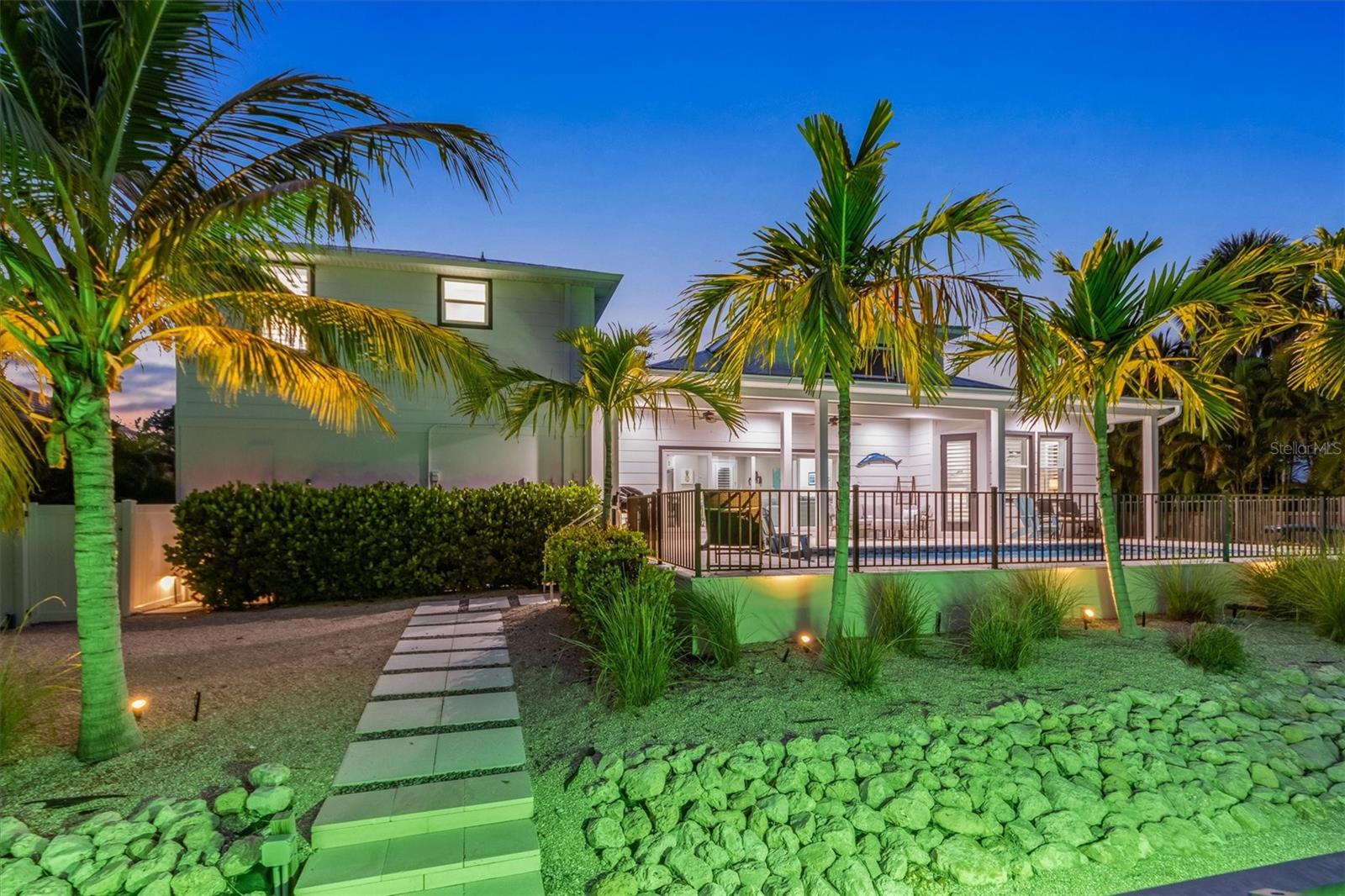 This new construction is a dream come true for boaters and water lovers! A stunning Key West style WATERFRONT canal home spans over 2,263 Sq. Ft. and offers a total of 3754 sq. ft. of pure luxury. Offered turnkey furnished and totally moved in ready! Completed in 2023, this home features an abundance of natural light, soaring ceilings, custom 4 inch plantation shutters and electric blinds for the sliders, HURRICANE impact windows and doors, and metal roof. The kitchen is a chef's delight featuring top-of-the-line stainless steel appliances including wolf, quartz countertops, soft close cabinets, 2 sinks, open shelving, separate wine fridge, and a generously large entertaining island. The living and dining areas seamlessly lead out to the outdoor covered patio, perfect for indoor/outdoor entertaining. The split floor plan offers maximum privacy, with the master en-suite featuring his and her closets, a separate soak-in tub and a huge walk-in rain shower, and double sinks. All bathrooms have unique and stylish modern tile finishes. There are three additional bedrooms, one with its own private en-suite bathroom and the other two sharing a jack and Jill bathroom. Enjoy the oversized epoxy 3-car garage for all your cars, golf carts and beach toys! In addition, the beautifully paved driveway offers ample parking for all your guests. Step outside to your backyard oasis where you'll find a heated salt pool controlled by wifi, spa and sun shelf, surround sound, an outdoor shower, and a huge composite dock for fishing and a 10,000 lb. boat lift. With direct access to Anna Maria Sound and the Gulf of Mexico and no bridges you can hop on your boat and be on the water in no time. The tropical landscaping is breathtaking with lighting and easy to maintain with shell and low maintenance plants. Located in the heart of Holmes Beach, you are close to all the boutiques and restaurants and only five minutes from the gorgeous Anna Maria beaches, this home truly offers the best of Anna Maria island living. Come and make this your very own waterfront paradise and experience all that Anna Maria Island has to offer! This stunning home is an absolute must-see.