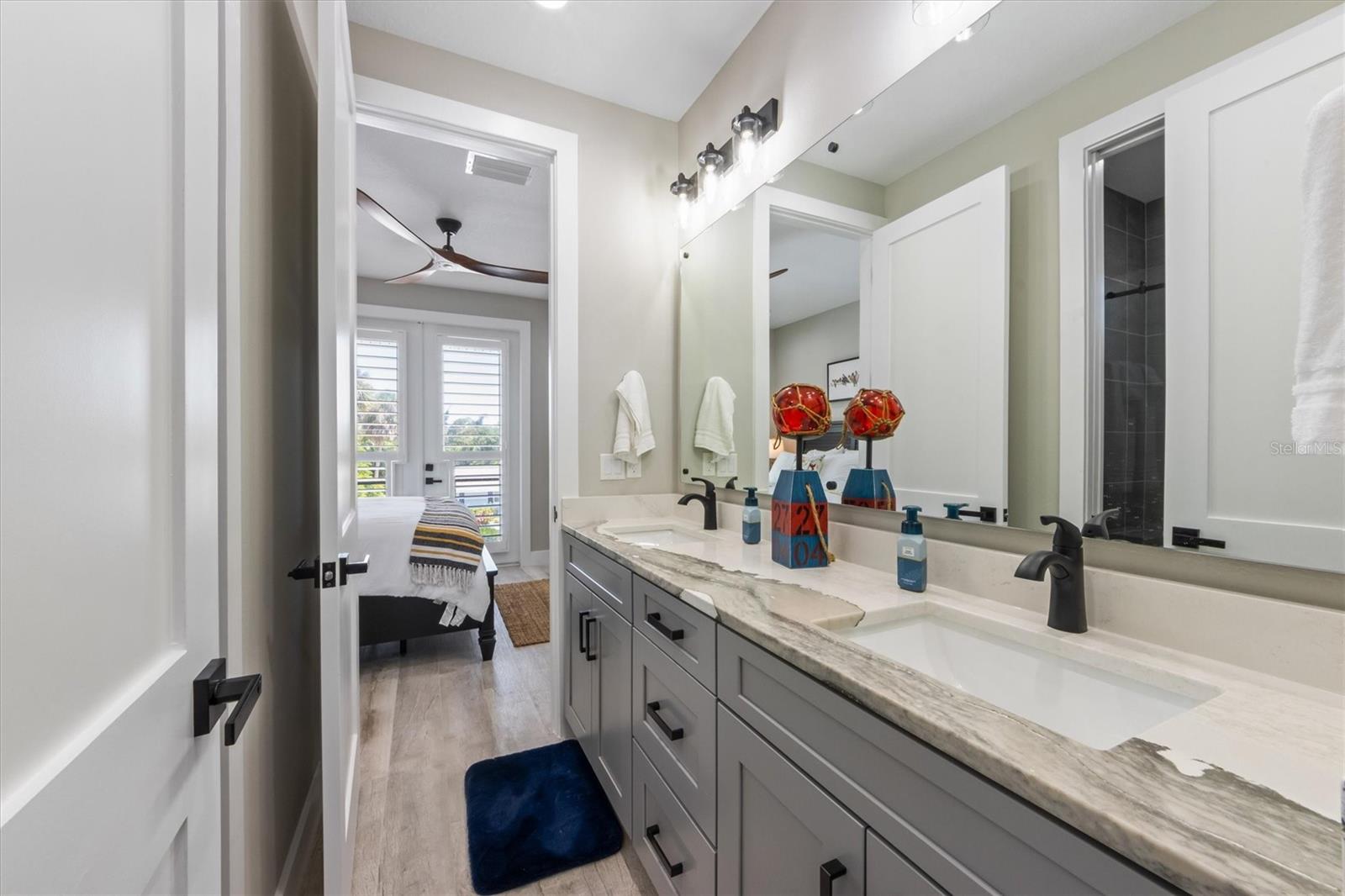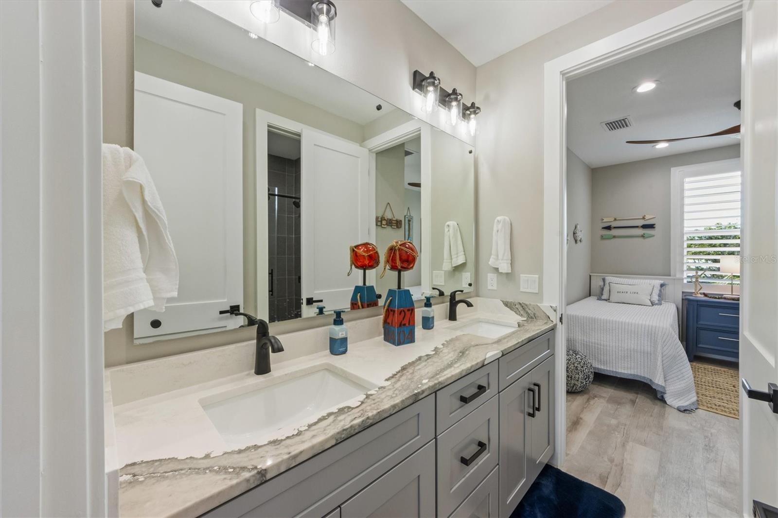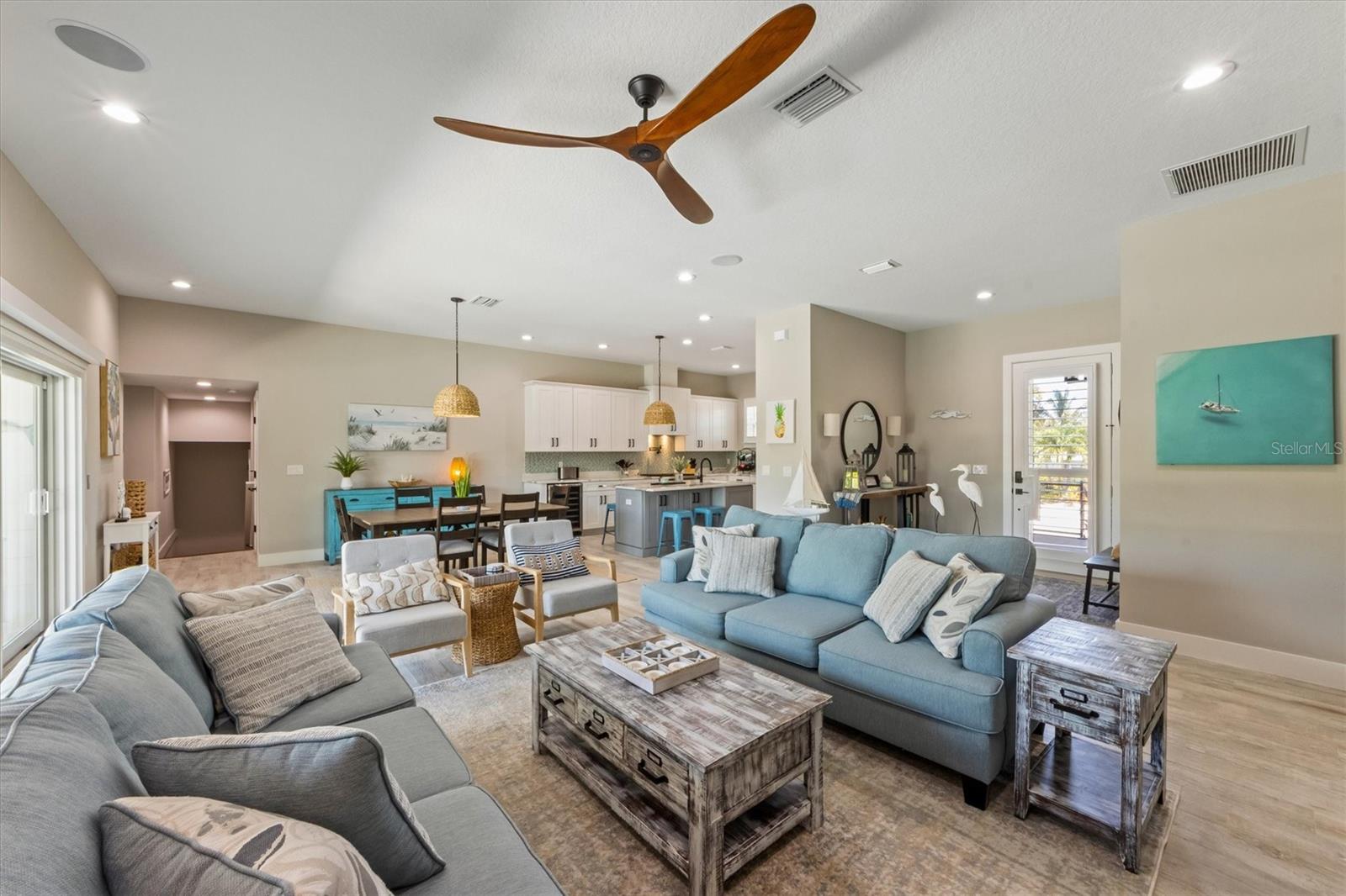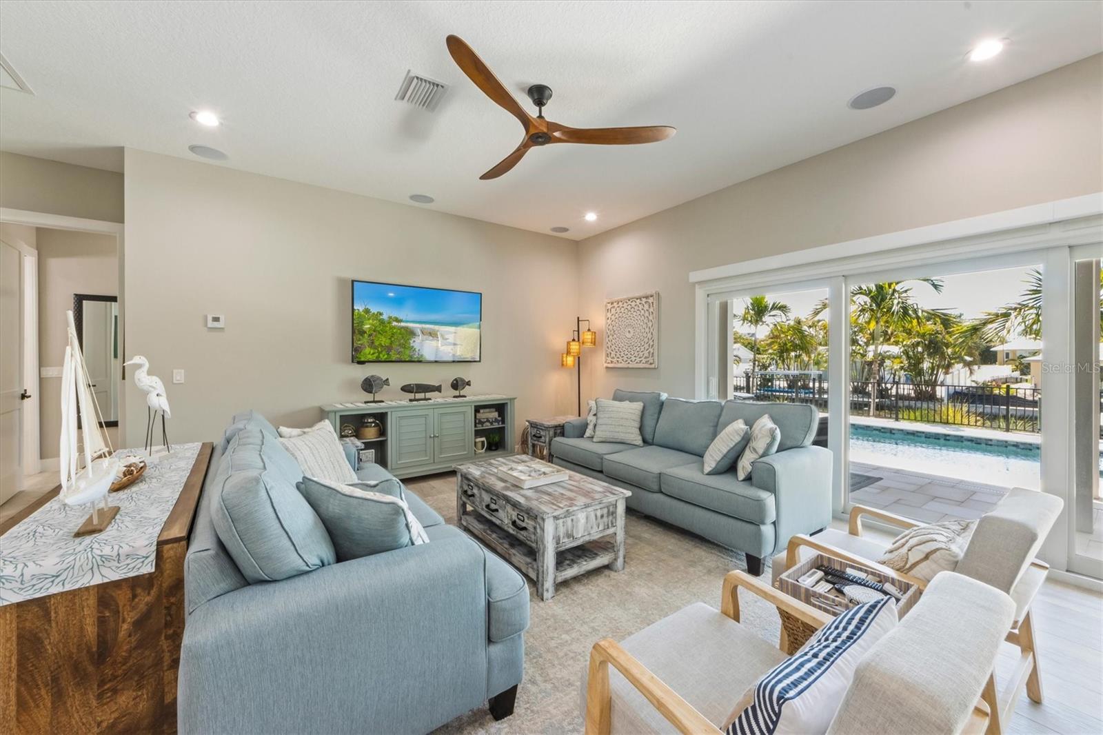 This new construction is a dream come true for boaters and water lovers! A stunning Key West style WATERFRONT canal home spans over 2,263 Sq. Ft. and offers a total of 3754 sq. ft. of pure luxury. Offered turnkey furnished and totally moved in ready! Completed in 2023, this home features an abundance of natural light, soaring ceilings, custom 4 inch plantation shutters and electric blinds for the sliders, HURRICANE impact windows and doors, and metal roof. The kitchen is a chef's delight featuring top-of-the-line stainless steel appliances including wolf, quartz countertops, soft close cabinets, 2 sinks, open shelving, separate wine fridge, and a generously large entertaining island. The living and dining areas seamlessly lead out to the outdoor covered patio, perfect for indoor/outdoor entertaining. The split floor plan offers maximum privacy, with the master en-suite featuring his and her closets, a separate soak-in tub and a huge walk-in rain shower, and double sinks. All bathrooms have unique and stylish modern tile finishes. There are three additional bedrooms, one with its own private en-suite bathroom and the other two sharing a jack and Jill bathroom. Enjoy the oversized epoxy 3-car garage for all your cars, golf carts and beach toys! In addition, the beautifully paved driveway offers ample parking for all your guests. Step outside to your backyard oasis where you'll find a heated salt pool controlled by wifi, spa and sun shelf, surround sound, an outdoor shower, and a huge composite dock for fishing and a 10,000 lb. boat lift. With direct access to Anna Maria Sound and the Gulf of Mexico and no bridges you can hop on your boat and be on the water in no time. The tropical landscaping is breathtaking with lighting and easy to maintain with shell and low maintenance plants. Located in the heart of Holmes Beach, you are close to all the boutiques and restaurants and only five minutes from the gorgeous Anna Maria beaches, this home truly offers the best of Anna Maria island living. Come and make this your very own waterfront paradise and experience all that Anna Maria Island has to offer! This stunning home is an absolute must-see.
