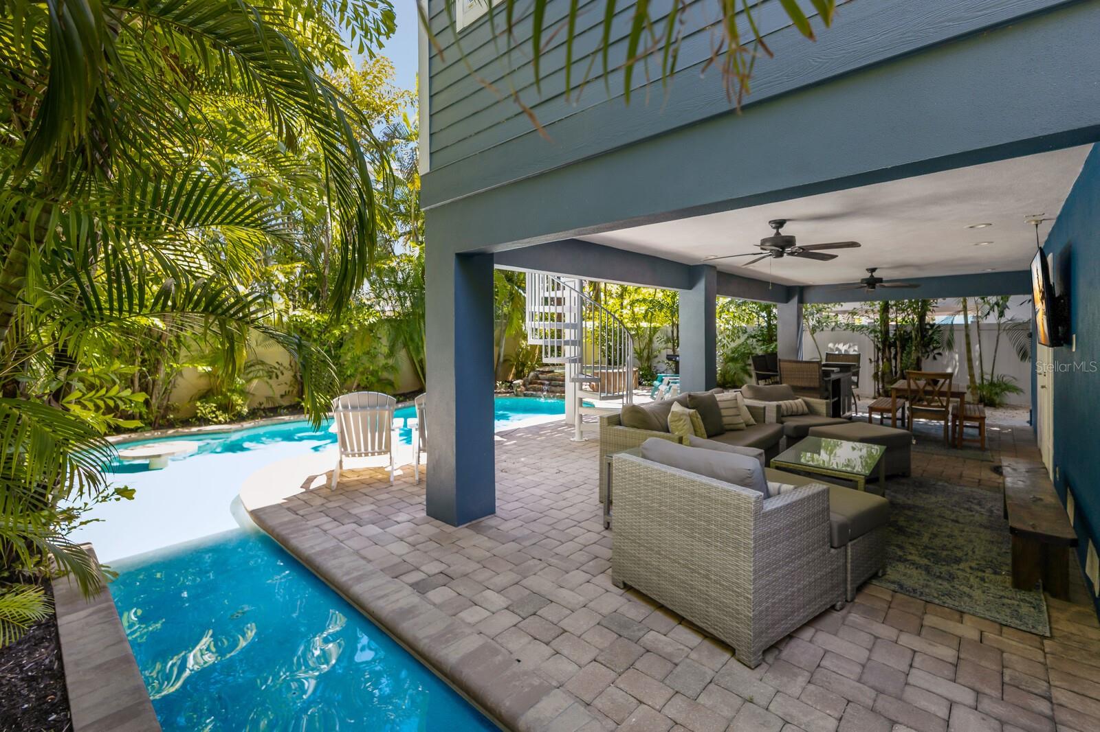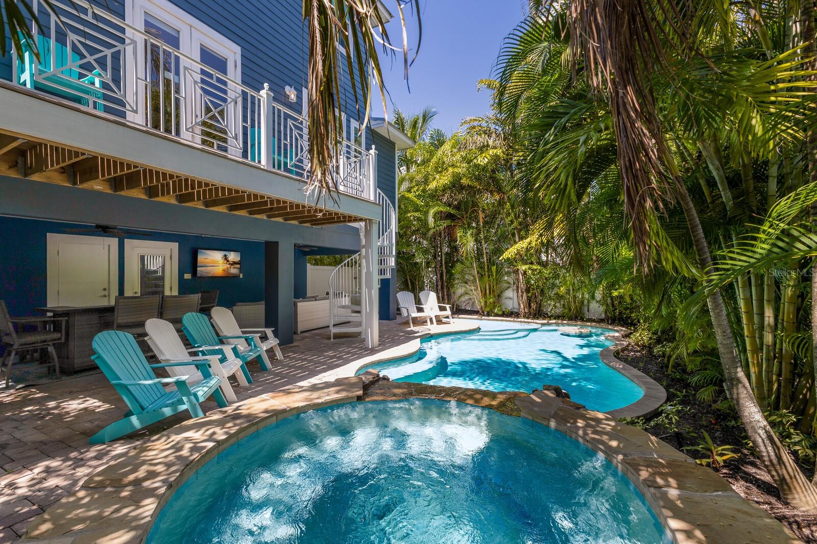 Welcome to Summer Retreat, an exceptional 6-bedroom, 6.5-bath coastal home offering the ultimate island lifestyle, less than a 5 minute walk to the beach. The beautifully updated home is being sold turnkey furnished features Travertine marble floors, custom fixtures, and a gourmet kitchen with high-end stainless-steel appliances and custom cabinetry. The open concept living space is ideal for cozy gatherings, with a dining table for 10 and additional seating at the bar. A deck off the kitchen leads directly to the pool via a spiral staircase, making indoor-outdoor living seamless. The main floor also includes two bedrooms with ensuite bathrooms, as well as a half bath. On the second floor, you'll find the luxurious master suite with its own private balcony and spa-like bathroom, along with three more bedrooms, all with their own ensuite baths. The home also features multiple balconies, decks, and porches. The roof top deck offers breathtaking Gulf and Bay views, perfect for sunset cocktails or morning coffee. The outdoor oasis features a private heated saltwater pool with a spa, cocktail table, seating, and splash shelf, along with a lushly landscaped entertainment area that includes a game room, wet bar, lounge seating, outdoor grill, and dining area. For added fun, there is a game room that is equipped with ping pong, foosball, and more. Whether you’re looking for a year-round residence, a vacation home, or an investment property, Summer Retreat offers it all. This home has the ability to sleep 12 guests which makes for great potential investment property. Don’t miss the chance to own this luxurious beachside retreat. Schedule your private tour today!