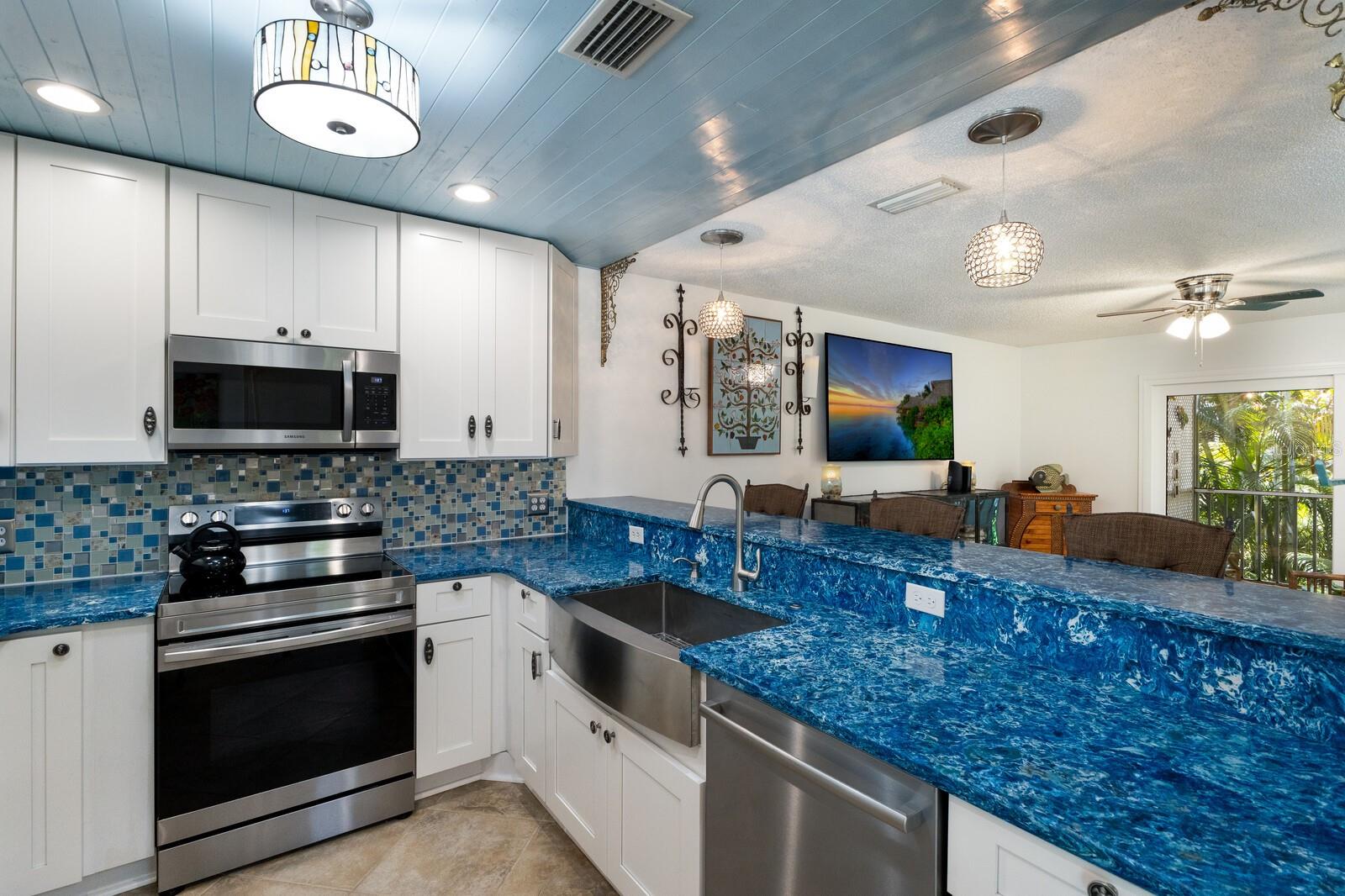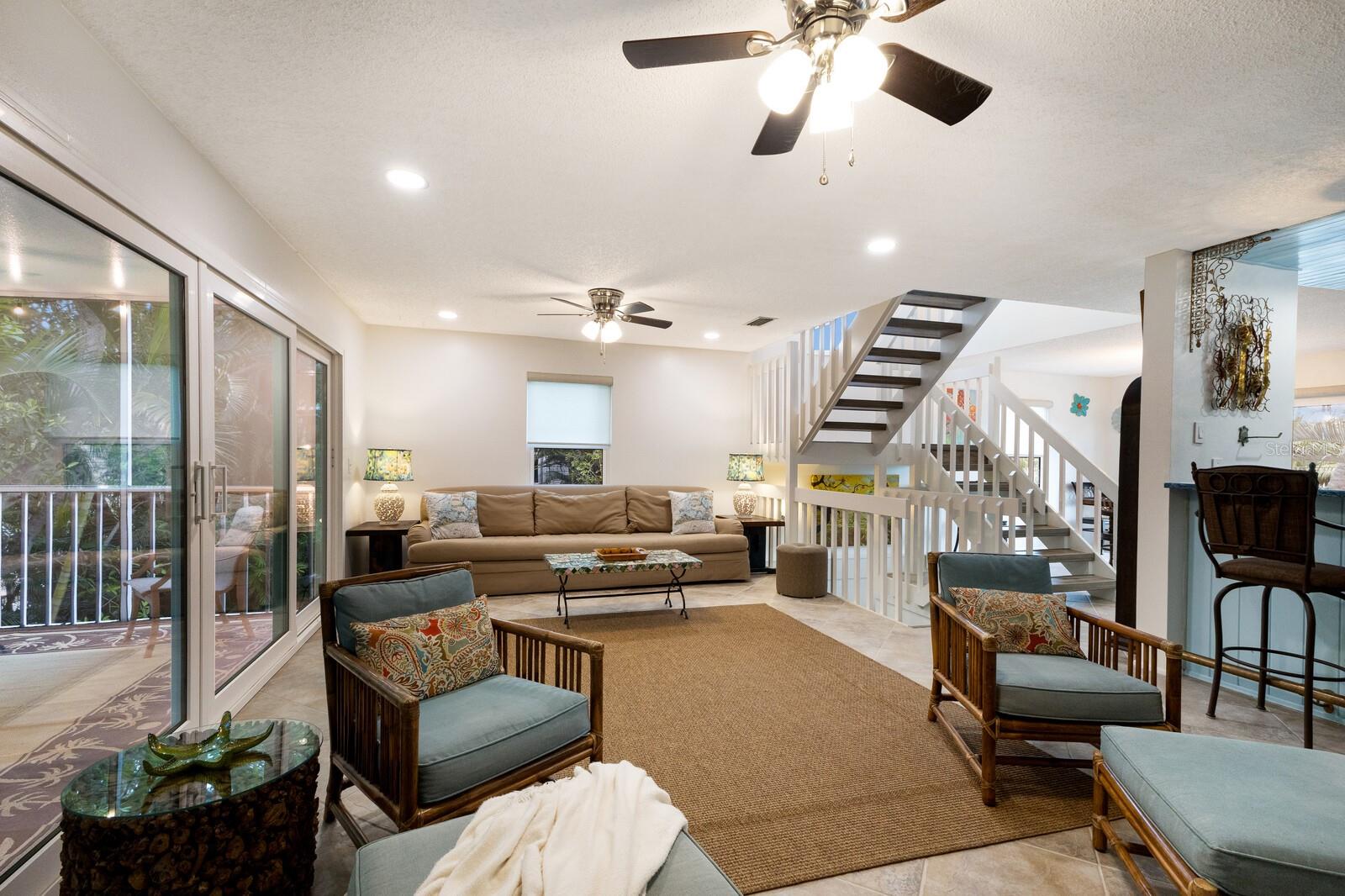 Tastefully Updated and move-in Ready! Welcome to North Beach Village, a 3-bedroom, 2.5-bath townhome with a 2-car garage in the sought-after Holmes Beach community. This coastal retreat features a newer roof, new impact windows, an impact garage door, and rated front door for added peace of mind. The main floor boasts an open-concept layout with a modern kitchen featuring Skye Cambria Quartz countertops, 42" Shaker cabinets, stainless steel appliances, and a breakfast bar. The bright living area opens to a fully screened patio, ideal for enjoying the outdoors. Upstairs, the primary suite includes custom closets, built-in cabinets, an en-suite bath with granite countertops, and a private patio. The two additional bedrooms also feature custom closets and built-ins for superior organization throughout the home. The garage includes epoxy flooring, ample storage, and a bonus flex space with AC and private patio access. North Beach Village offers a heated community pool and is just a short stroll to the pristine beaches of Anna Maria Island. With nearby dining, shopping, and recreation, this home is perfect as a vacation getaway, full-time residence, or investment opportunity.