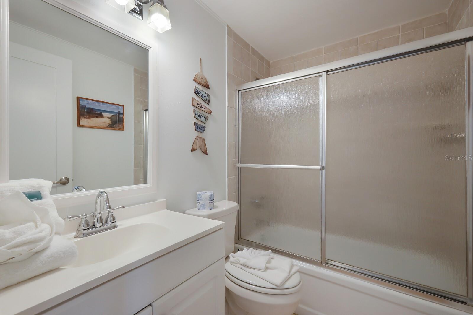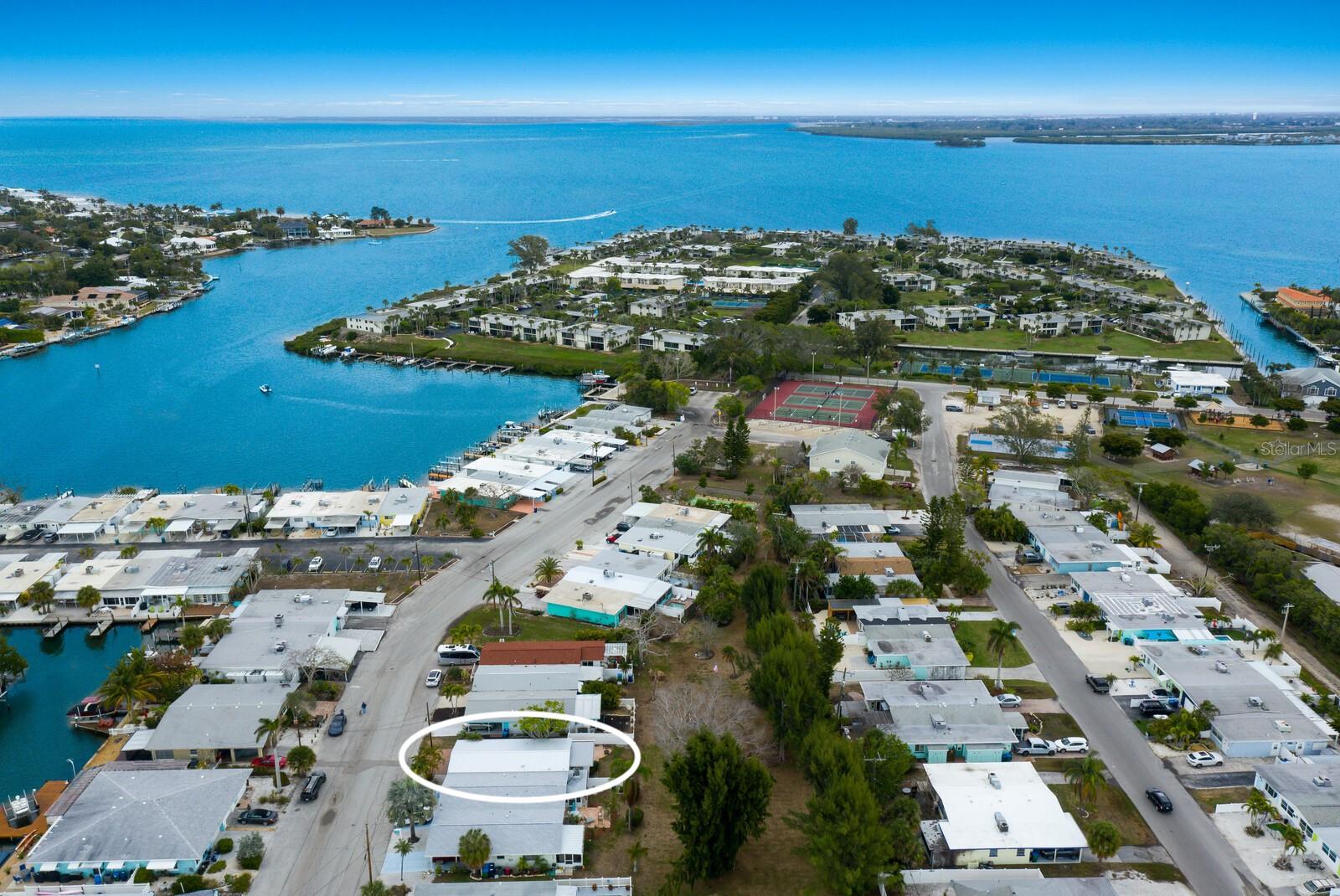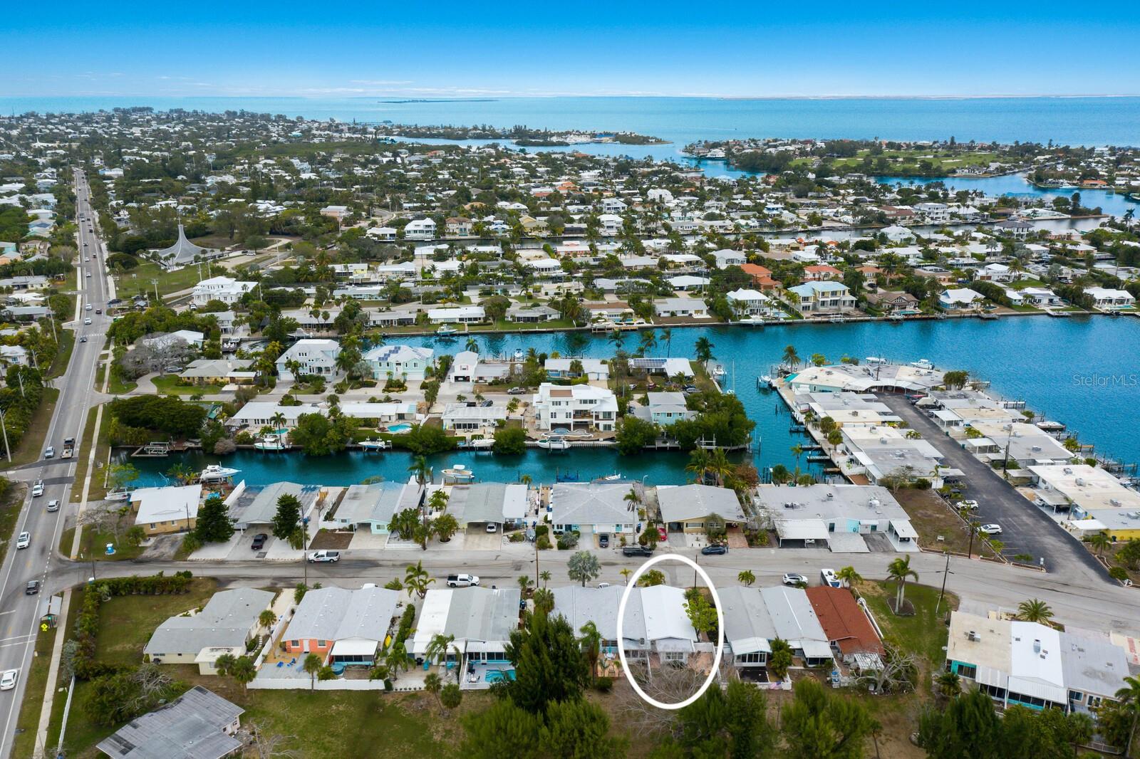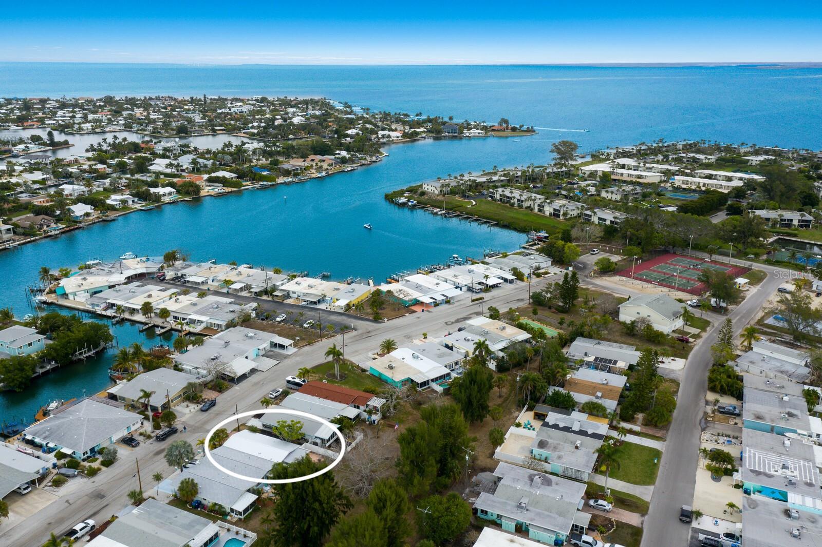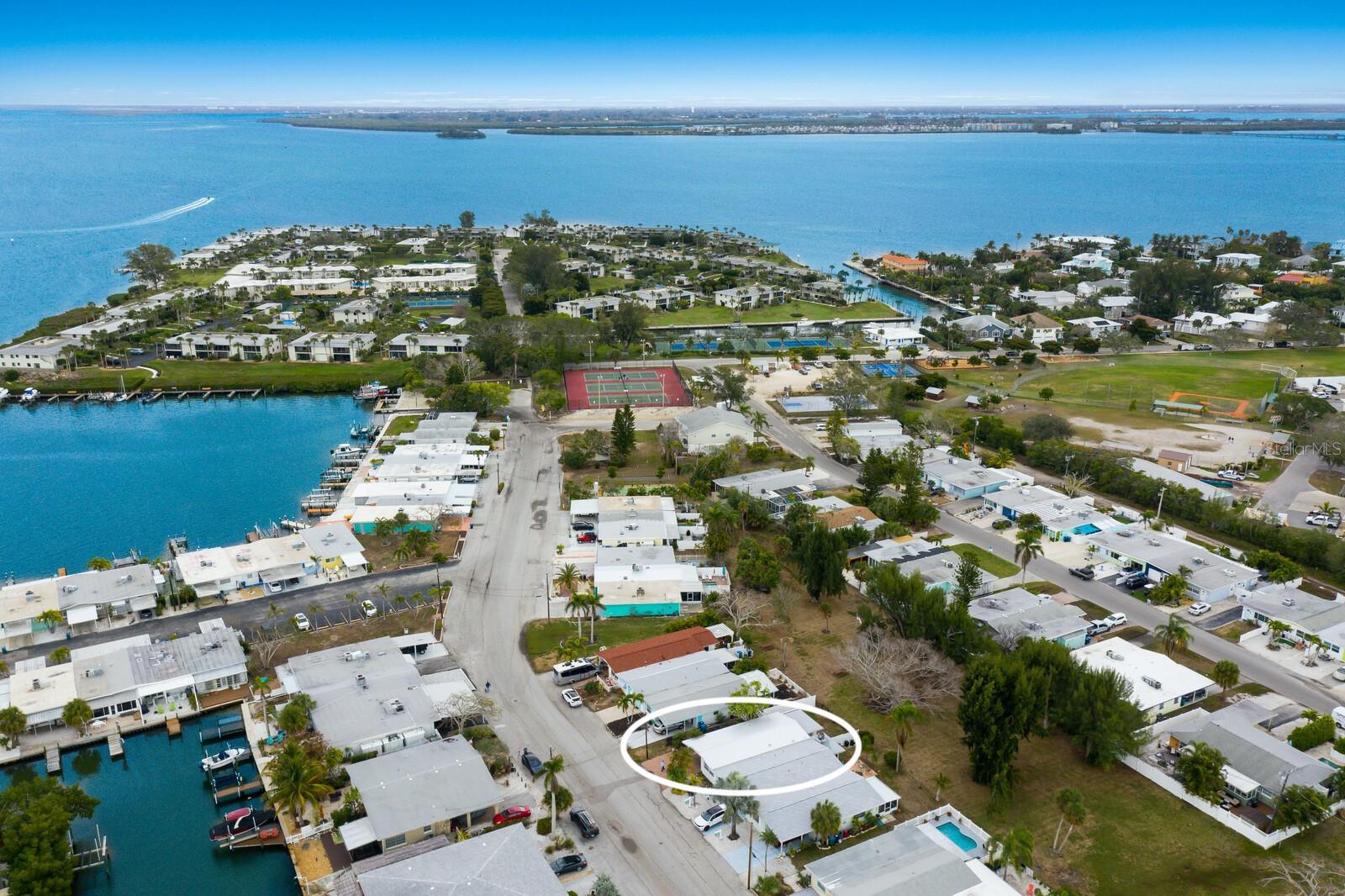 Welcome to your slice of Island Life! Watercolor Palms is an active vacation rental villa in Seaside Gardens with 2 beds / 2 baths, a spacious open floor plan, turn-key furnished with coastal Island flair, interior laundry room, with an enclosed Florida room that has a pullout couch so it sleeps 6. Recent updates include a new metal roof in 2023, new back yard fence for outdoor privacy, updated interior kitchen counters, paint, trim, and furnishings. The front has a paver lined driveway with a 1 car carport, additional parking, and a storage closet for beach accessories. This community is excellent for year round living or a tranquil escape for "snowbirds", and also allows for short term rentals with future bookings already in place for new owners. No stairs, easy access, pets allowed. Just pack a bag to start enjoying Island Life, and generate income when you are not using your villa! Close to the boat ramp, tennis / pickleball courts, basketball court, dog park, and only a short walk to the beautiful sugar sand beaches of Anna Maria Island.