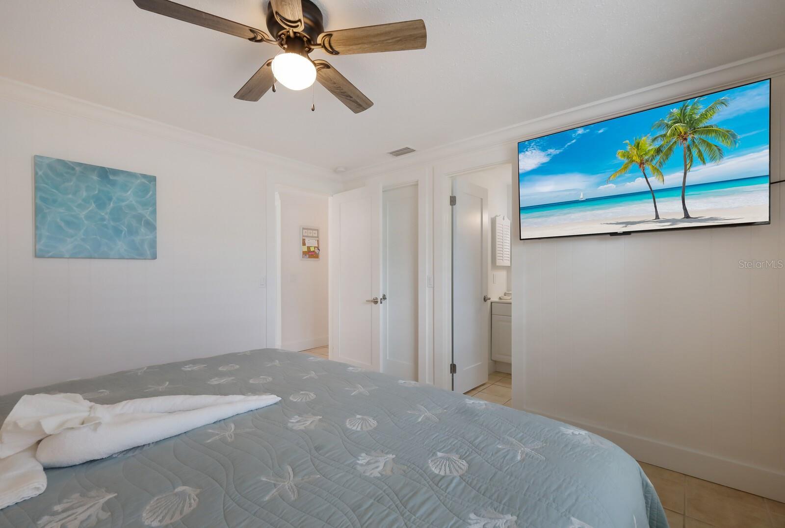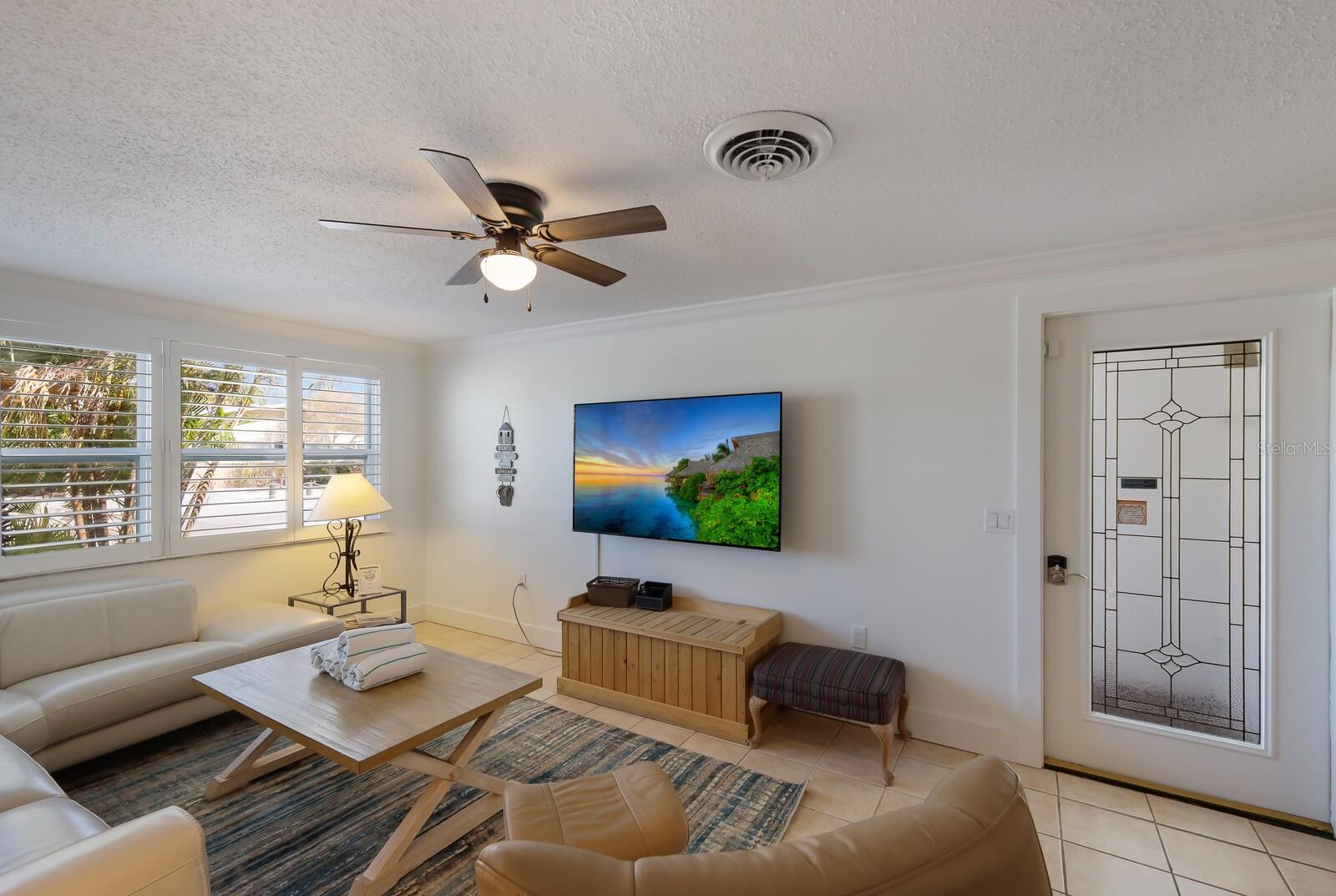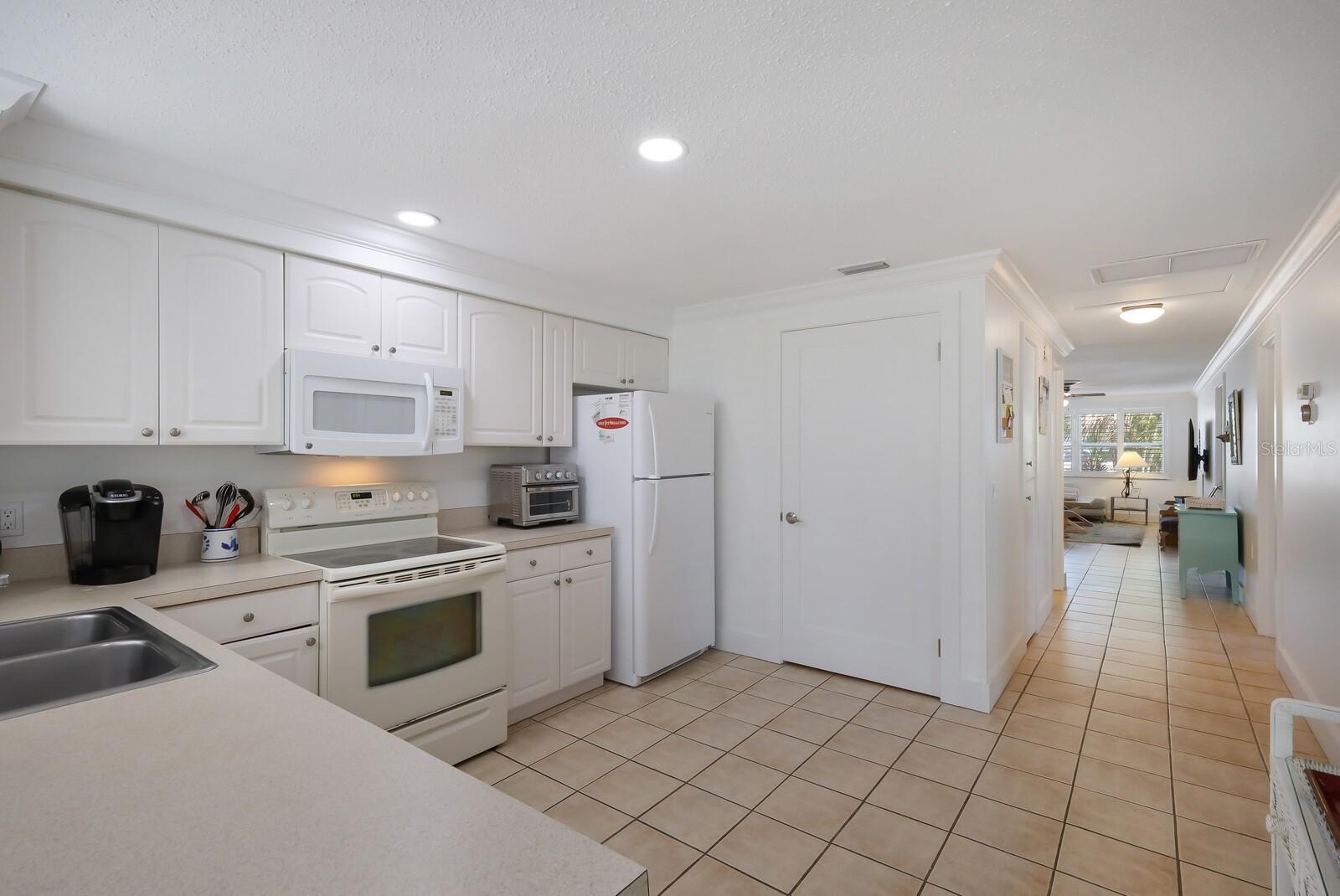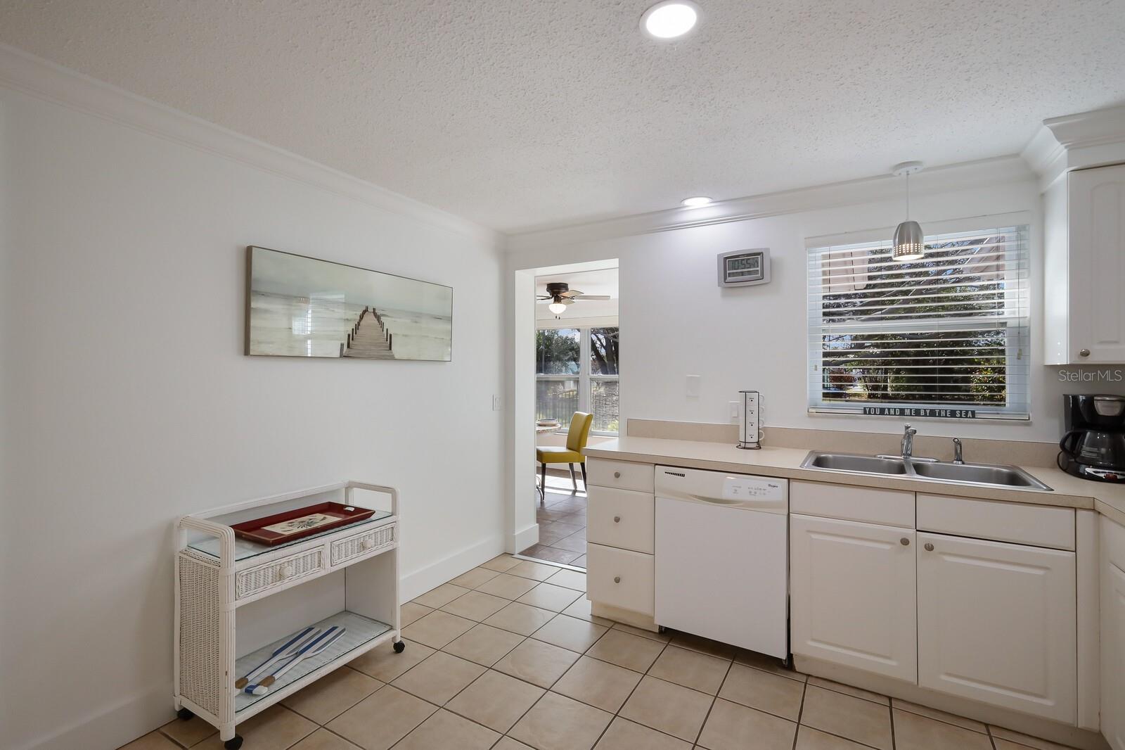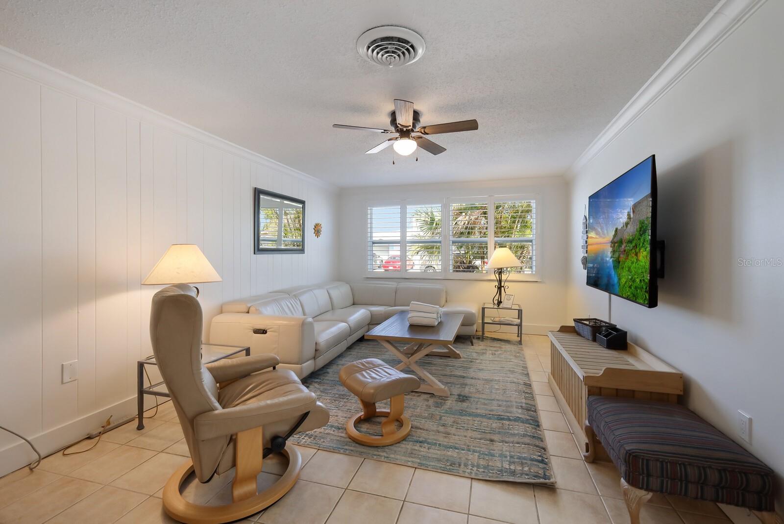 Welcome to your slice of Island Life! Watercolor Palms is an active vacation rental villa in Seaside Gardens with 2 beds / 2 baths, a spacious open floor plan, turn-key furnished with coastal Island flair, interior laundry room, with an enclosed Florida room that has a pullout couch so it sleeps 6. Recent updates include a new metal roof in 2023, new back yard fence for outdoor privacy, updated interior kitchen counters, paint, trim, and furnishings. The front has a paver lined driveway with a 1 car carport, additional parking, and a storage closet for beach accessories. This community is excellent for year round living or a tranquil escape for "snowbirds", and also allows for short term rentals with future bookings already in place for new owners. No stairs, easy access, pets allowed. Just pack a bag to start enjoying Island Life, and generate income when you are not using your villa! Close to the boat ramp, tennis / pickleball courts, basketball court, dog park, and only a short walk to the beautiful sugar sand beaches of Anna Maria Island.