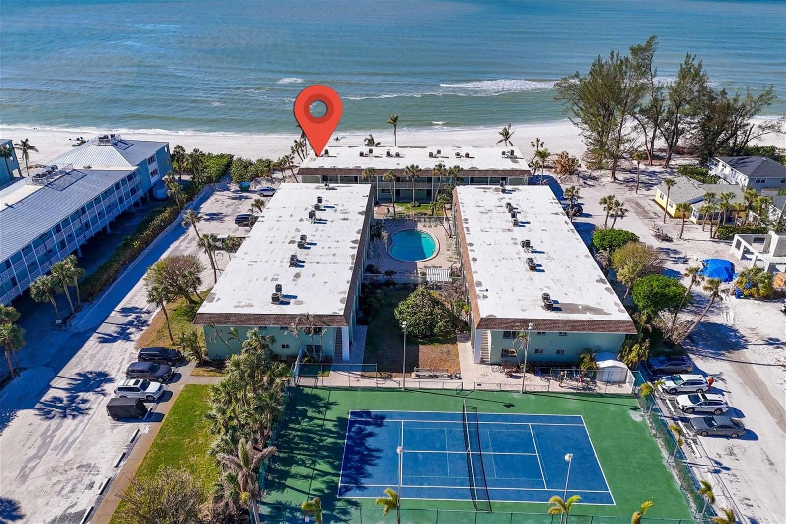 Gulf front condo at the Nautilus! Rarely available SW corner unit offering you unparalleled Gulf views and breathtaking sunsets. Pet friendly - owners are allowed to have dogs or cats. On site amenities include a pickle ball/tennis court and a heated pool for use throughout the year. The condo did receive damage from Hurricane Helene and has been professionally remediated. The unit is being offered AS-IS with plans for drywall and the AC to be reinstalled in the coming weeks. Electric has been replaced. Here is your opportunity to transform a blank slate into your dream coastal getaway or a lucrative investment property. One of the few condo complexes in Holmes Beach where weekly rentals are permitted. Schedule your private showing today!