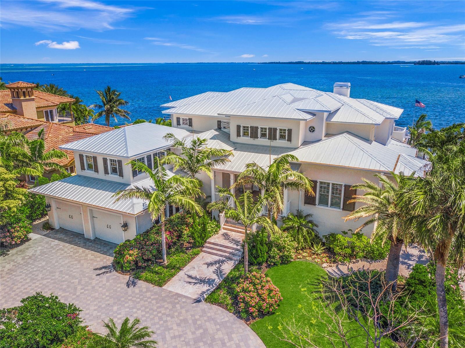 New price - Luxury bayfront living meets the quintessential Anna Maria Island lifestyle. This fabulous, custom-built coastal residence is a testament to exquisite design and unparalleled comfort, offering a sanctuary of relaxation and sophistication. Crafted with inspiration from gracious British West Indies estates, this island jewel boasts panoramic open water vistas of Tampa Bay that greet you from the moment you step through the front door. Every corner of this home is thoughtfully designed to maximize stunning water views, with nearly every room offering a glimpse of the majestic bay. Step into the spacious and inviting open floor plan, adorned with fine finishes, richly textured wide plank wood floors and extensive moldings throughout the home. The great room features a gas fireplace with built-in cabinetry, setting the stage for cozy gatherings and tranquil evenings by the bay. Entertain with ease in the bayfront dining room, seamlessly connected to the expansive island kitchen adorned with Wolf and Sub-Zero appliances, abundant Shaker cabinets and stone counters. Indulge in the luxury of the first-floor primary suite, where spectacular wide-bay views await to mesmerize you each morning. A bayfront sunroom leads to a guest bedroom and bath, effortlessly creating an additional first-floor guest suite with a private entrance. A second guest suite, bonus room, laundry and half bath complete the main level. An upstairs office, three bedrooms, baths, and bonus rooms lead to an expansive covered bayfront veranda, offering the ideal vantage point for taking in breathtaking views. Outside, experience resort-like living in your waterfront yard, complete with a sparkling pool, rejuvenating spa, and expansive covered outdoor spaces ideal for enjoying shade and balmy bay breezes. Delight in the spectacle of vibrant sunrises each morning while dolphins frolic in the bay. The bayside outdoor bar and fire pit beckon for evenings of colorful, reflective sunsets, inviting relaxation and entertainment. For the avid boater, this property is a dream come true, with no bridges to the bay or Gulf of Mexico. Boasting a new dock, 13,000-pound boat lift and jet ski lift, you'll have effortless access to the azure waters surrounding Anna Maria Island. Andersen 400 series impact-glass windows and doors and an air-conditioned garage. There was no storm damage to the home. In the desired island oasis of Key Royale, this residence is part of a premier golf and boating community with beautiful beaches just five minutes away. Embrace the laid-back island lifestyle, where every day offers opportunities for boating, fishing, kayaking, biking, golfing, dining, shopping, and experiencing the vibrant culture of Anna Maria Island through its festivals and art shows. Escape to 641 Key Royale Drive, where luxury, comfort and the Anna Maria Island lifestyle converge in harmony.