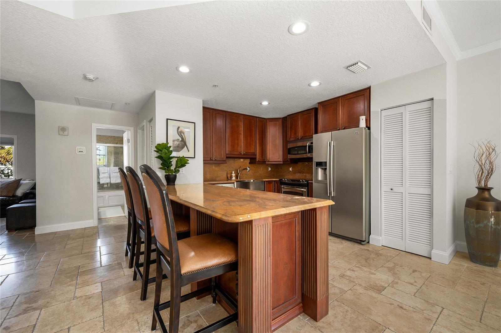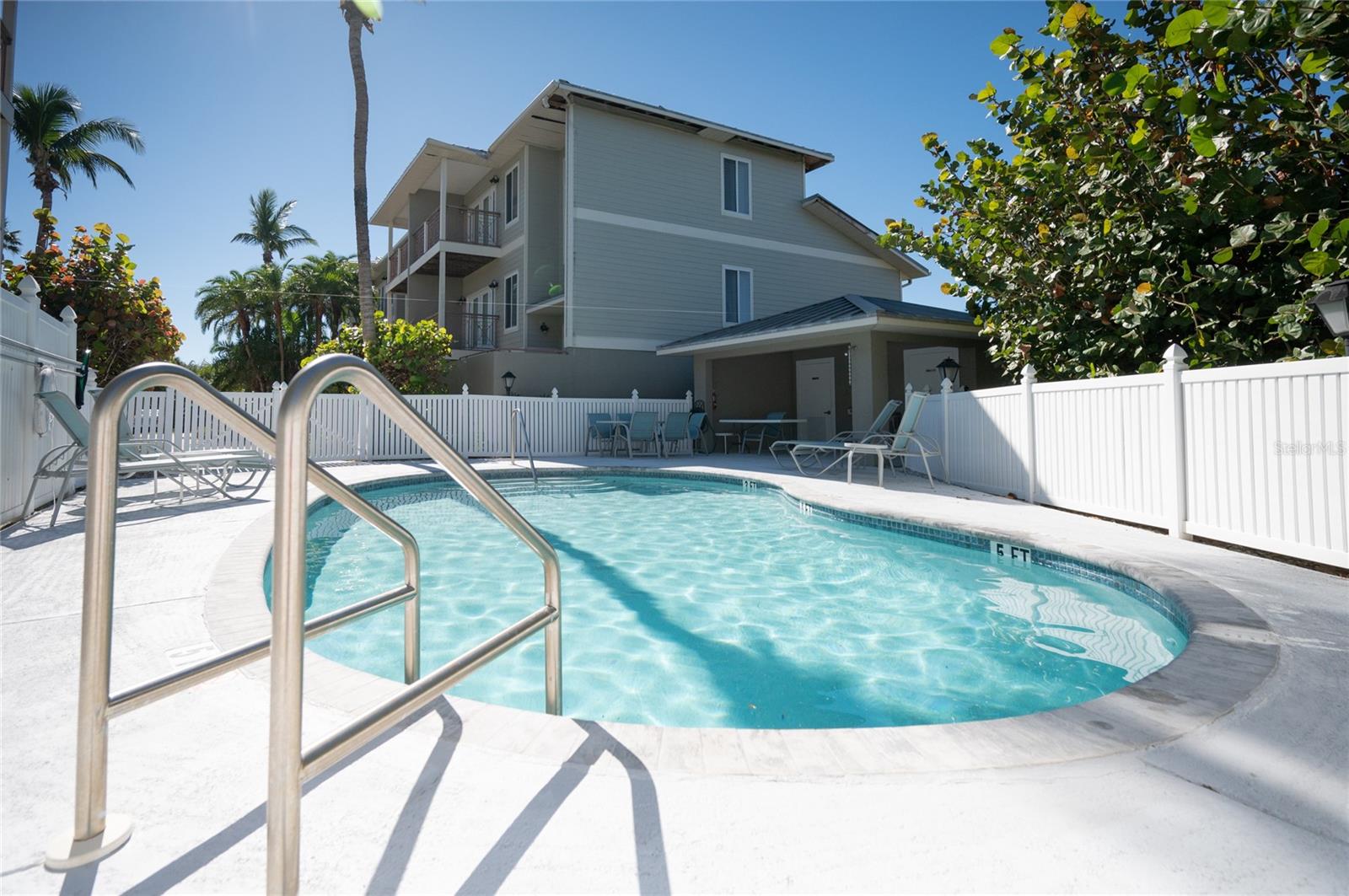 $50,000 price drop! Rarely available, well appointed modern beach house, in a small close knit community. The only unit with an elevator for easy access to all levels. The price reflects the owners desire to sell the property quickly. Awesome location in the heart of Holmes Beach. Mere steps to the public beach, Skinny's beach restaurant, Publix, Shopping, and many other prime amenities, This 2 bedroom, 2 bath townhouse, has an extra family room, that could easily convert to a third bedroom. The ground floor has plenty of usable space for an office, movie room, or another bonus room. The second floor is the main living level with a living room, kitchen, family room, bathroom, laundry area, and tranquil balcony to enjoy your morning coffee. Enjoy the eat-in kitchen, with quality solid wood cabinets, stainless appliances, and upgraded granite countertops. The private large primary bedroom, has an ensuite bathroom with a walk in closet, and another peaceful balcony to enjoy a nightcap. There is plenty of room to spread out your family and guests over three floors. Enjoy the Florida sun as you lounge around the heated pool. The two car tandem garage would be great for towing your boat or parking your golf cart for even more island adventures. The building exterior is currently being painted. Just bring sunscreen and a suitcase, and you will be ready to go. This unit is Turnkey furnished for your convenience.