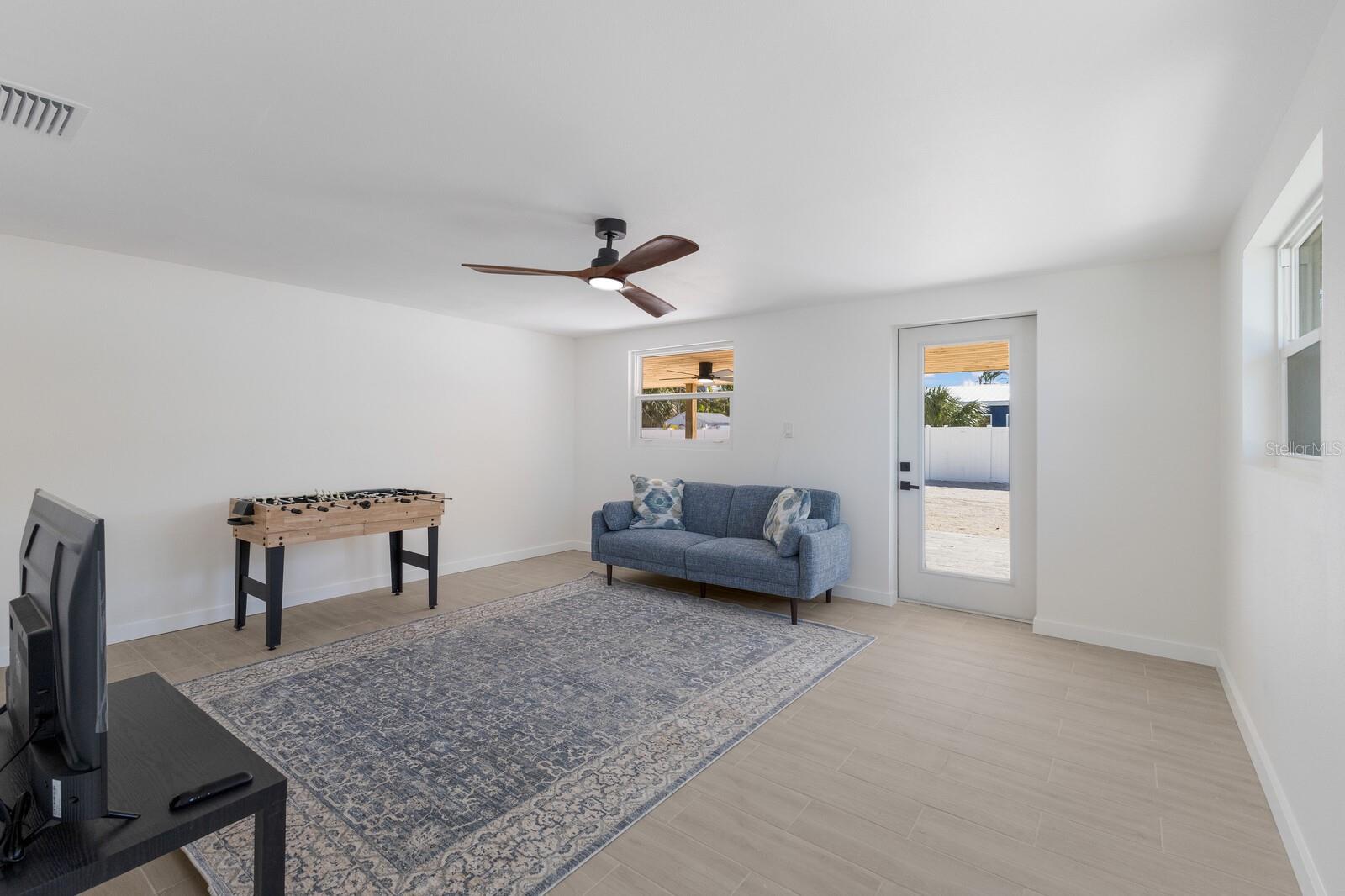 BONUS 3rd ROOM! Great opportunity to own this amazing elevated beach home in Holmes Beach. You may purchase one beach villa or the entire home for living in one side and having income in other side. This property has recently been separated into two land condos and also offered as 2 individual villas for sale or purchase both, see other listing for other side. Although this is a 2 bedroom and a 2 bathroom on each side (total 4/4) this home also offers 2 interior BONUS rooms under air conditioning for games and entertaining that lead out directly to a covered patio and very large back yard. The yard you will see has plenty of room for pools and an opportunity to create your own island oasis with landscape to your preference. If income is what you are looking for, then this home is ready to rent as a vacation rental or use one side for your family and rent the other side for added income. This home boasts an entirely new stunning remodel that includes , all brand new kitchens, vinyl flooring, new bathrooms, new metal roof, new air conditioning units, new appliances , new hurricane windows and doors, Hardie plank siding, new interior and exterior paint, and all new decking. The homes are tastefully decorated in a simple BOHO beach vibe, your guests are sure to love. Consider its very convenient location, this home is centrally positioned, just steps to the beach, and just a short stroll to the city center of Holmes Beach where you and your family or vacation guests can enjoy island shopping and dining. Lovely sidewalks near by line Holmes Boulevard and provide a great family friendly neighborhood for easy walking. Pool rendering is available and attached to listing. Book your showing today!