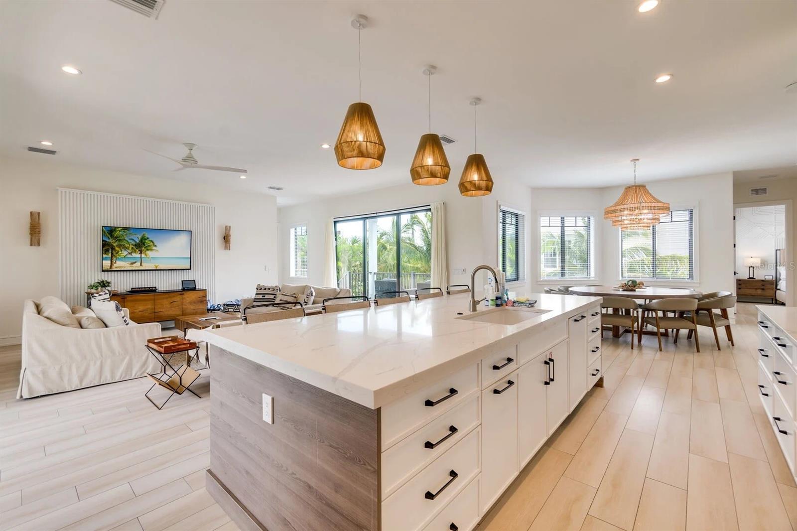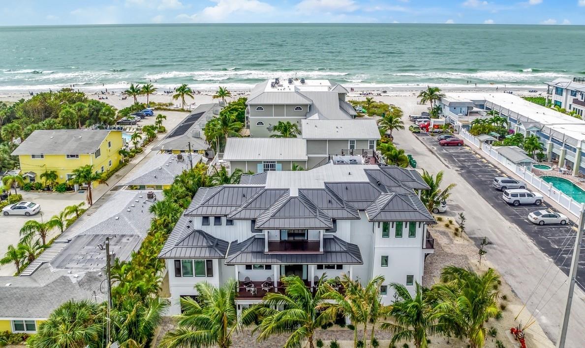 Paradise awaits at this stunning, coastal contemporary home, featuring 9-ensuite bedrooms and 2 half bathrooms. High end coastal finishes can be seen throughout including custom millwork and designer tilework. A large chef's kitchen features an oversized island and stainless steel appliances, perfect for entertaining a large group. The expansive living area is offset by an outdoor balcony and dining area for large gatherings. The third level of living offers a bonus game room for the young at heart, wet bar and balcony. A full service elevator offers easy access to all levels of living and to the outdoor areas. The home is being sold turn key furnished with everything you need for your beach vacation. The outdoor area is a resort style oasis with oversized pool and jetted spa, and swim up bar, all surrounded by topical landscaping. An expansive lanai offers plenty of space for entertaining as well. The rooftop deck offers panoramic views of the Gulf of Mexico and is perfect for sunset viewing. This is the perfect location, just a few steps to the beach and the island trolley has a stop adjacent to the property. This home is fully elevated and designed specifically for tropical weather. Located in an A1 zone there are no limits as to potential vacation rental income. This property would also make a great family retreat. Truly a one of a kind opportunity to own your piece of paradise! Call today for your personal tour of this magnificent beach retreat!