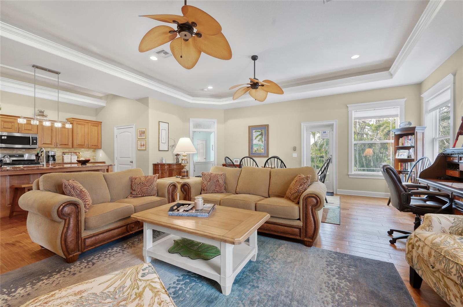 A stunning island getaway ideal for a second home, vacation rental, of long-term investment. The moment you enter this spacious 3-bedroom 2 bath you know this home is special. The stylish features include a high tray ceiling with indirect soft lighting, crown molding, window and door trim package, wood flooring, transom glass over interior doors. The master ensuite is spa-like a perfect retreat after a hard day at the beach. Outside step into your own private tropical oasis with a sparkling pool surrounded by lush, mature landscaping. This home is being sold turnkey (few personal items excluded) no need to waste time and money on costly repairs, you can start your adventure on day one. Notable items recently installed include new pool heater & pump, insta-water heater, and shingled roofing,